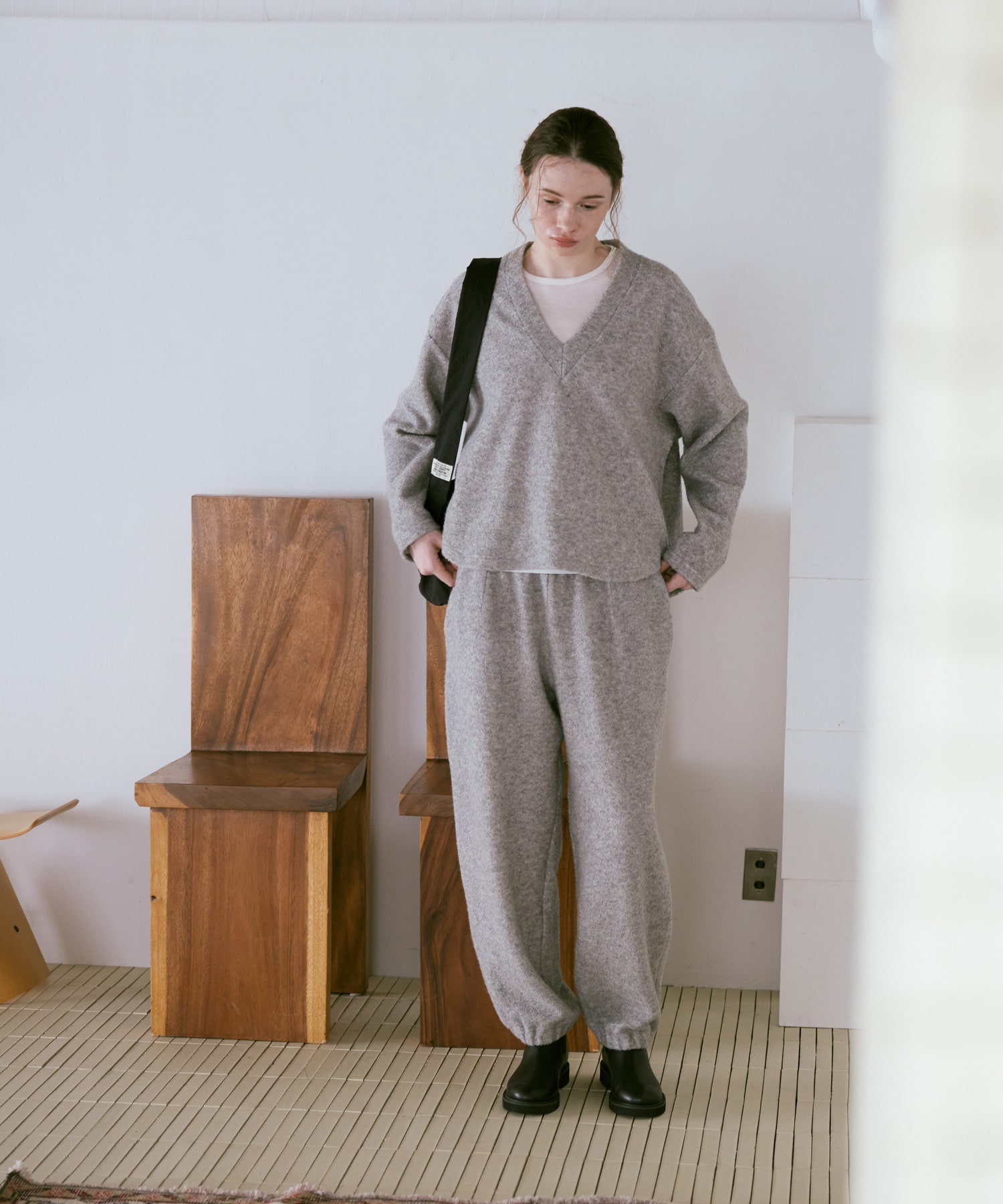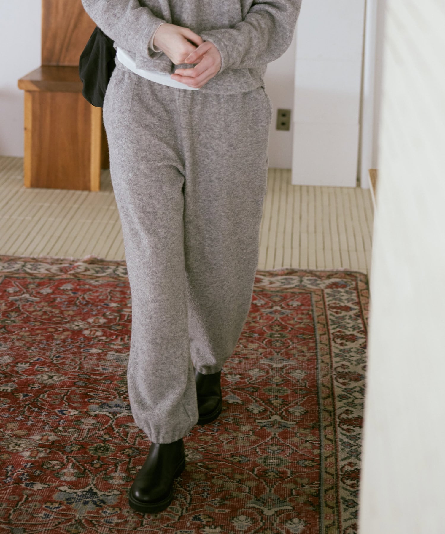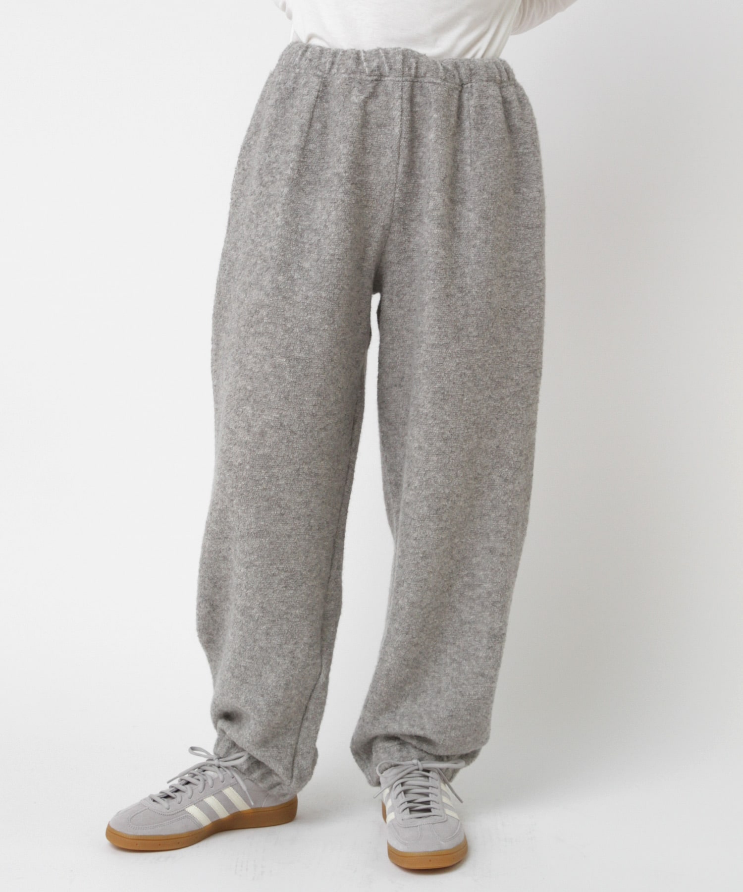 太めのシルエットに、ウエストはゴムとシャーリングで全体にゆるくカジュアルなムードをプラス。