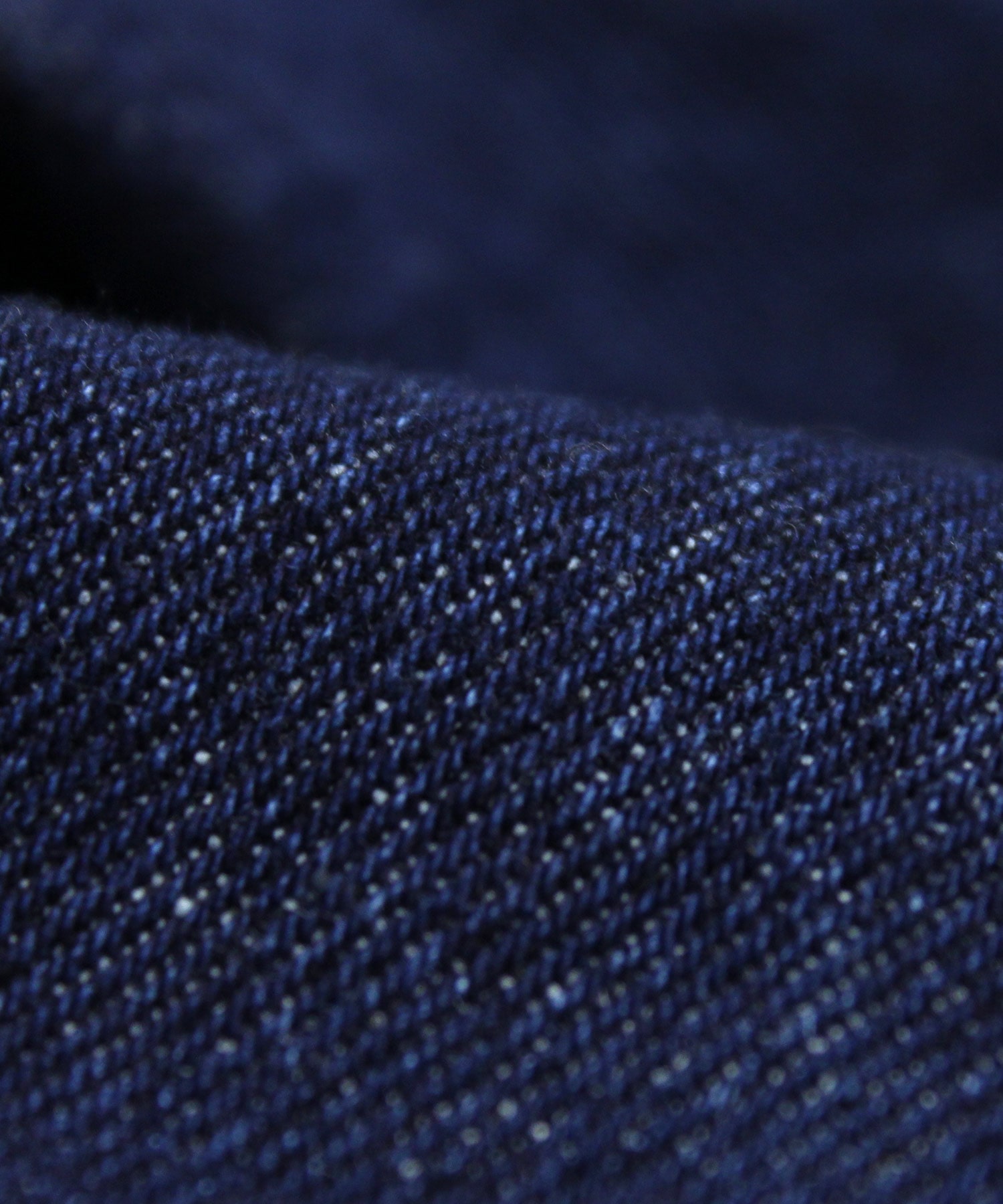10ozのマーブルデニムを使用し、強い縦落ちがなく、加工で生まれる独特のシボ感が特徴。