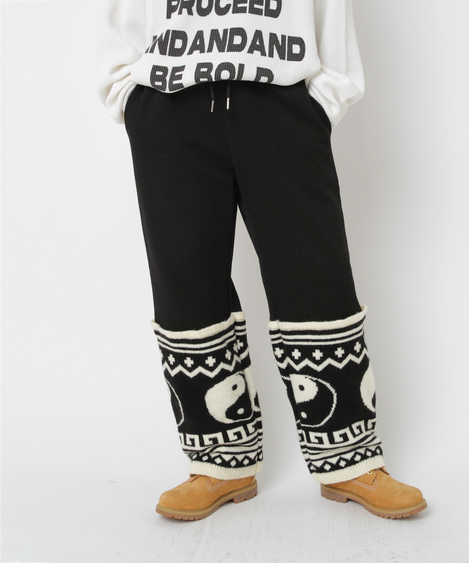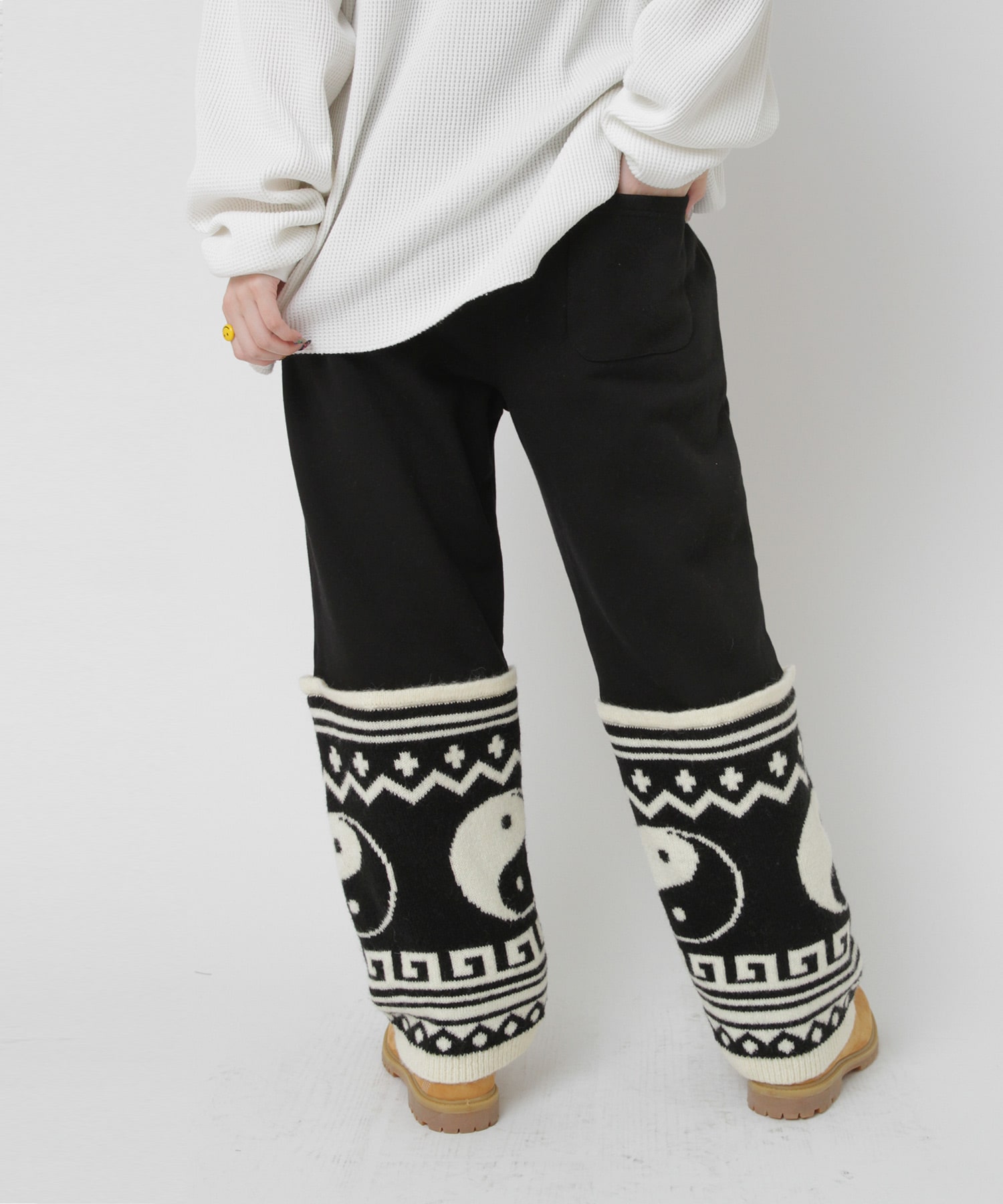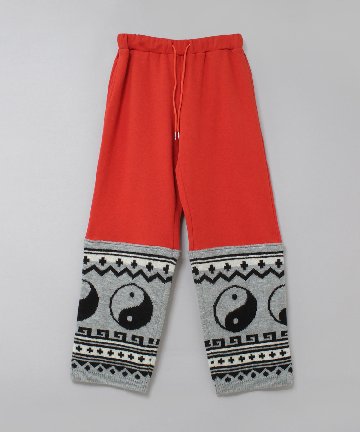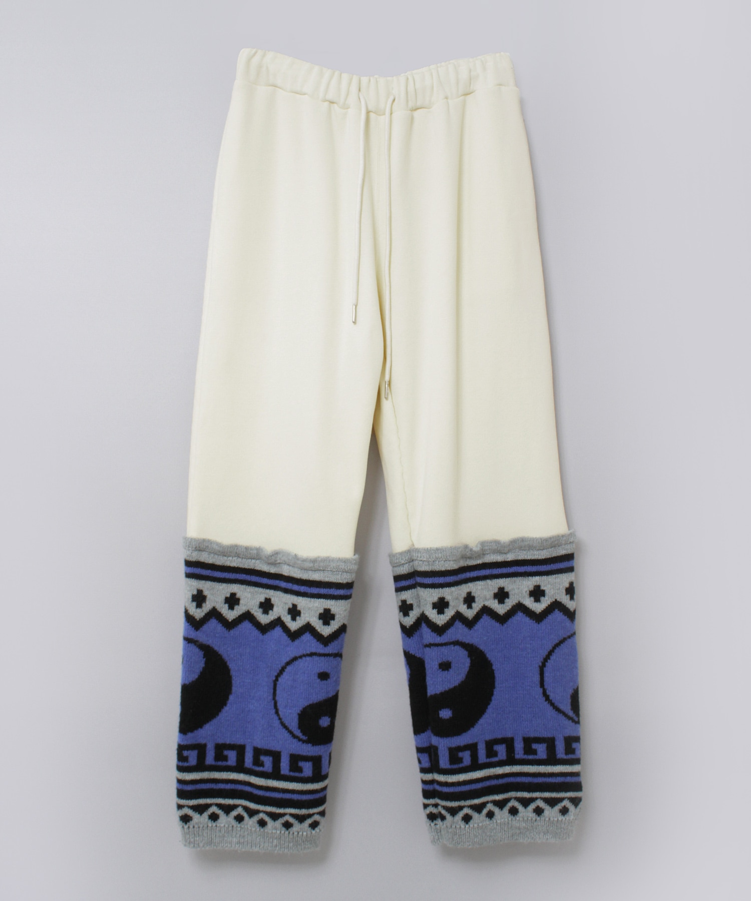 ニットパーツを付けたユニセックスな雰囲気のスウェットパンツ