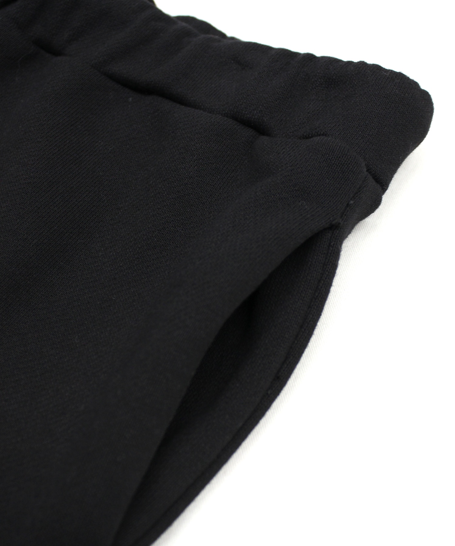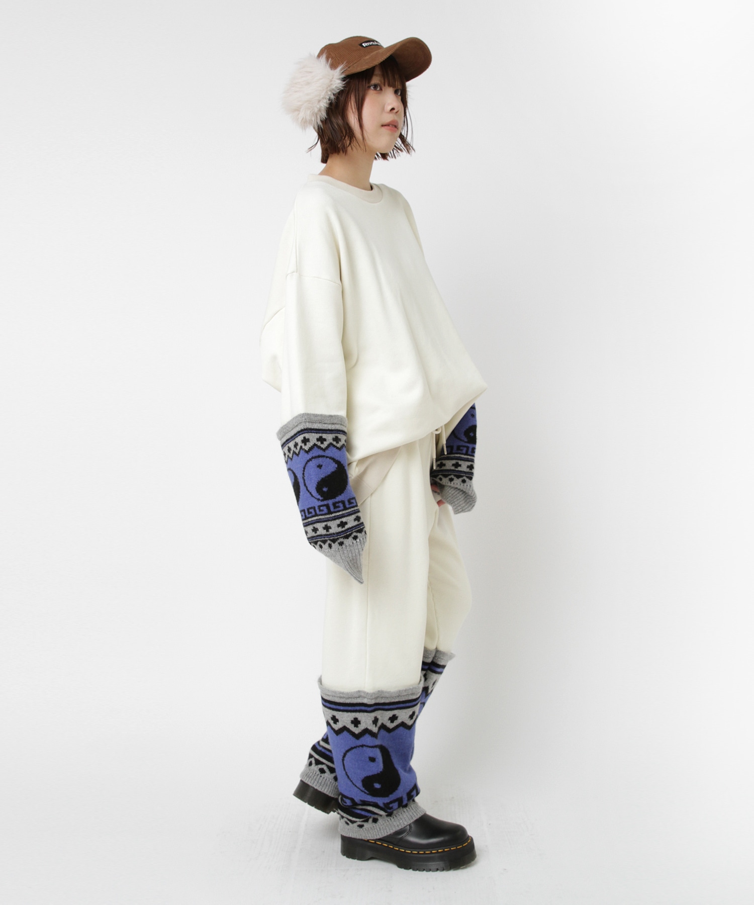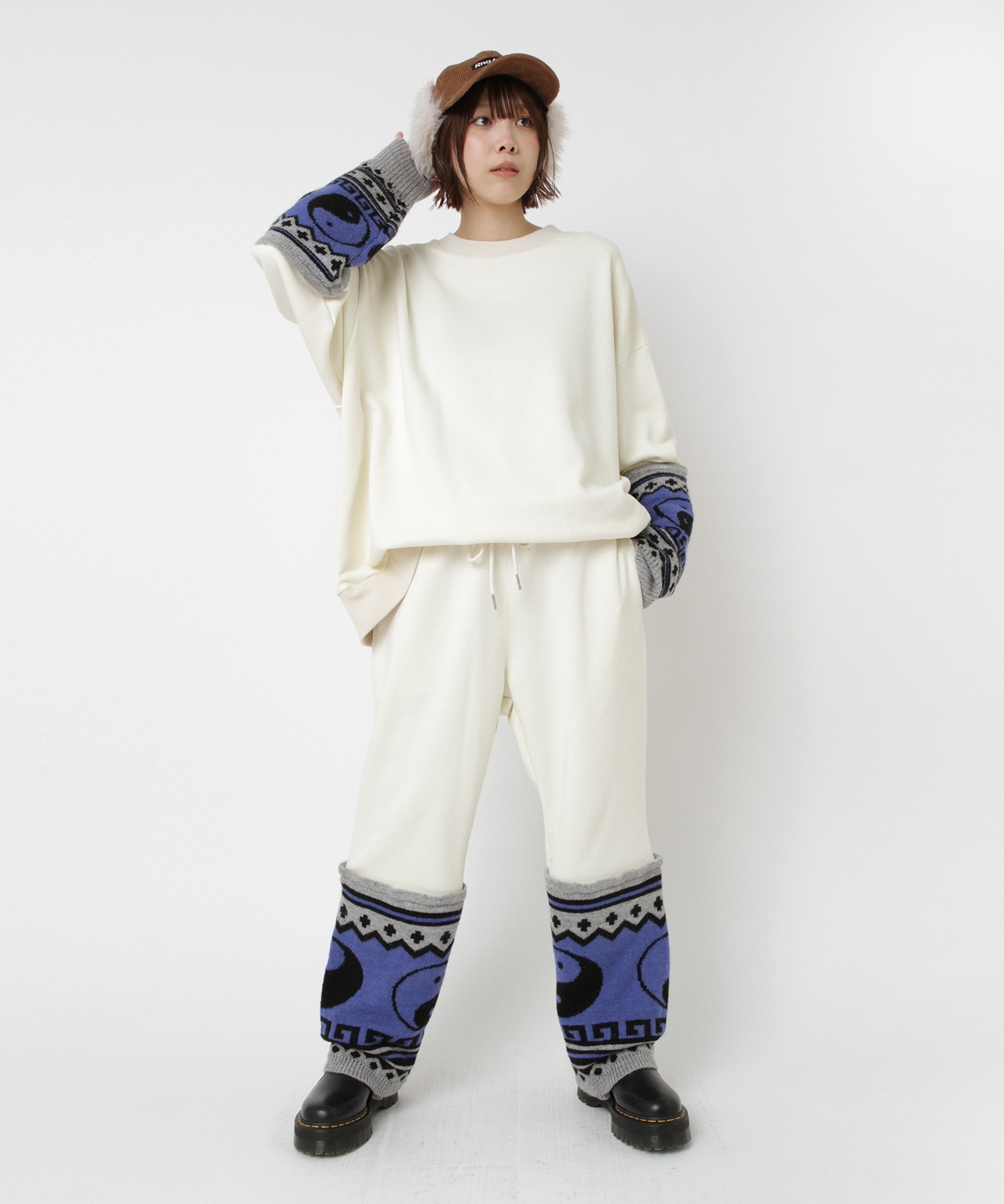ニットパーツを付けたユニセックスな雰囲気のスウェットパンツ