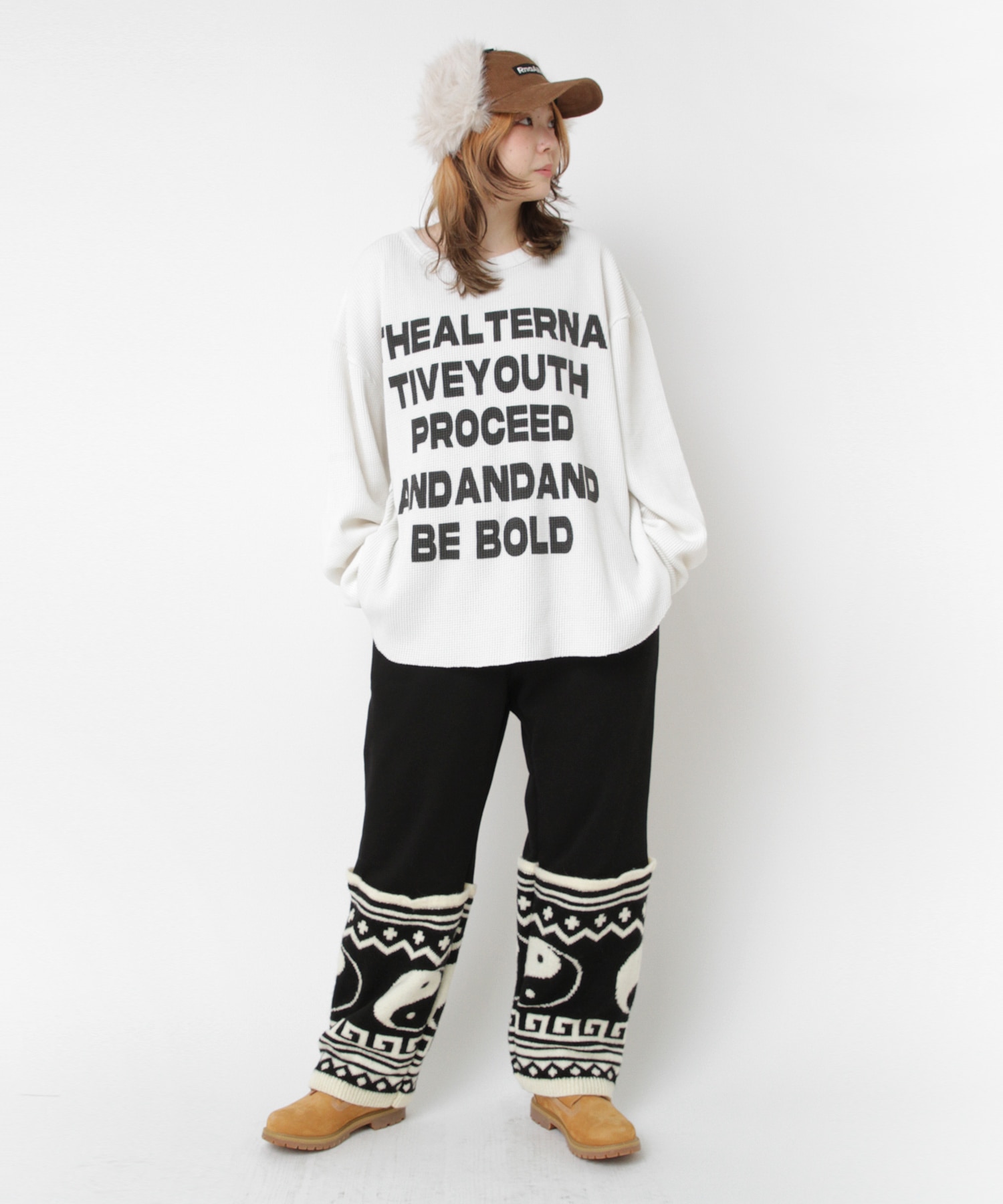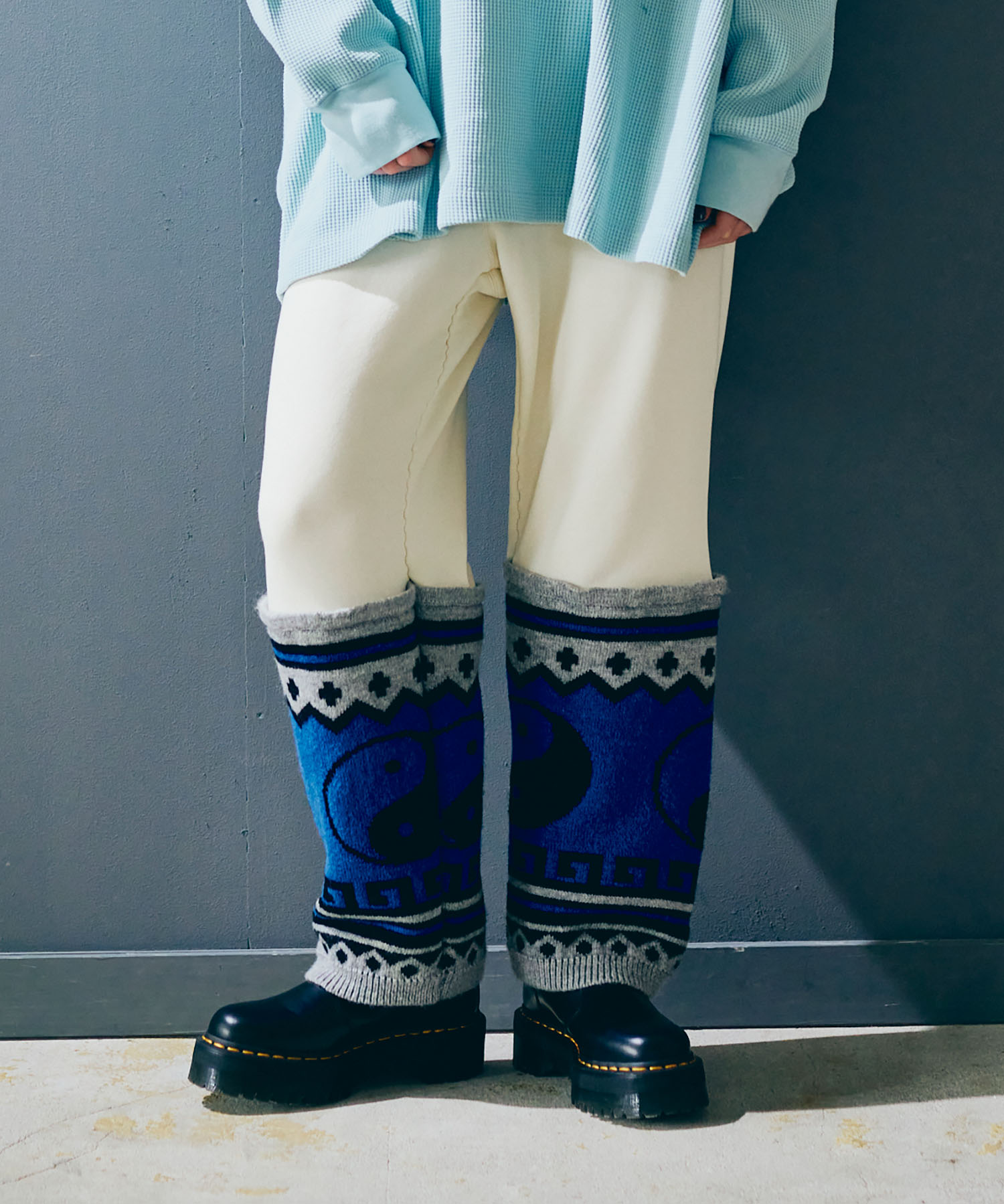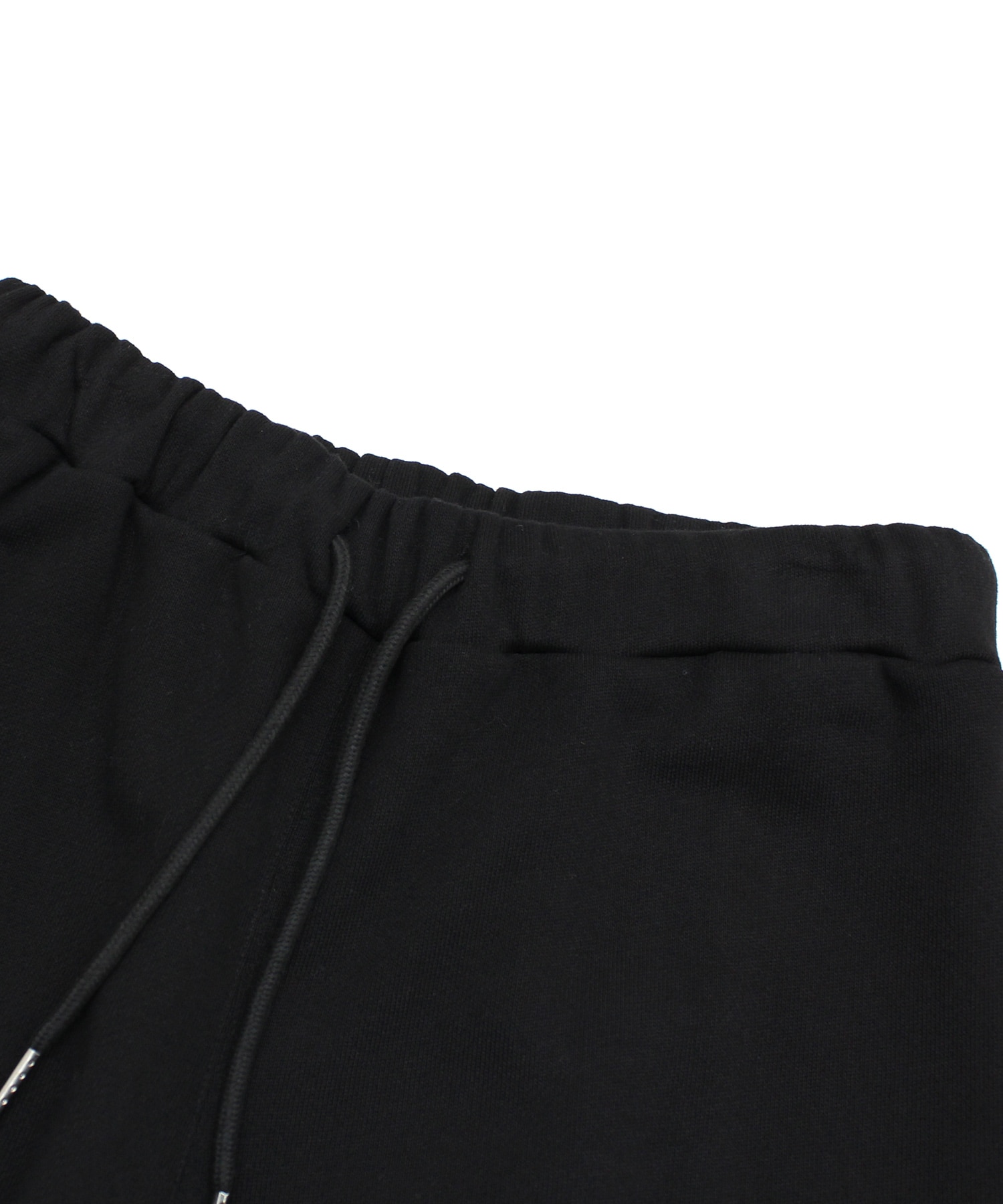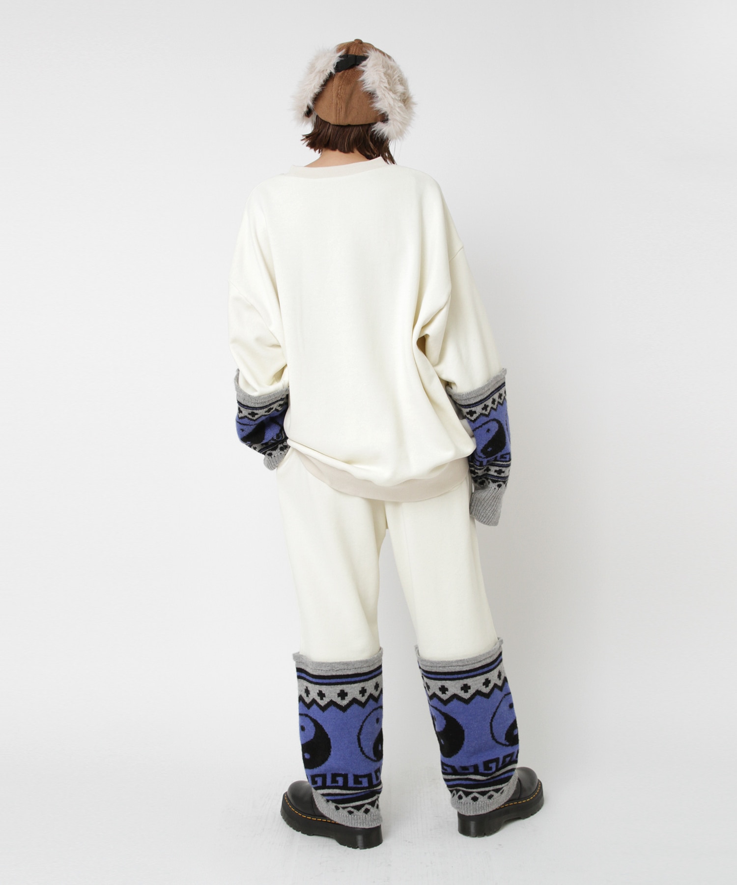 ニットパーツを付けたユニセックスな雰囲気のスウェットパンツ