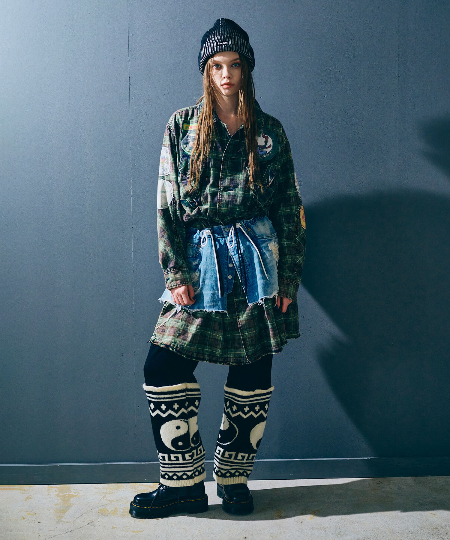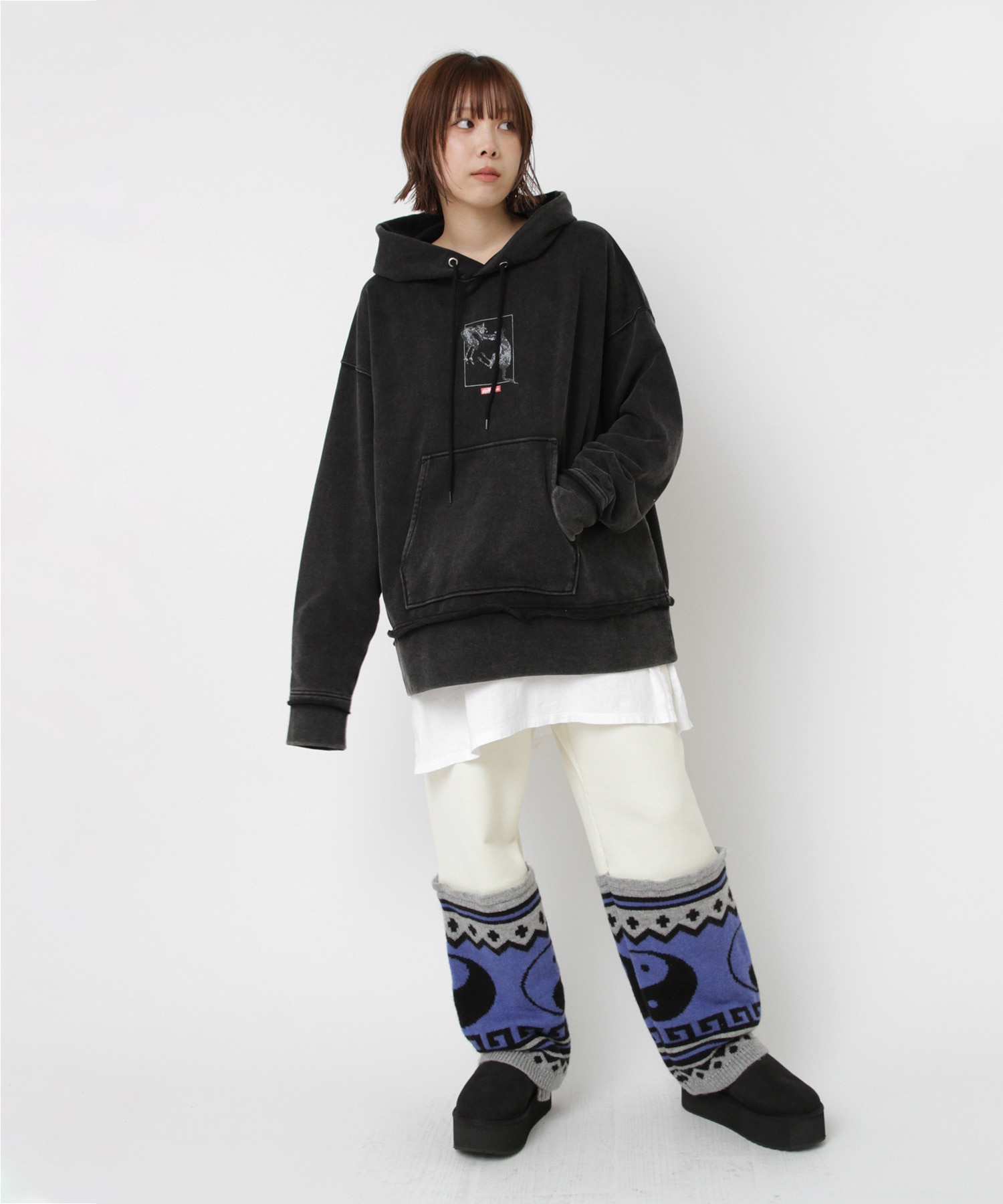 トップス、ボトムス、どちらもルーズなサイズ感でユニセックスな雰囲気のアイテムです。