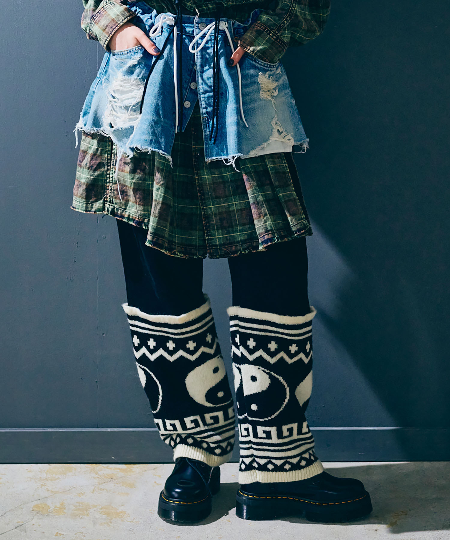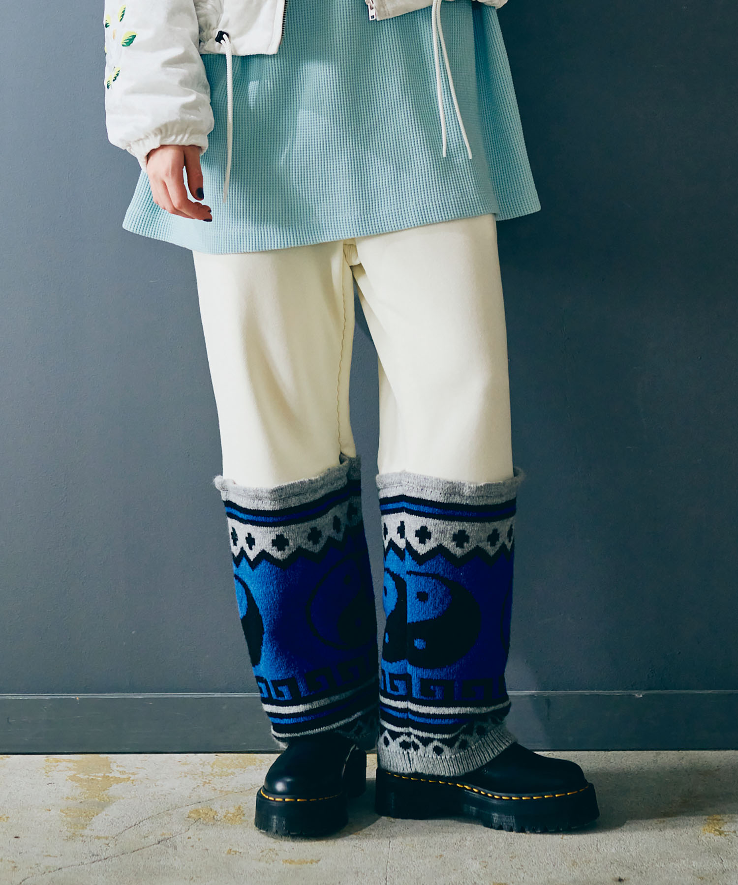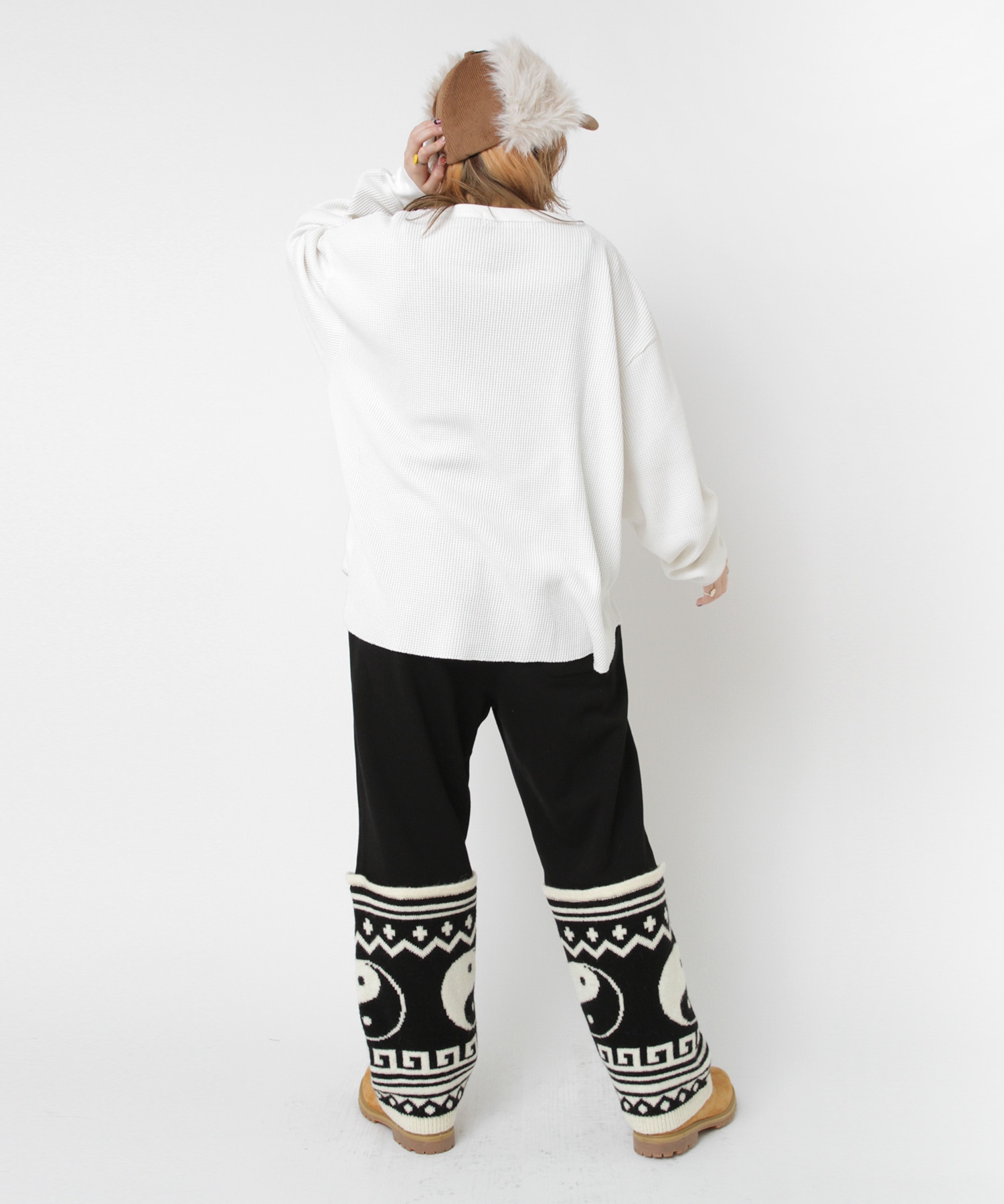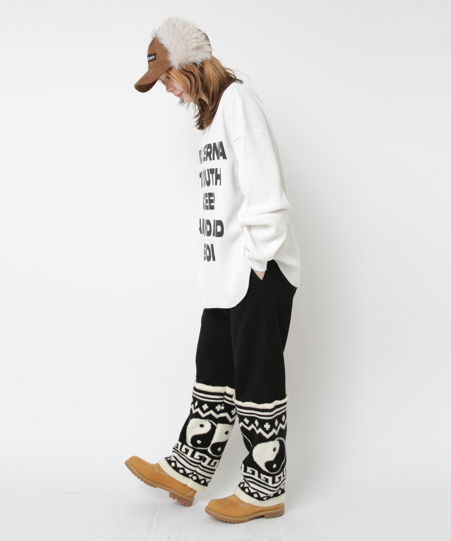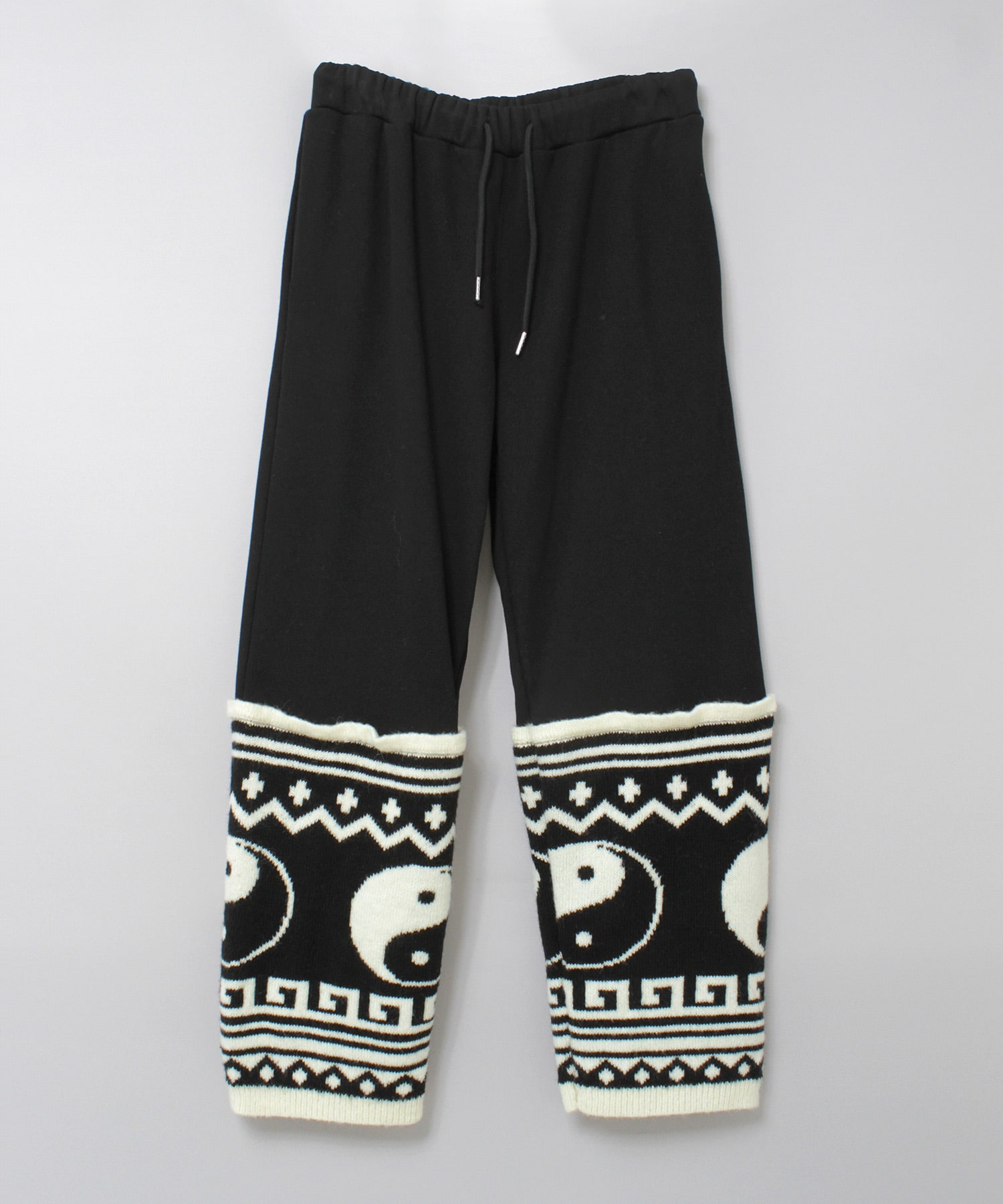 膝から下にニットパーツを付けたデザインのイージーパンツです。