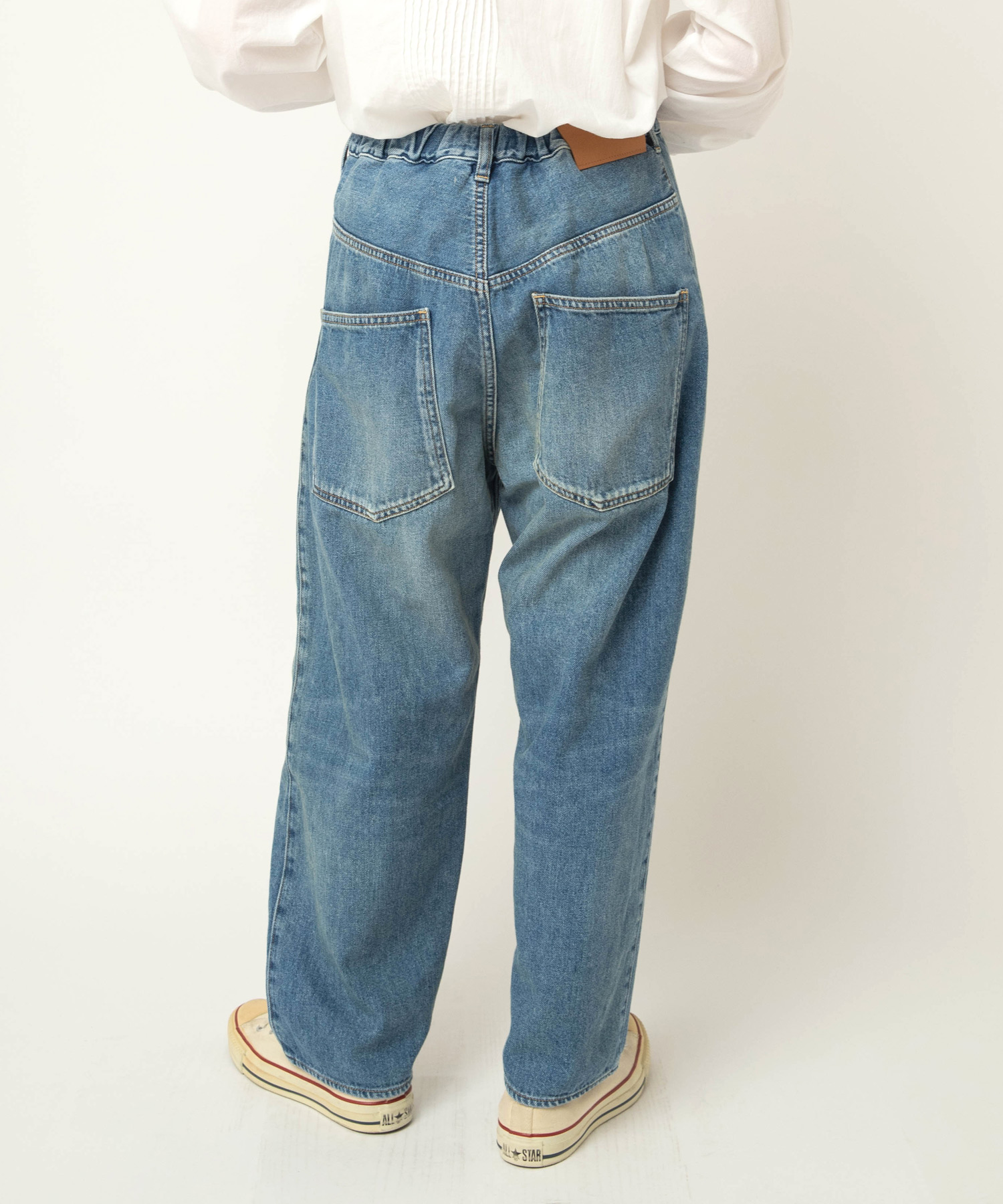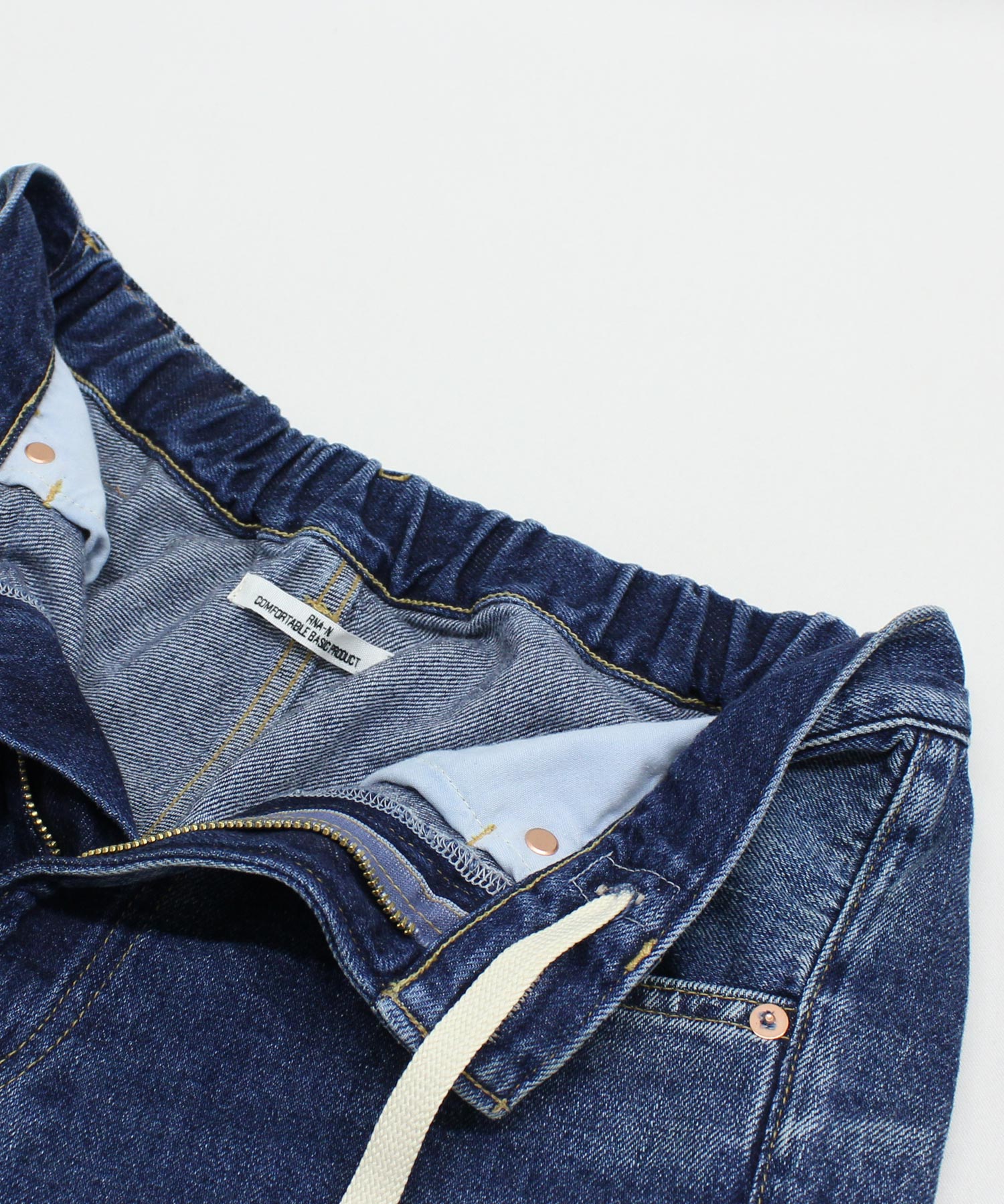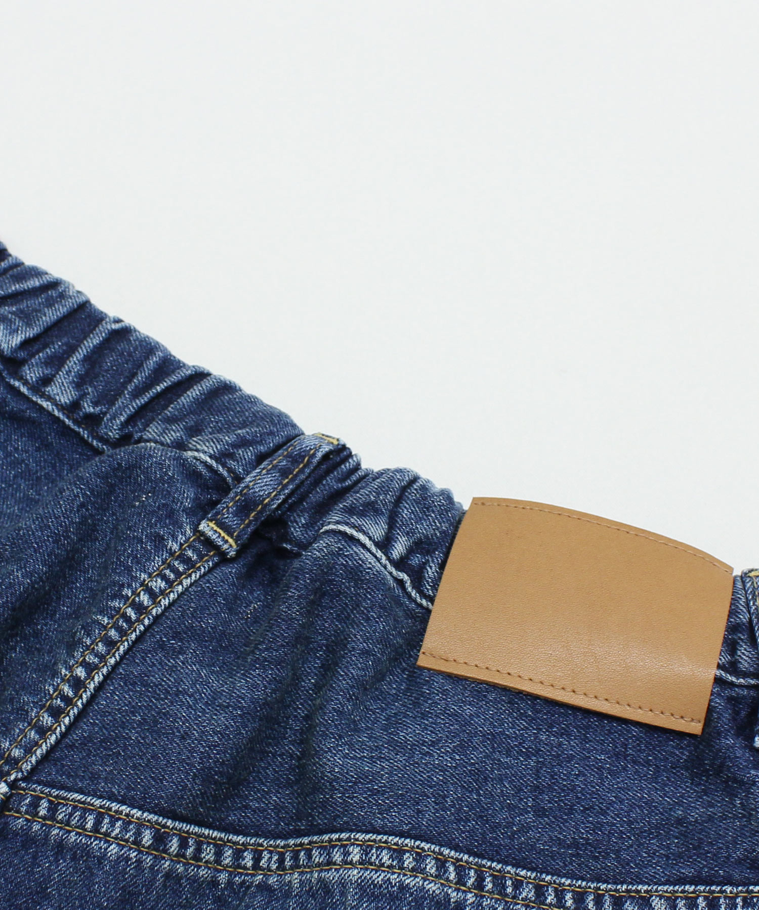 ウエストは後ろのみをゴム仕様にし、リラックスした穿き心地と本格的なデニムデザインの両方を叶えました。
