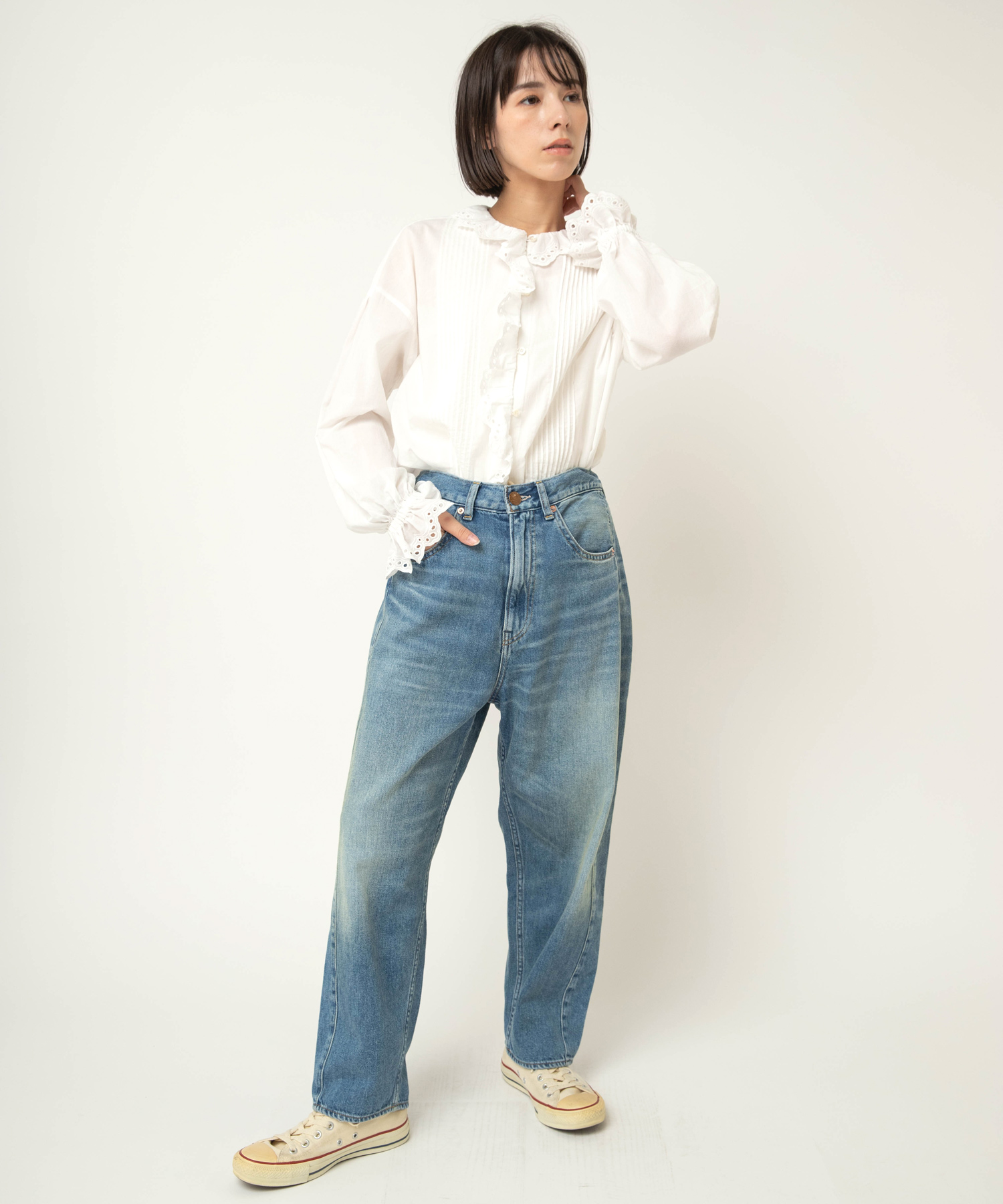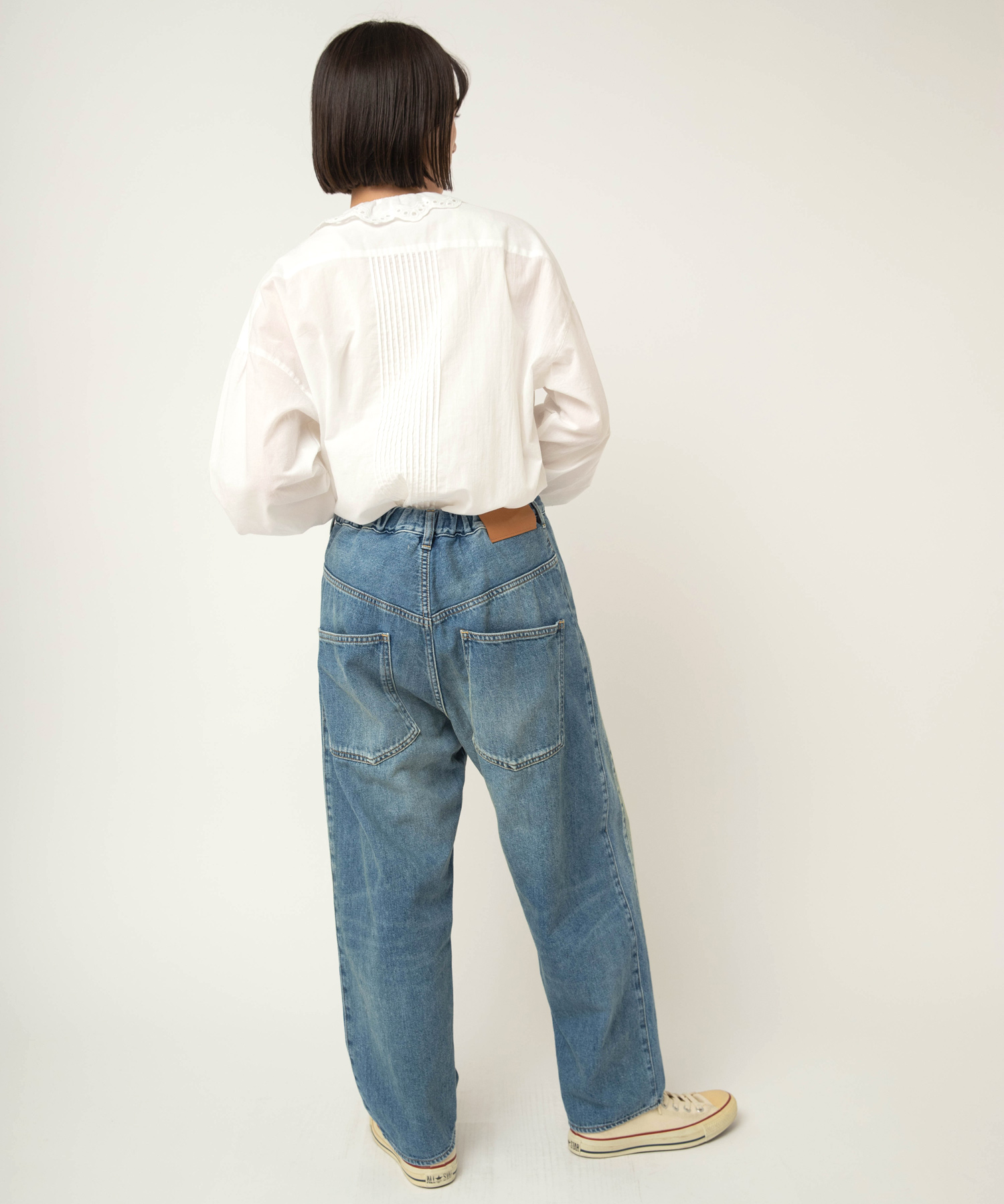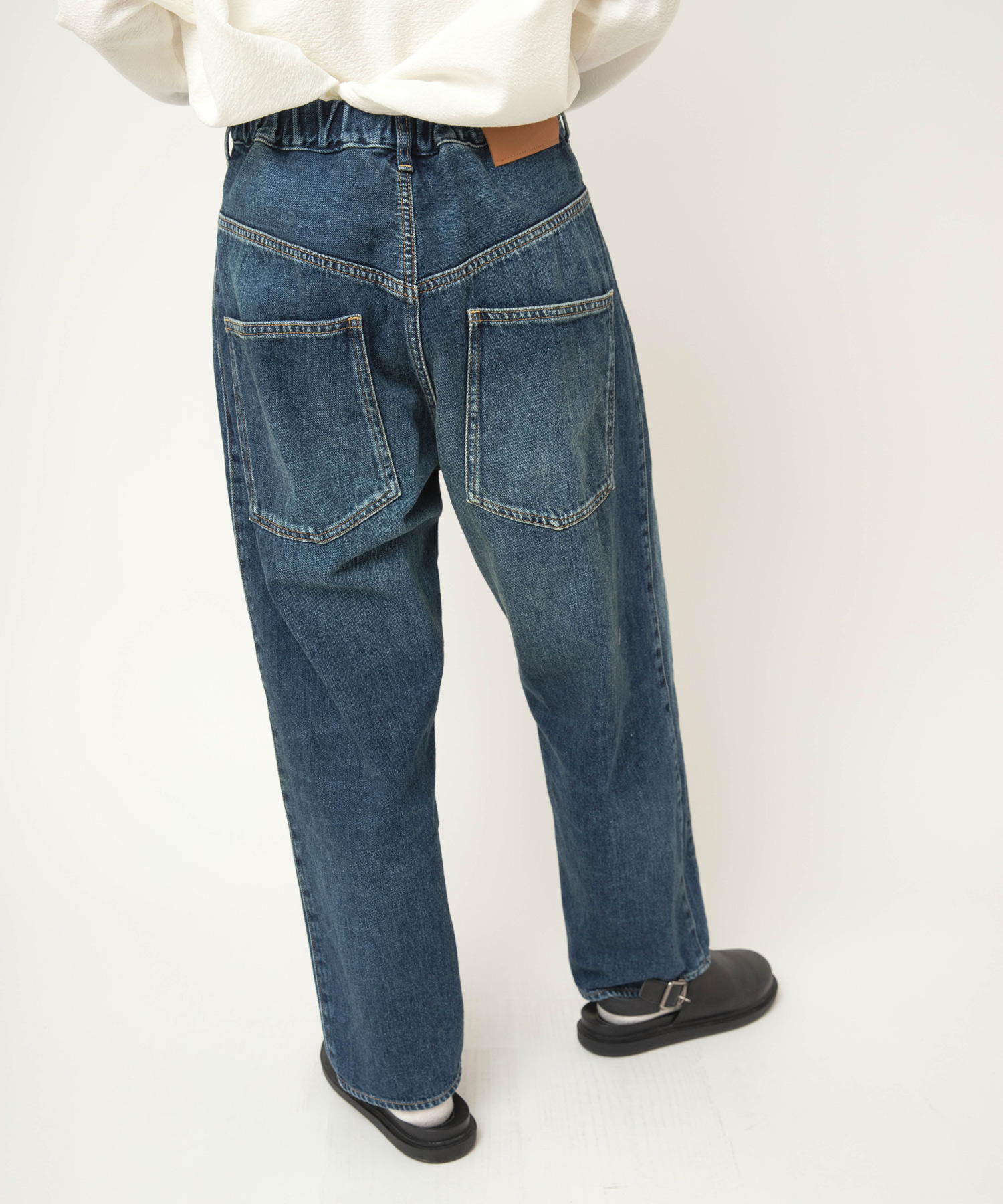 ウエストは後ろのみをゴム仕様にし、リラックスした穿き心地と本格的なデニムデザインの両方を叶えました。