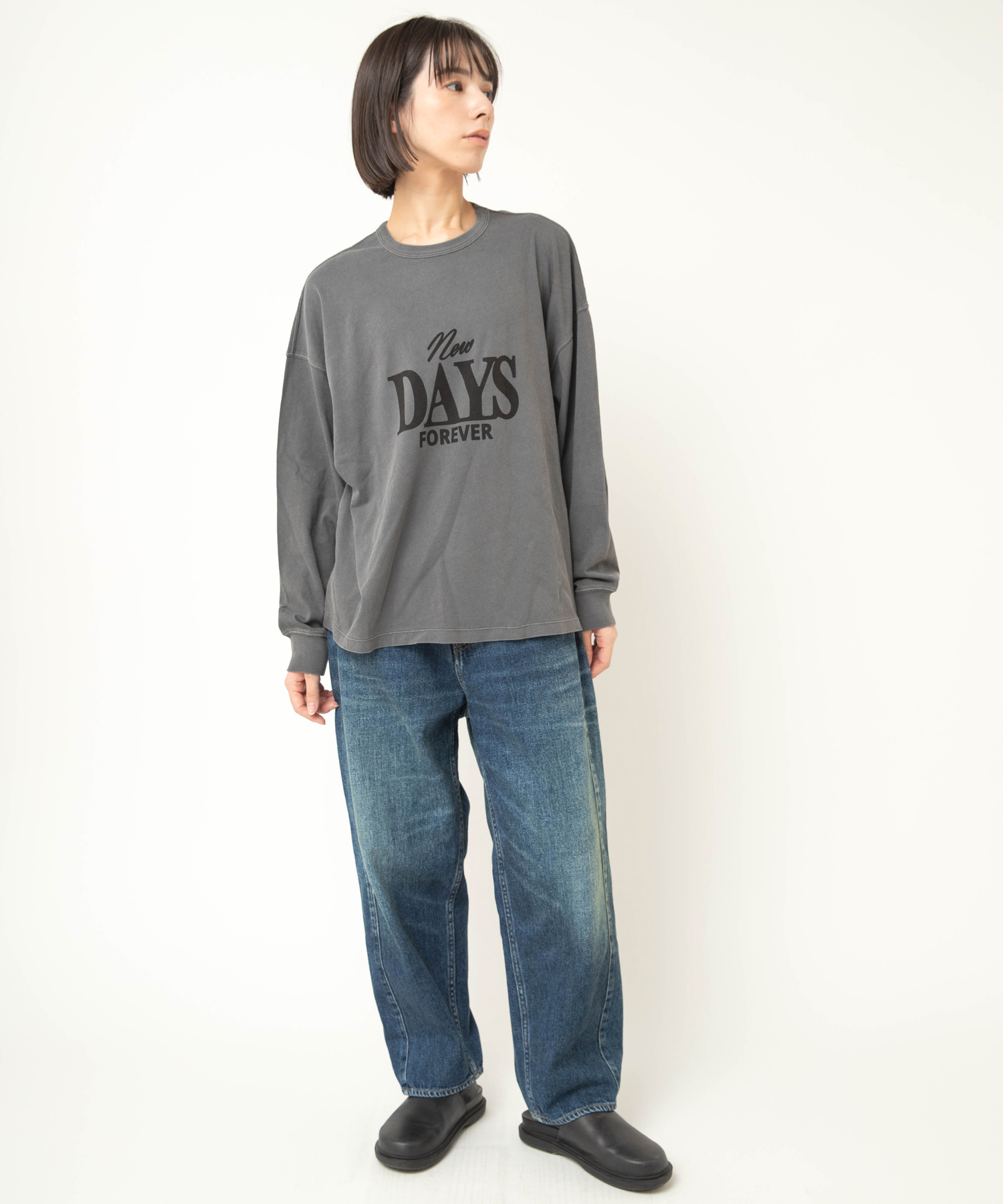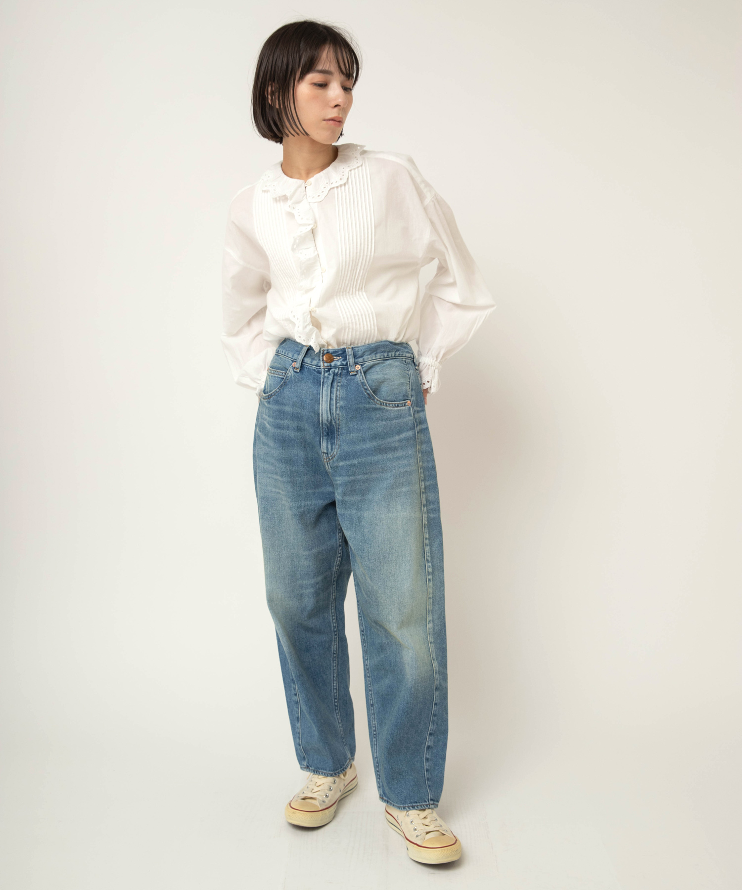 裾に向かって細くなりながらも、腰やヒップまわりにはゆとりをもたせ、こなれた印象に仕上げています。