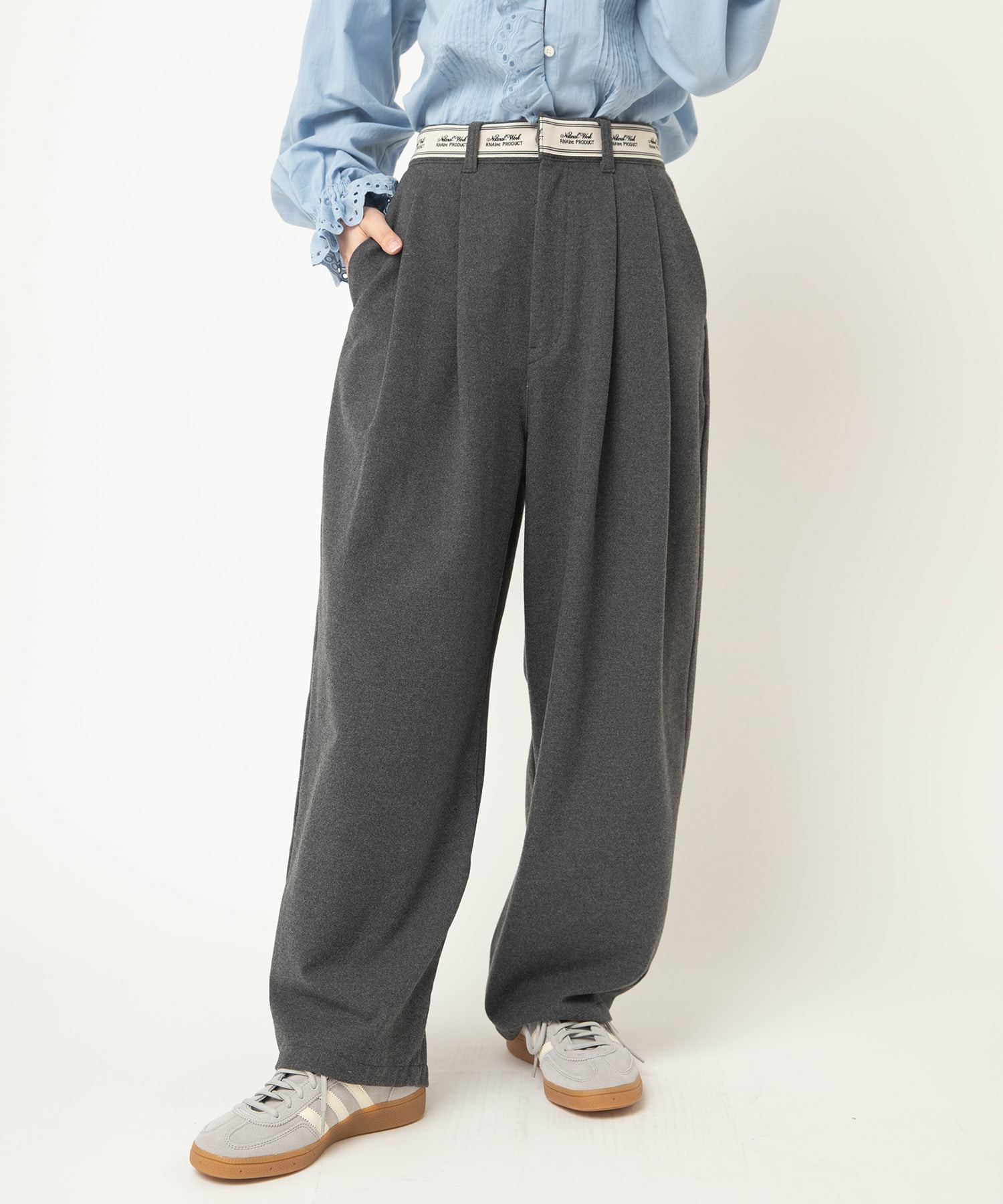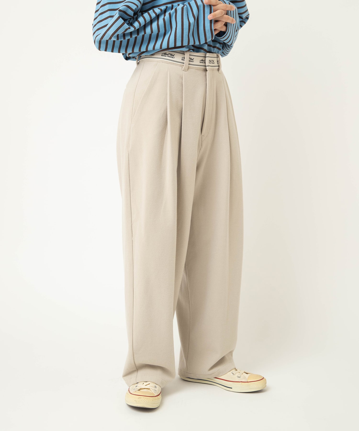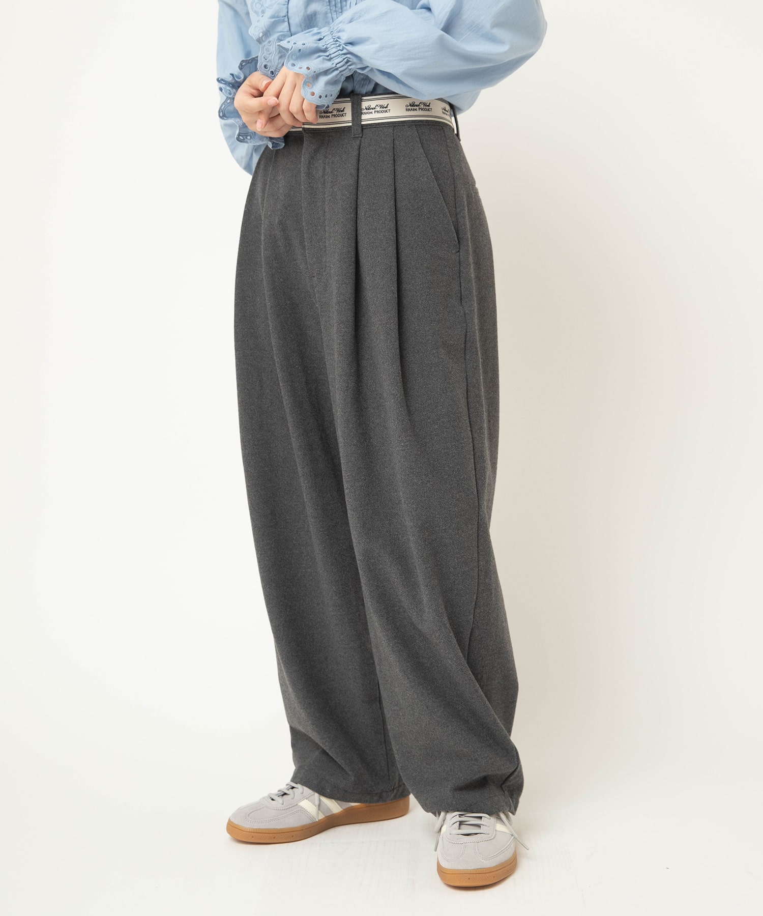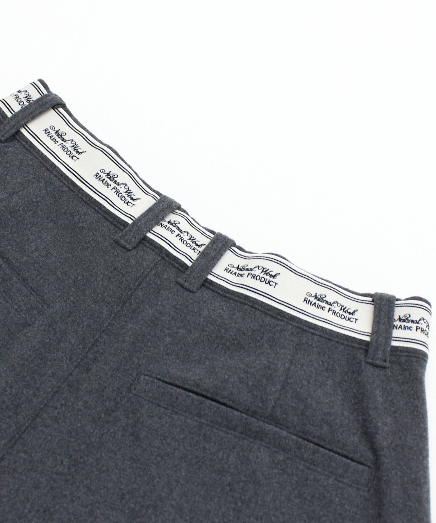 Nオリジナルロゴゴムをあしらったウエストベルトが、2タックのスラックスライクなデザインをカジュアルに見せてくれます。