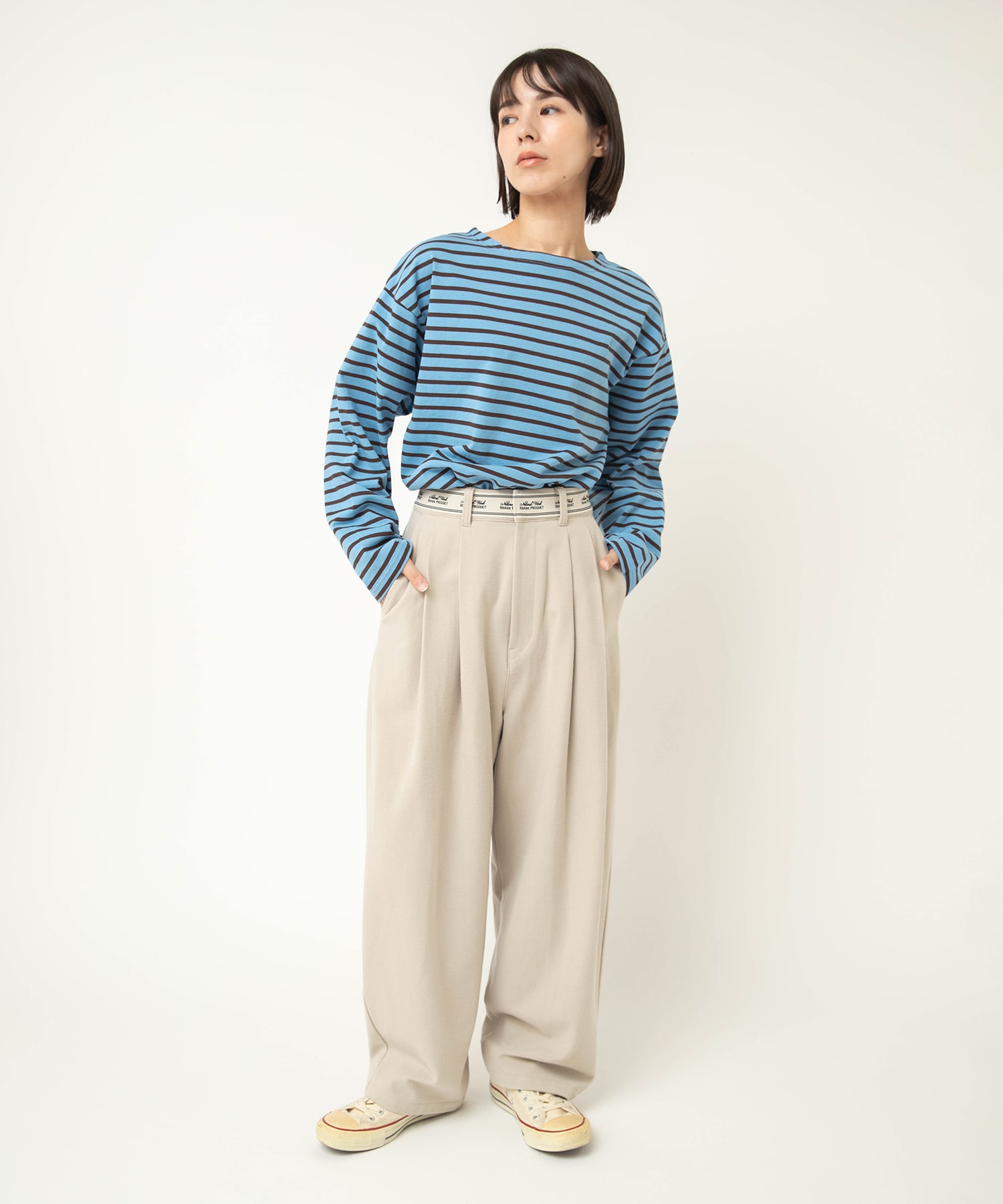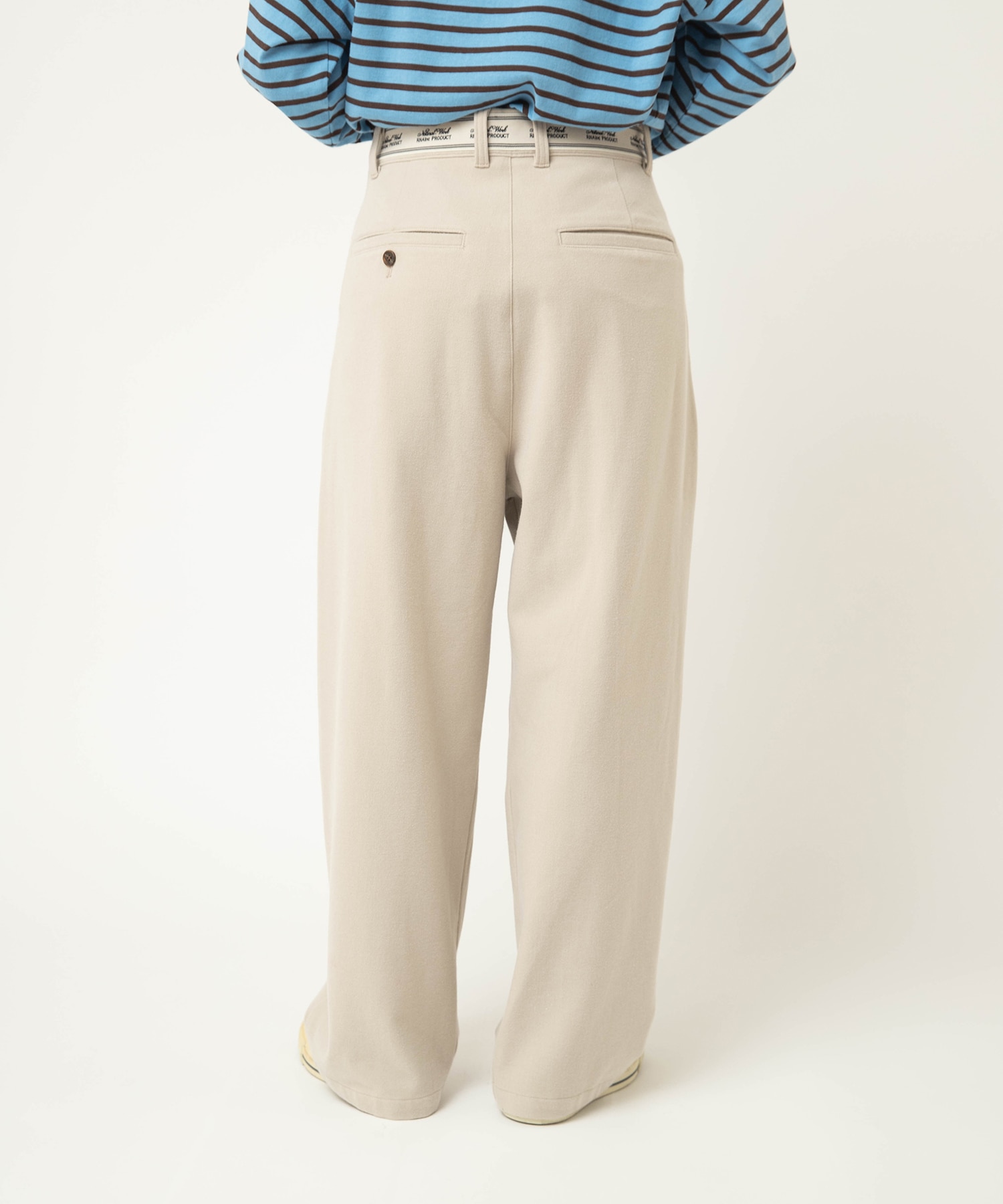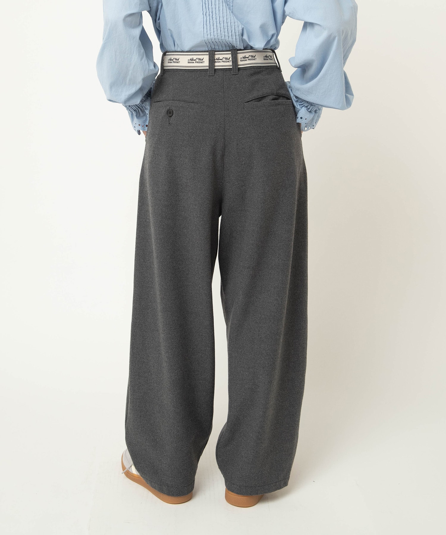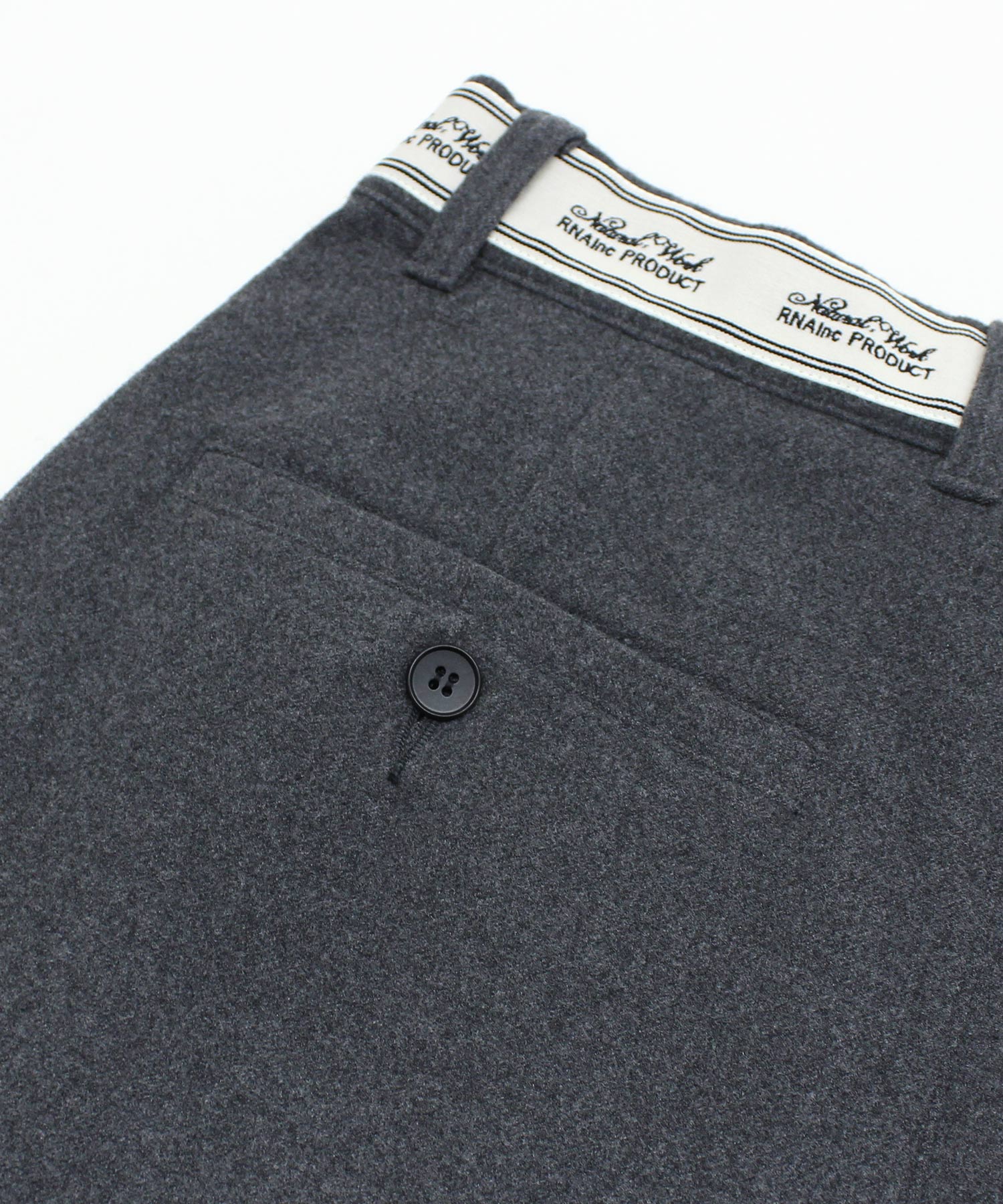 Nオリジナルロゴゴムをあしらったウエストベルトが、2タックのスラックスライクなデザインをカジュアルに見せてくれます。