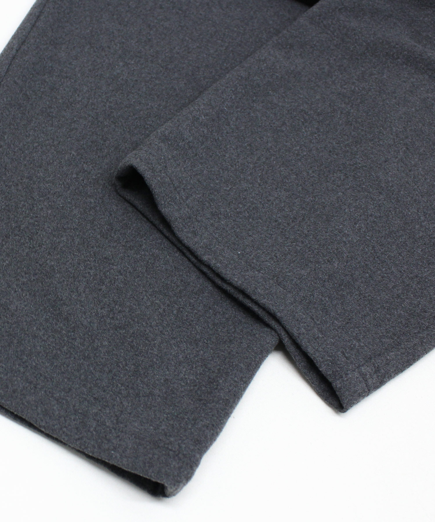程よい厚みと着心地の良さもあり、両面起毛でしっとりしたなめらかな風合いのパンツはこれからより寒くなる季節のイージーパンツとして最適です。