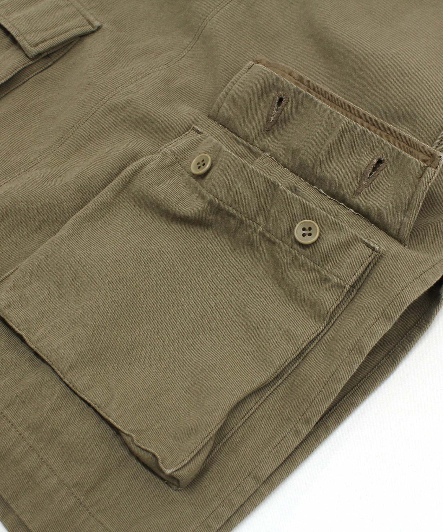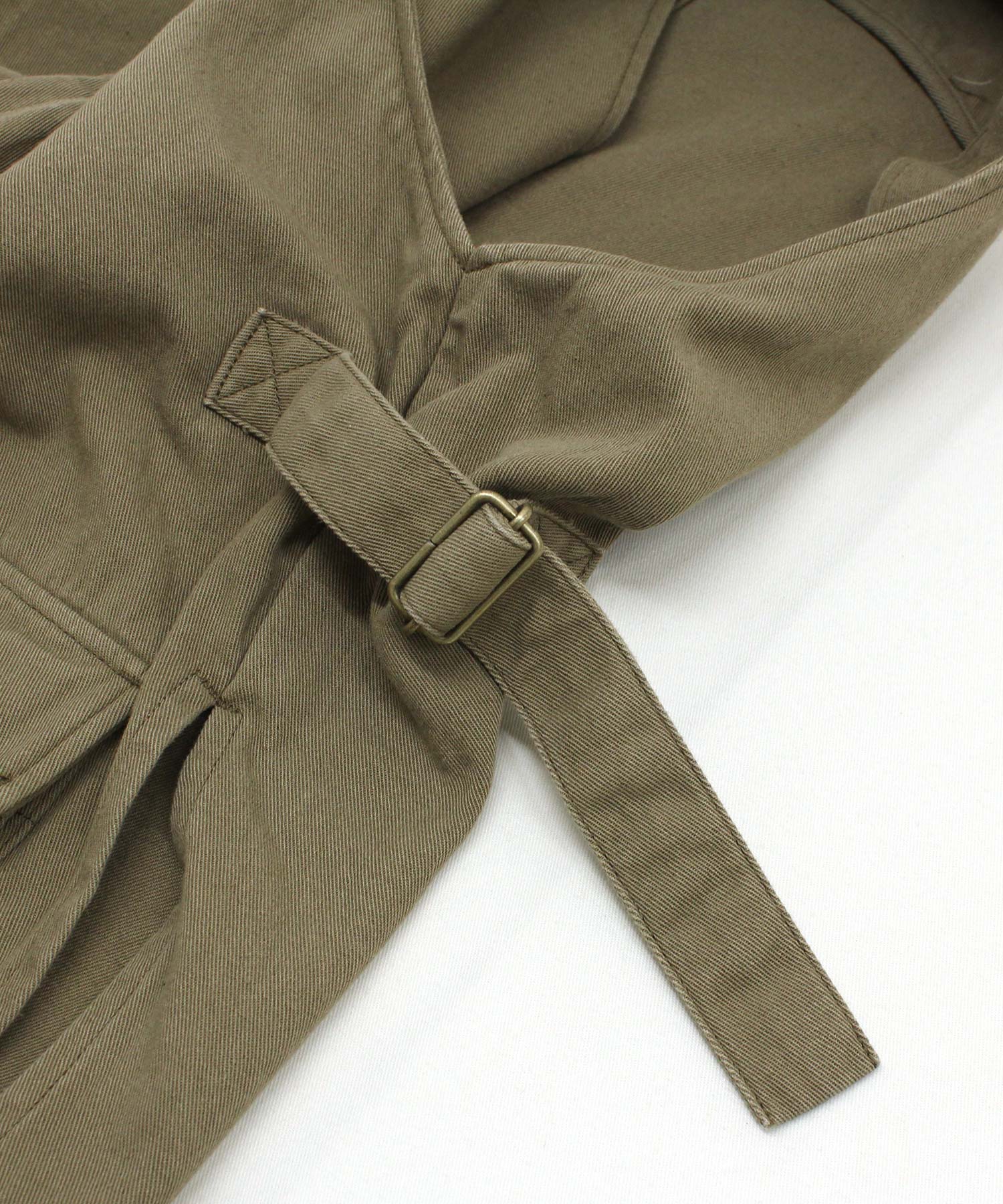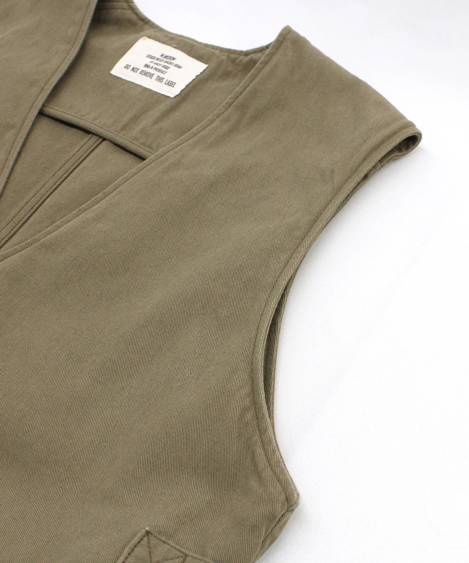 ワークテイストのフラップ付きポケットを付けた、大人な印象のベスト。