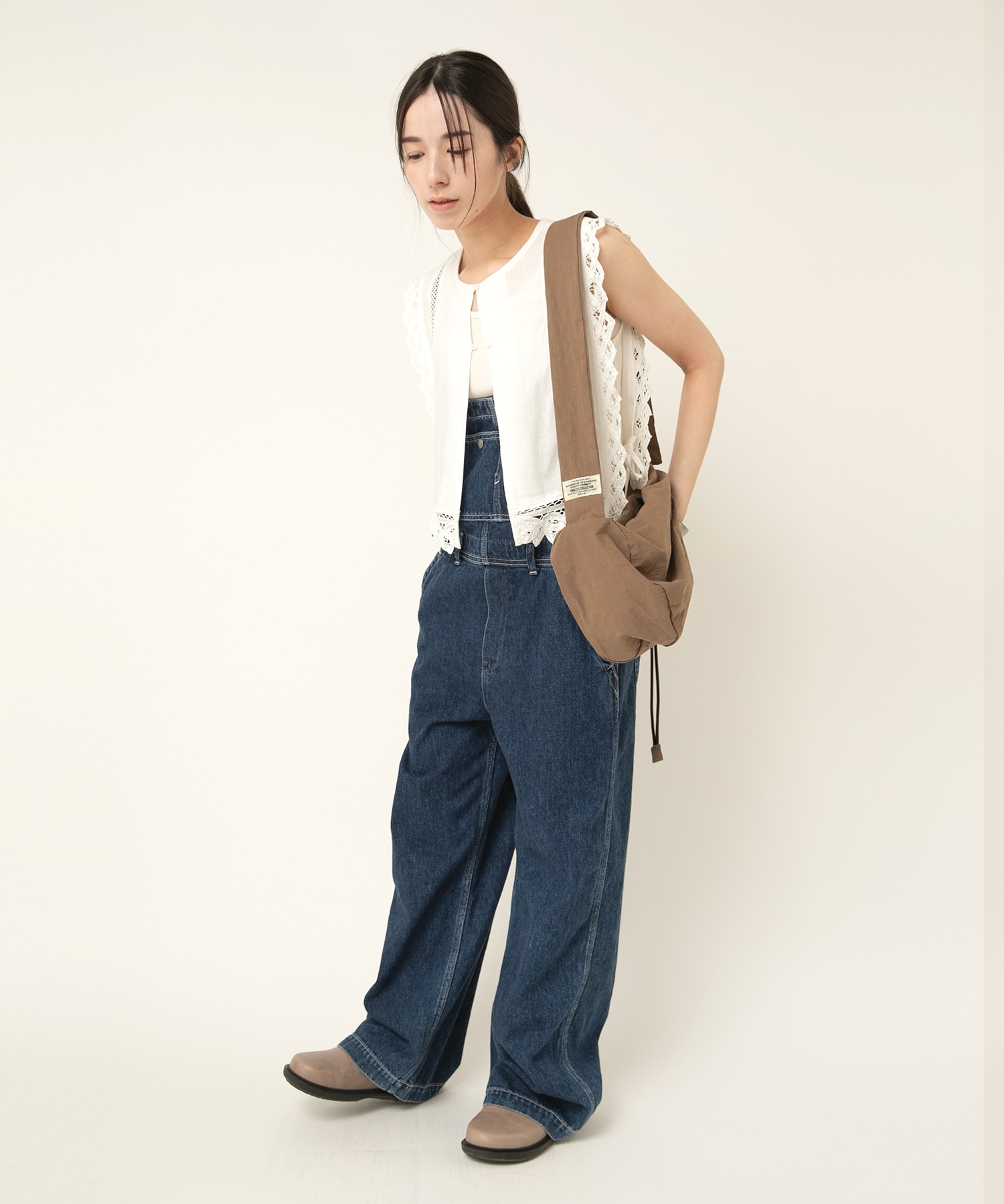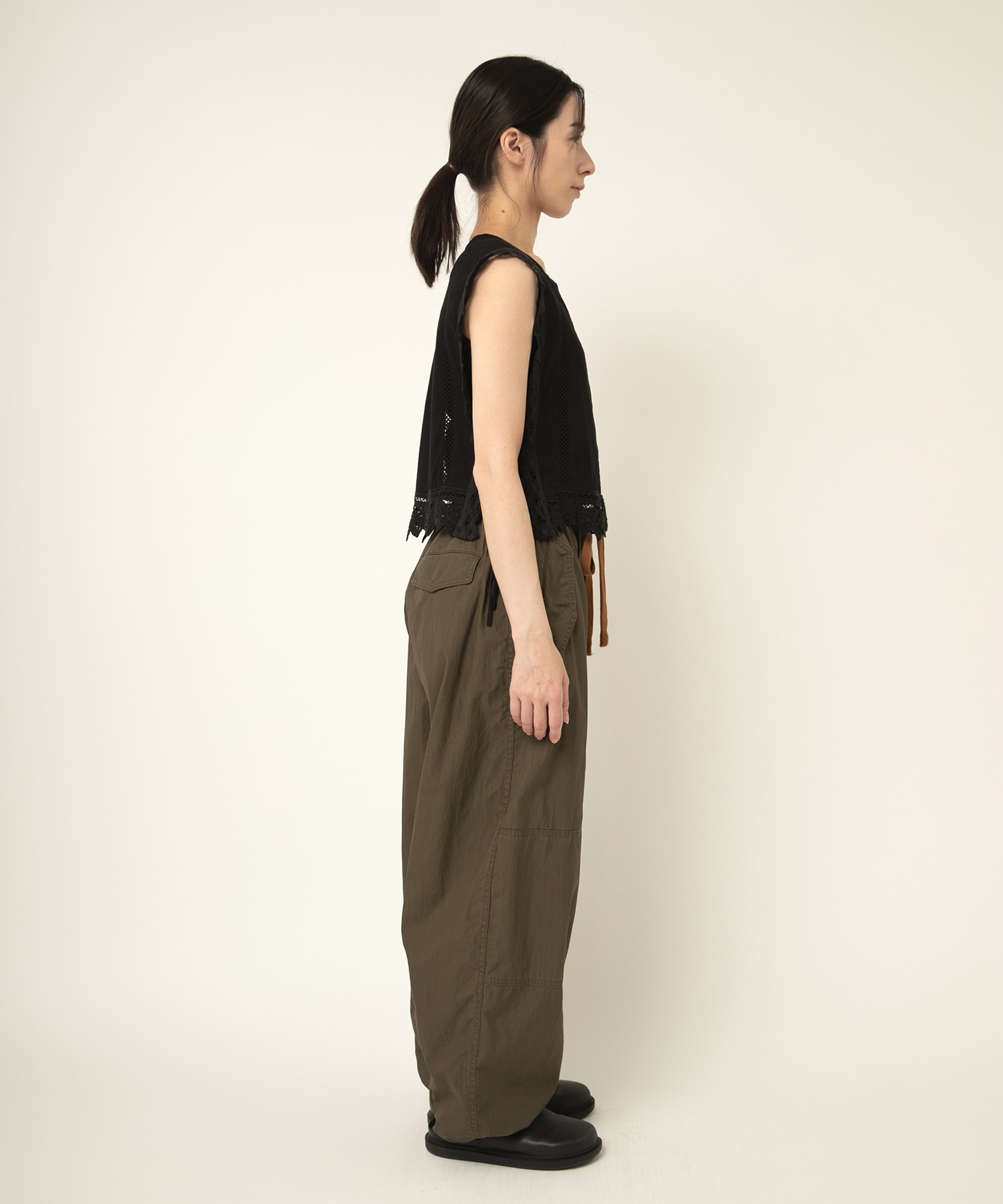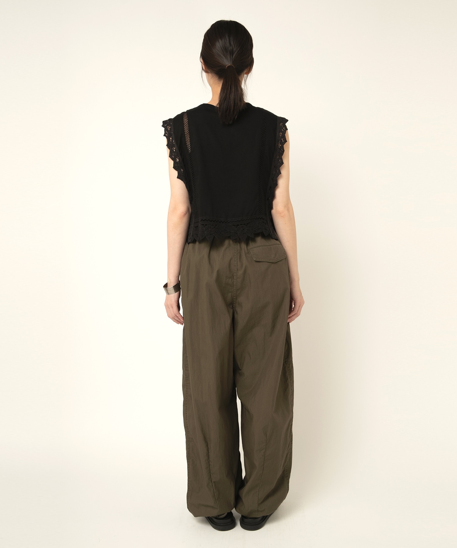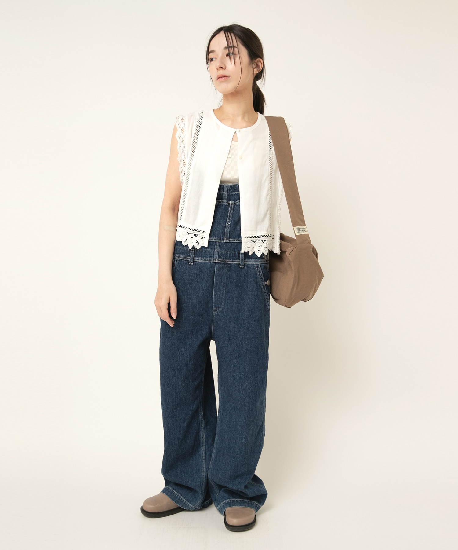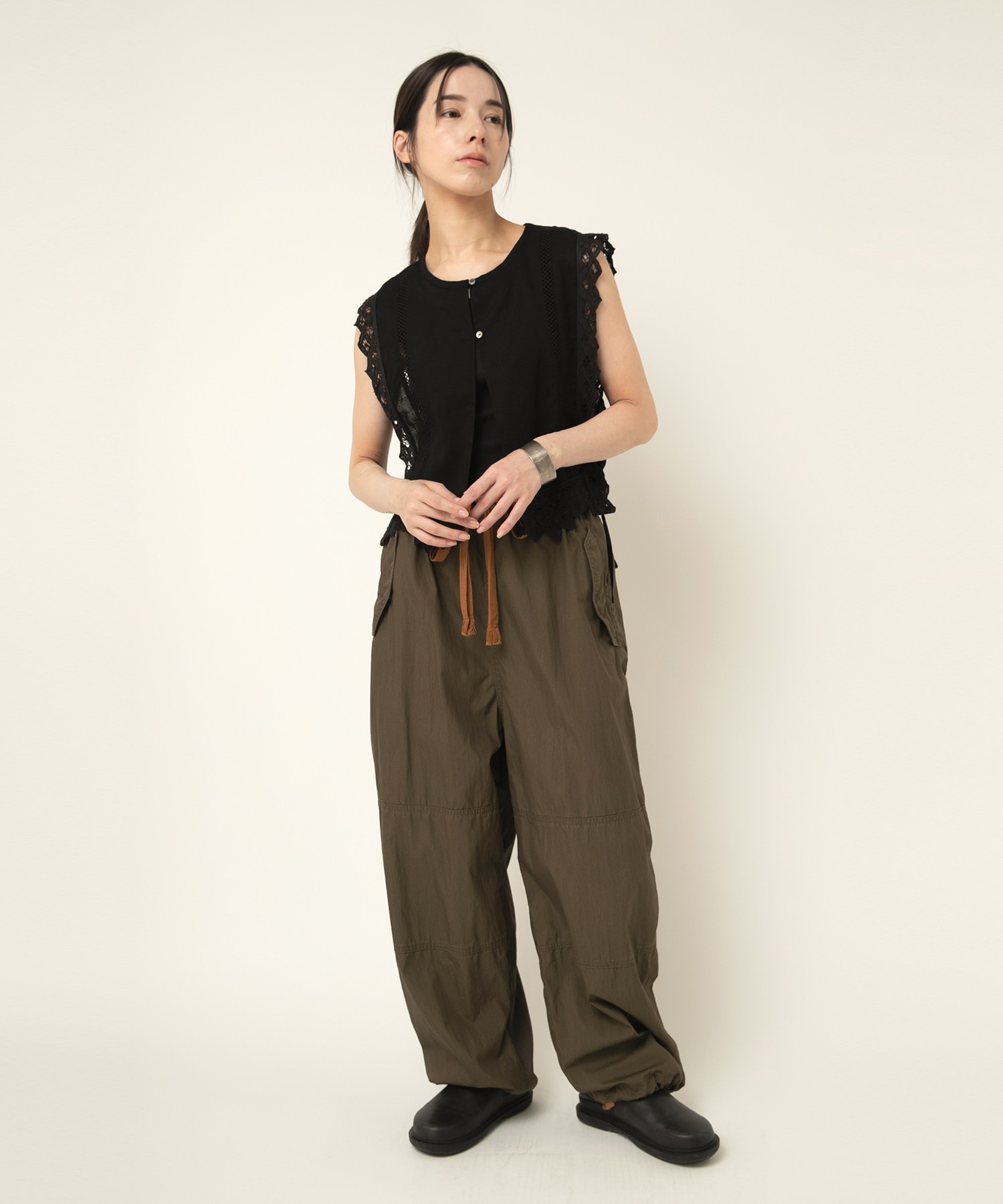 2種類のバテンレースとはしごレースを組み合わせたヴィンテージ感溢れるアイテムです。サイドが全て開いているので、どんなサイズのトップスにも合わせる事ができます。肩から裾まで贅沢にレースを使い、その透け感もナチュラルで雰囲気の出るベストです。