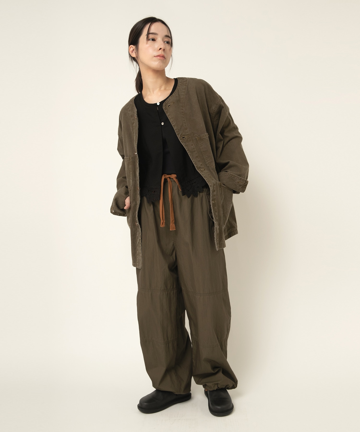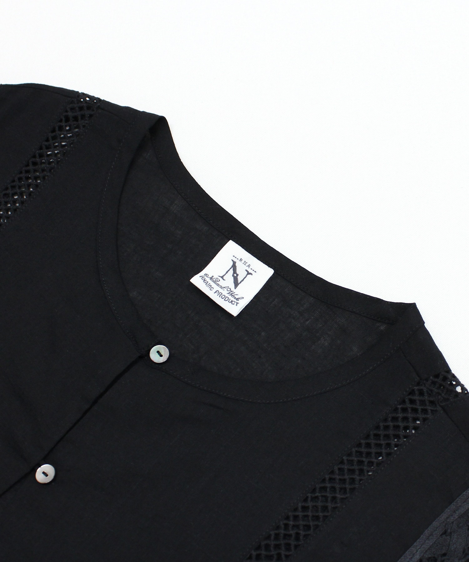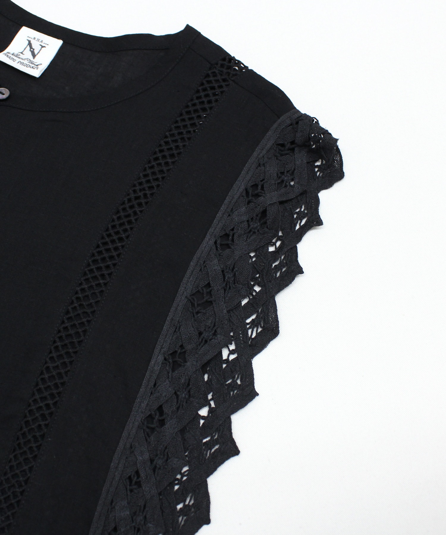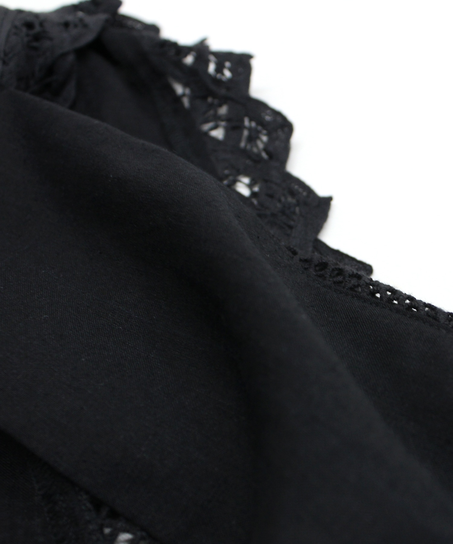 レーヨンリネンのとろみと落ち感のある生地と綿100%のナチュラルな繊細なバテンレースとはしごレースを組み合わせたシリーズです。柔らかな薄手素材がとても着心地を良くしてくれます。オフとブラックの2色展開で、オケージョンにも使用できます。