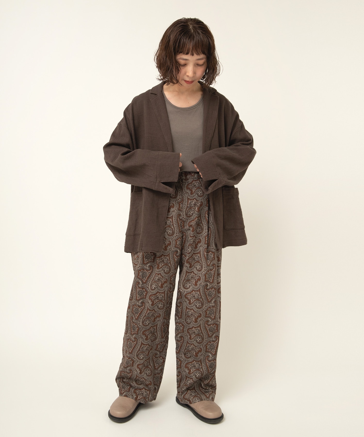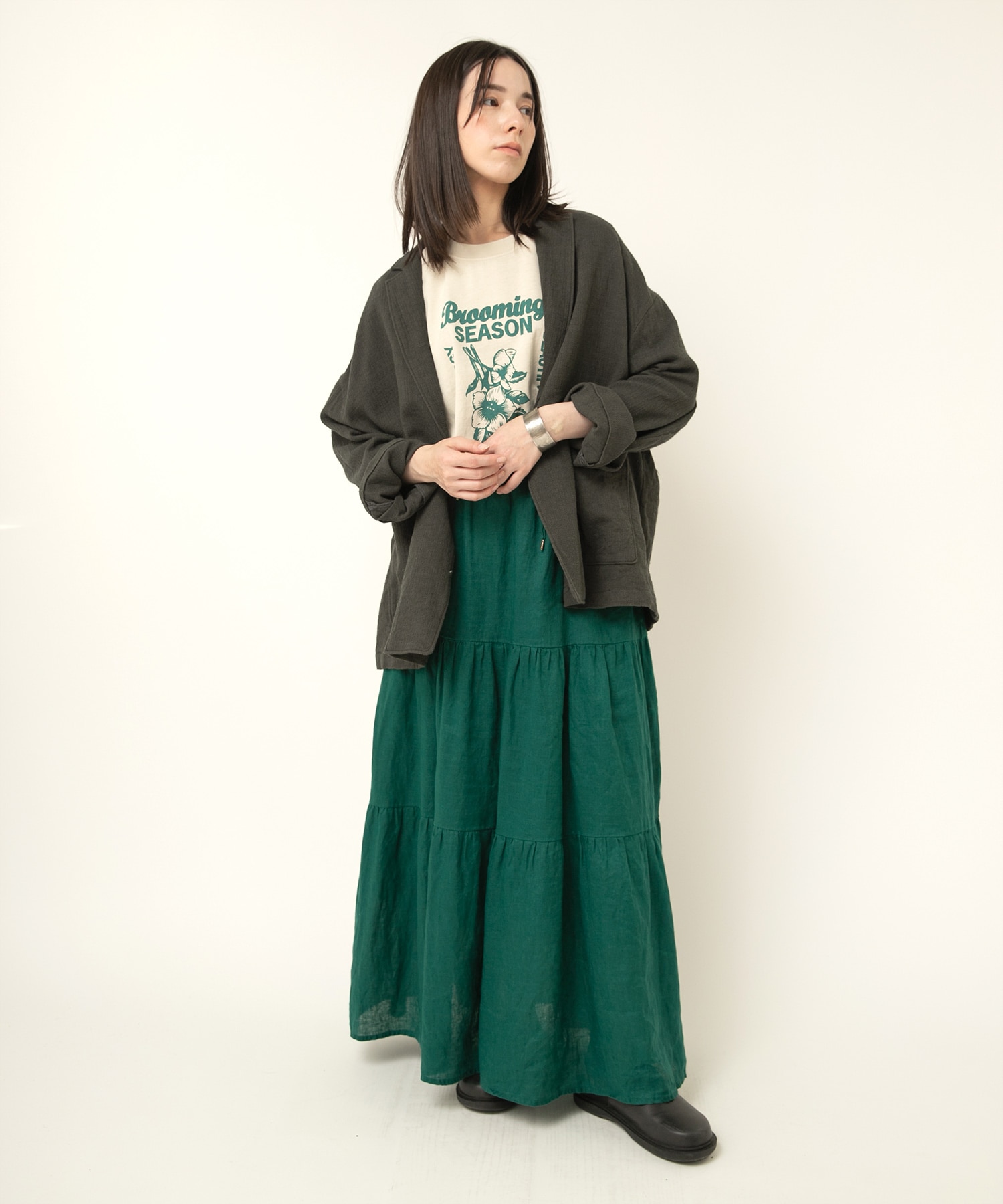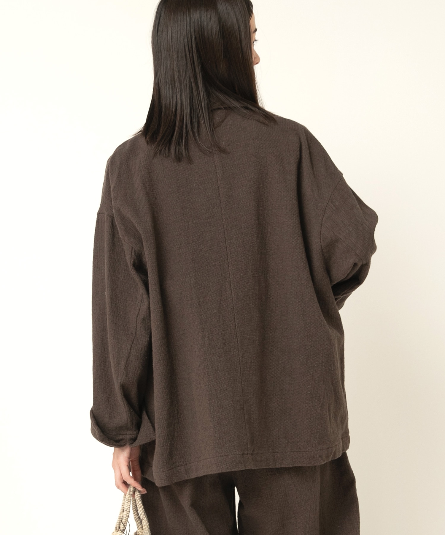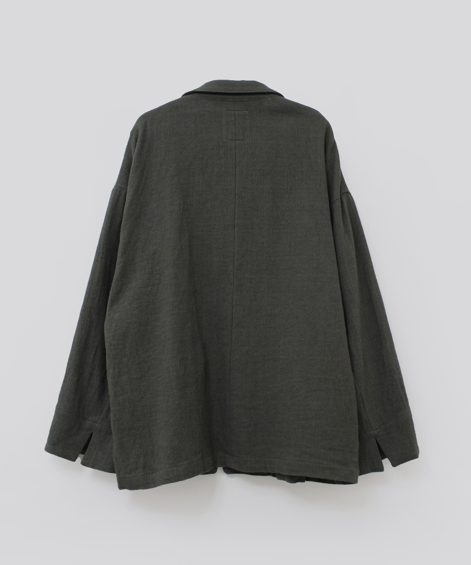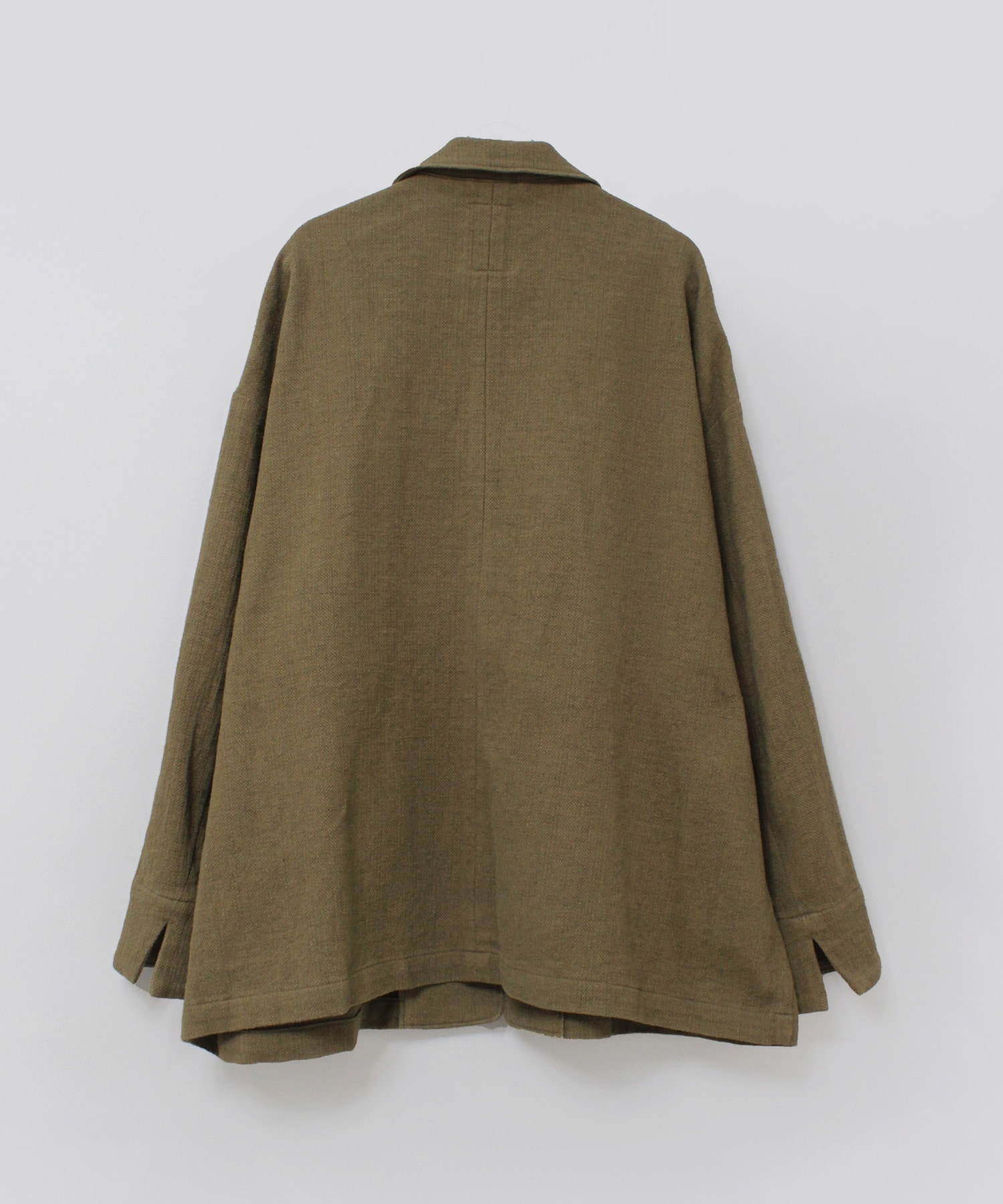 身幅や袖幅は大きく、ゆったりとしていて、ドロップショルダーがさらにカジュアルで、良い意味で決まりすぎないゆるっとかっこいいジャケットに仕上がりました。