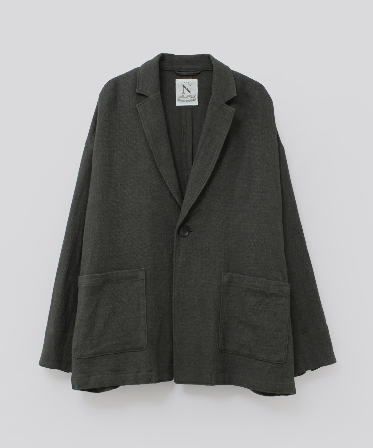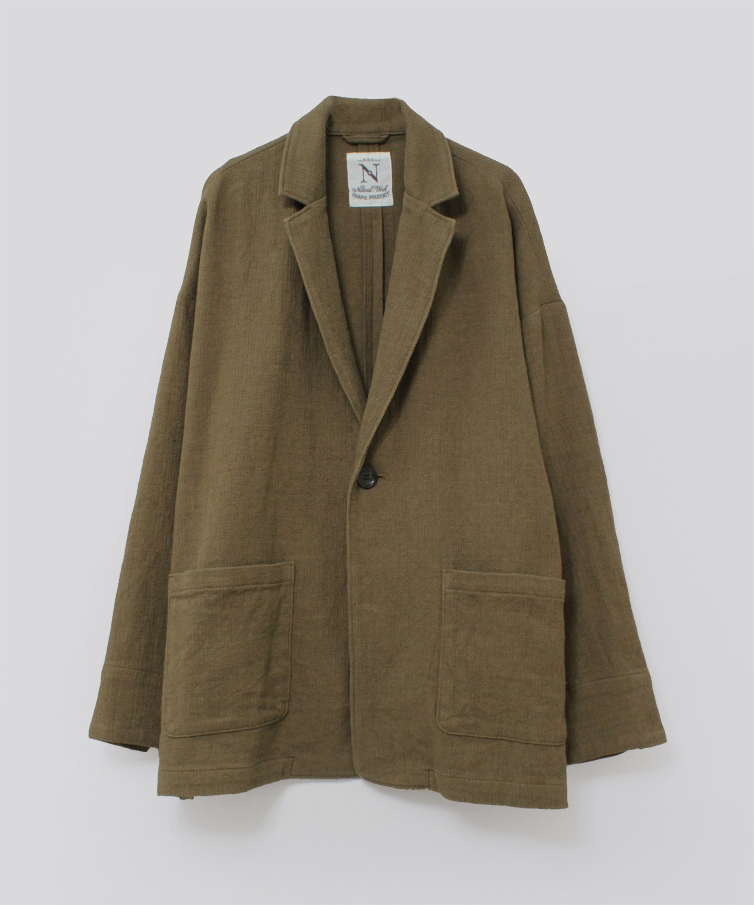 かっちりしすぎず、ラフな感じで着れるテーラードジャケットで、一つ釦や、袖口は折り返ししやすい様にあえて釦は付けない仕様になっています。