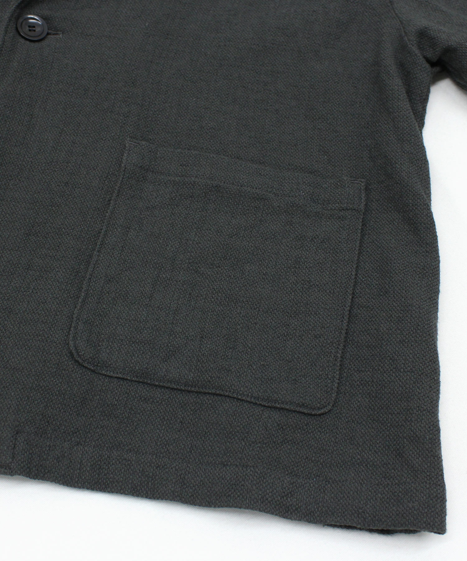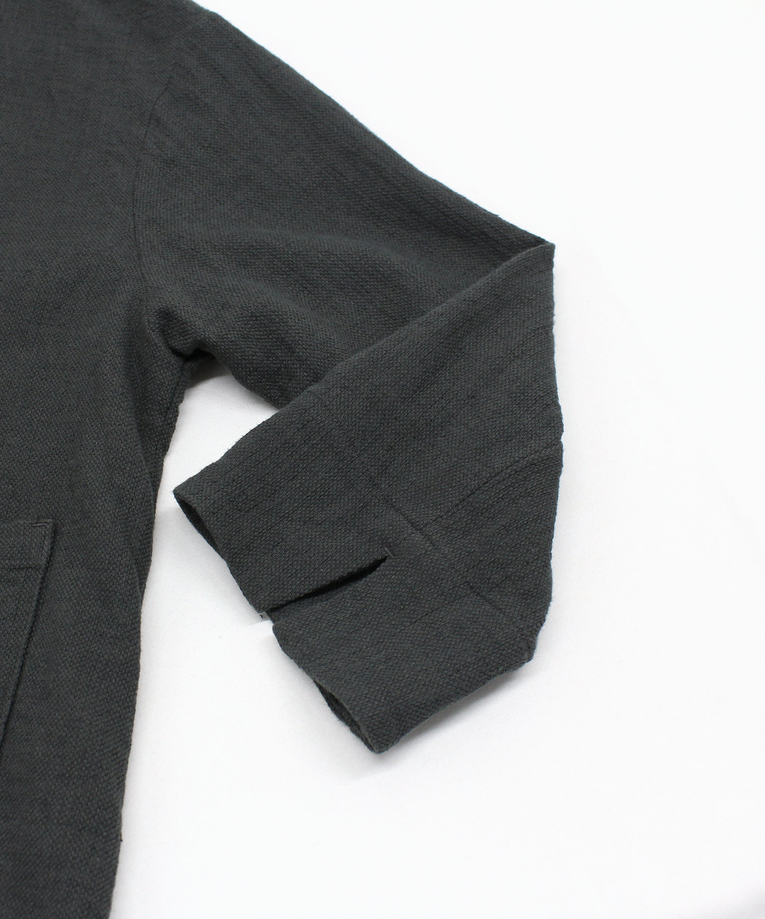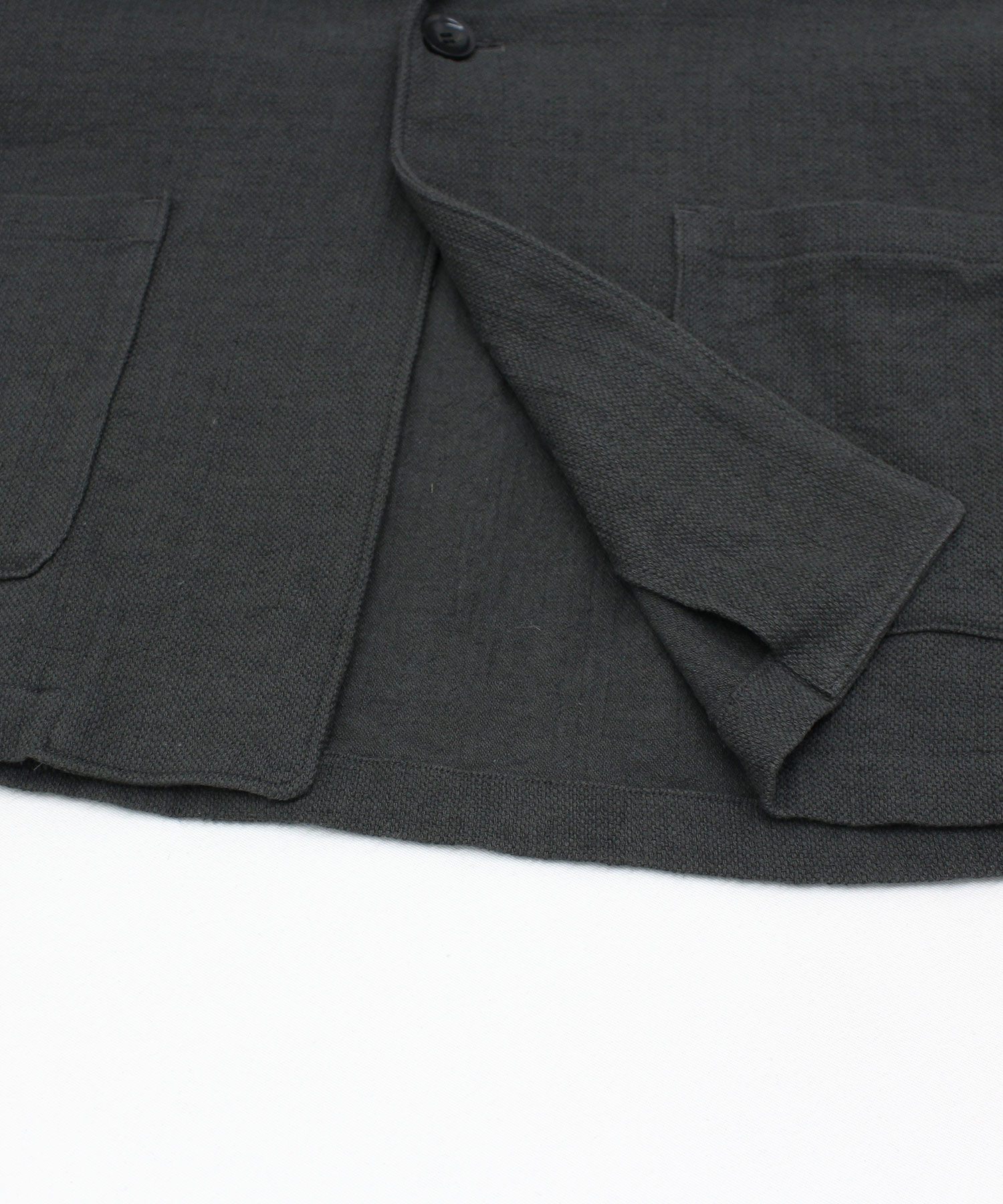 重厚な雰囲気がある一方で、着心地はさらりとしており、麻混のナチュラルで粗野な風合いが特徴の特別な生地です。