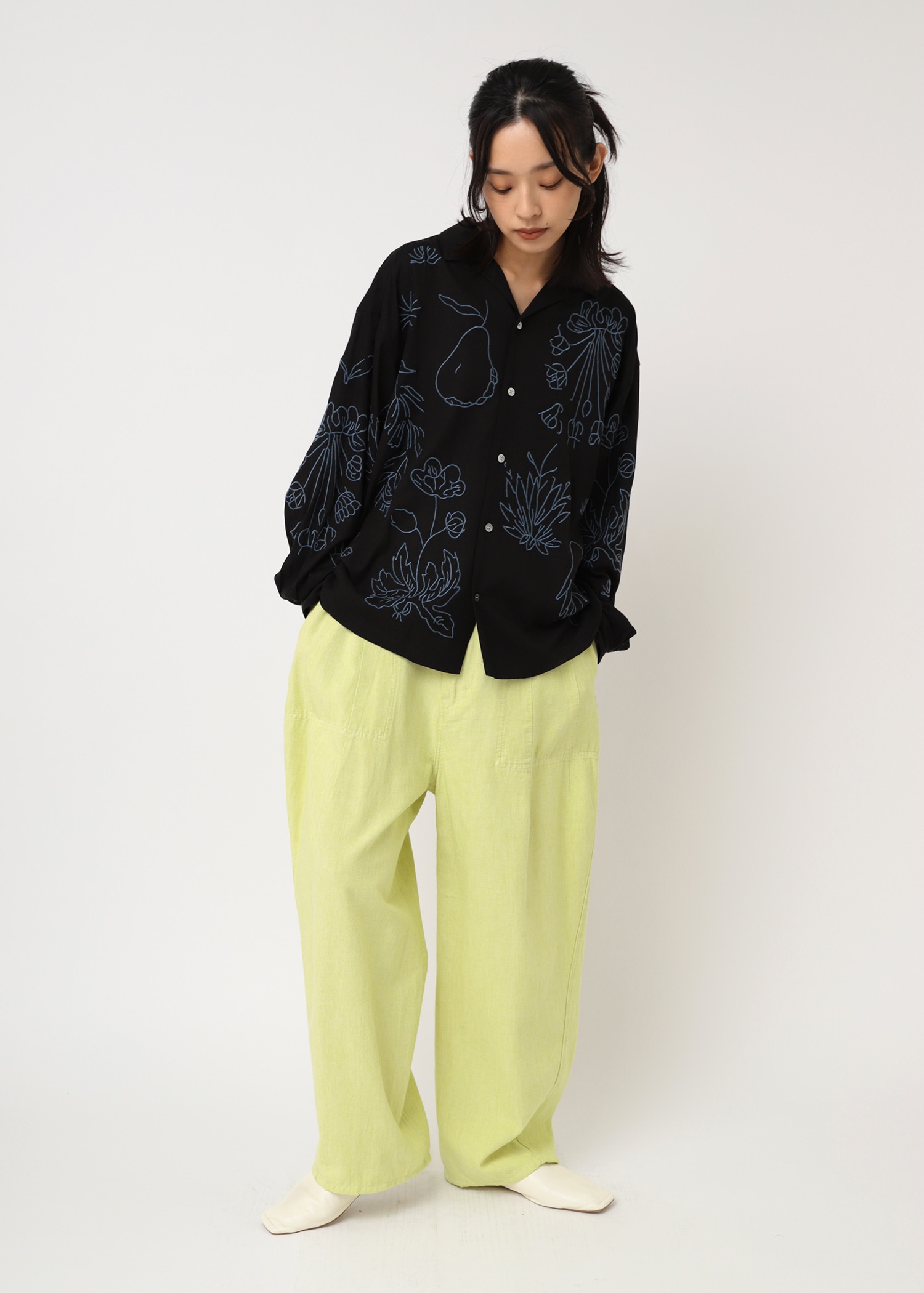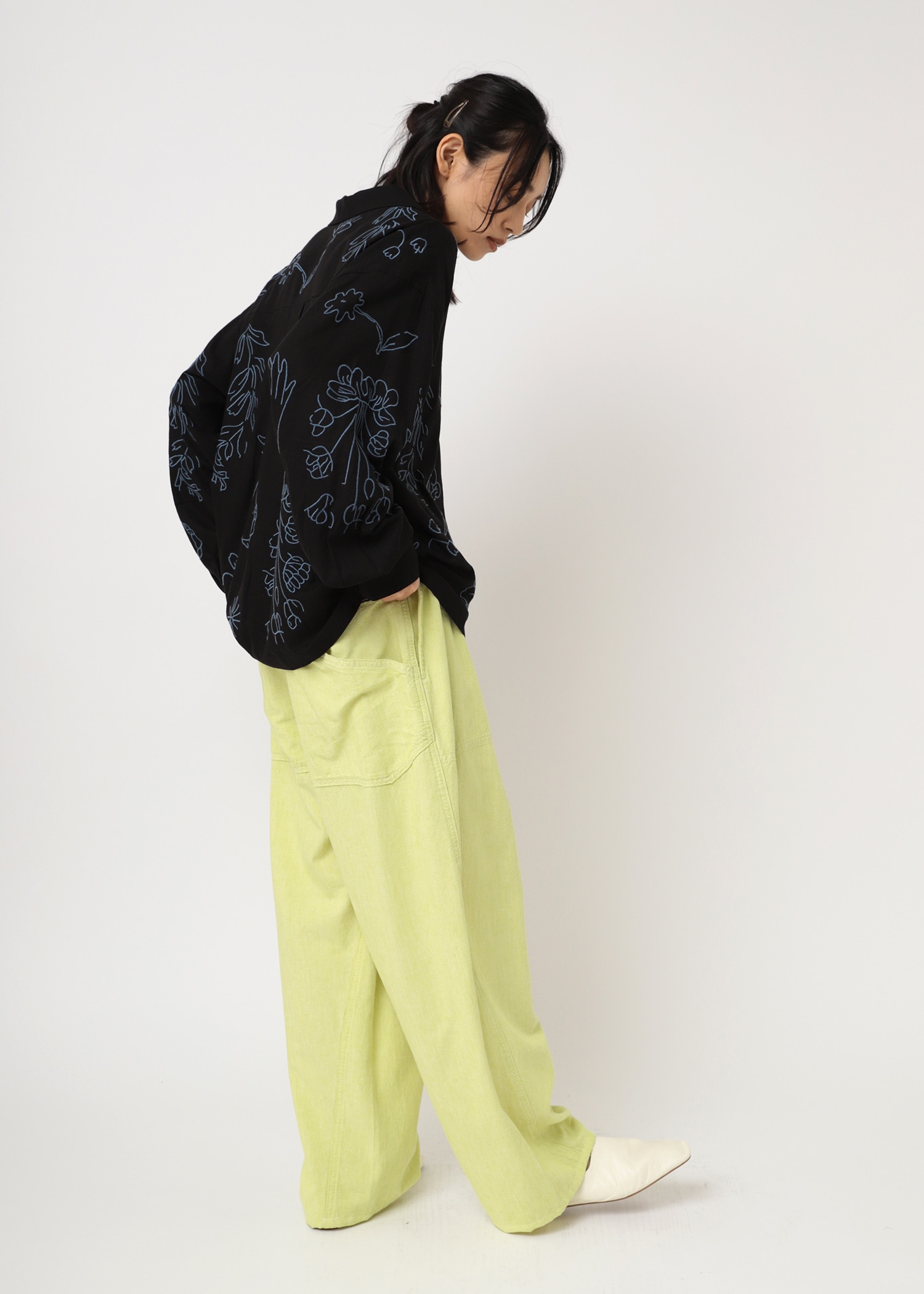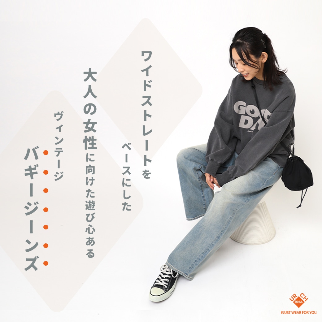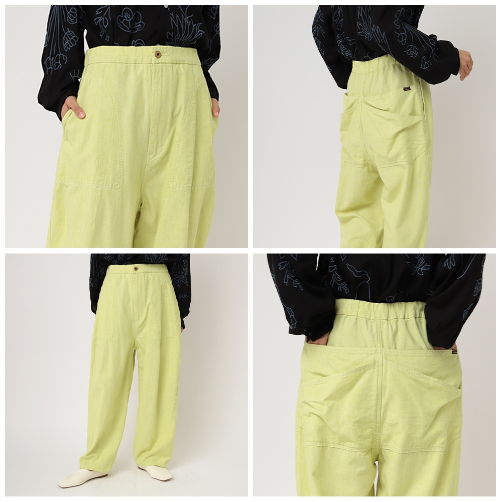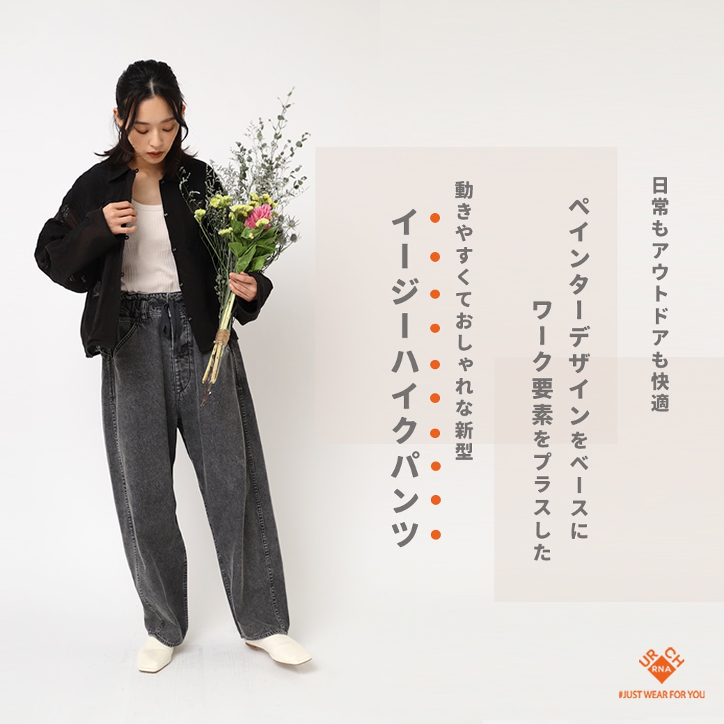ワークパンツ、裏毛スウェット、トレーナーを組み合わせたリメイク感あふれるコラージュデザイン。 左右非対称のパッチワークや、デニムウエストに代わるトレーナーリブで、快適なイージーパンツ仕様を実現しています。 ビンテージ感のあるムラ糸デニムと裏毛の異素材コンビで、股上深めのリラックスルーズシルエットが女性らしい曲線を描きます。 手間をかけた加工でブランドの個性を凝縮した、主役級の一本です。