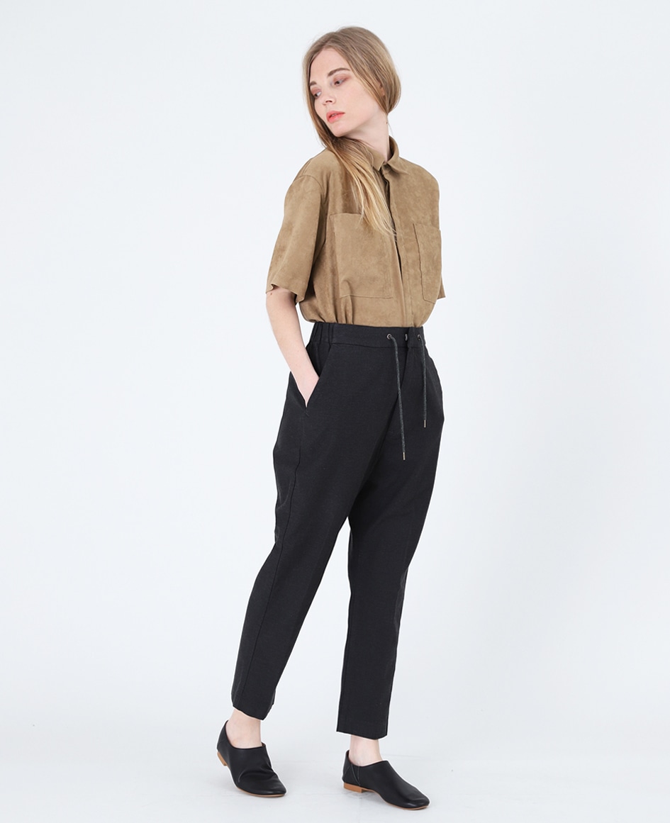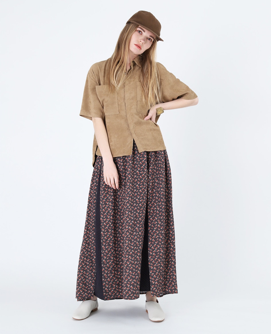 『 秋の先取り、まずは素材とカラーから 』リアルな風合いが魅力のエコスエードシャツは洗濯可能で汗ばむ季節 から着用できる優れもの。落ち感のある柄スカートを合わせて軽やか な秋色コーデに仕上げる。季節の変わり目、素材とカラーから秋らし さを取り入れてみて。 |
