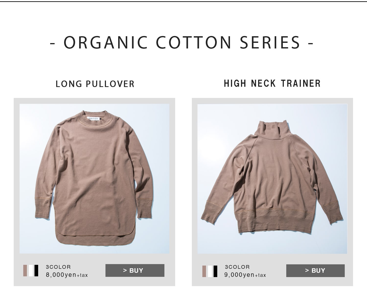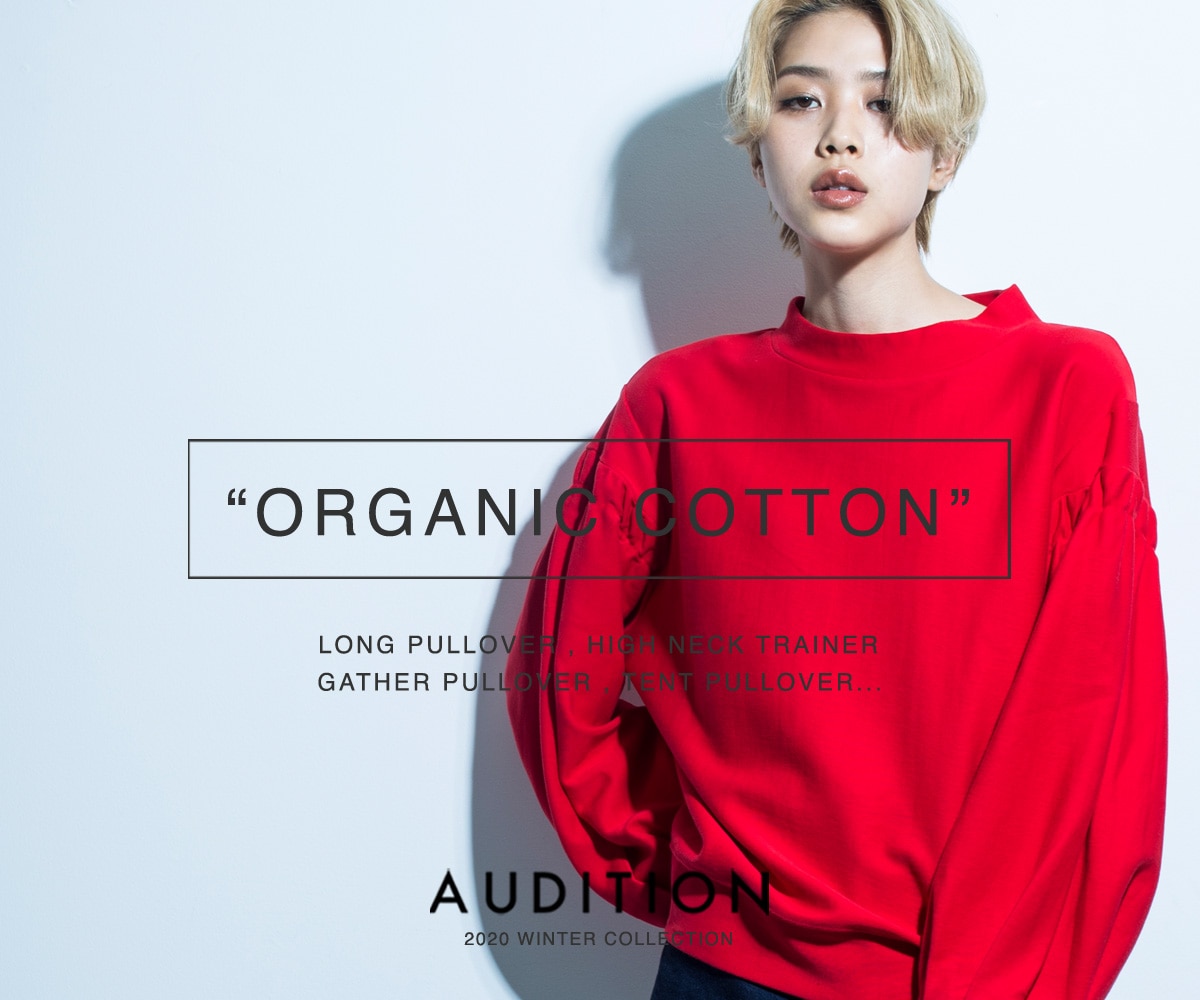 環境負荷を最小限におさえたコットン糸を使用した『オーガニックコットン』 シリーズが登場。天然繊維や植物由来の化学繊維を使用する事で、人にも環 境にも優しく素材・着心地・デザインまでこだわった4アイテムをAUDITION からご紹介。
