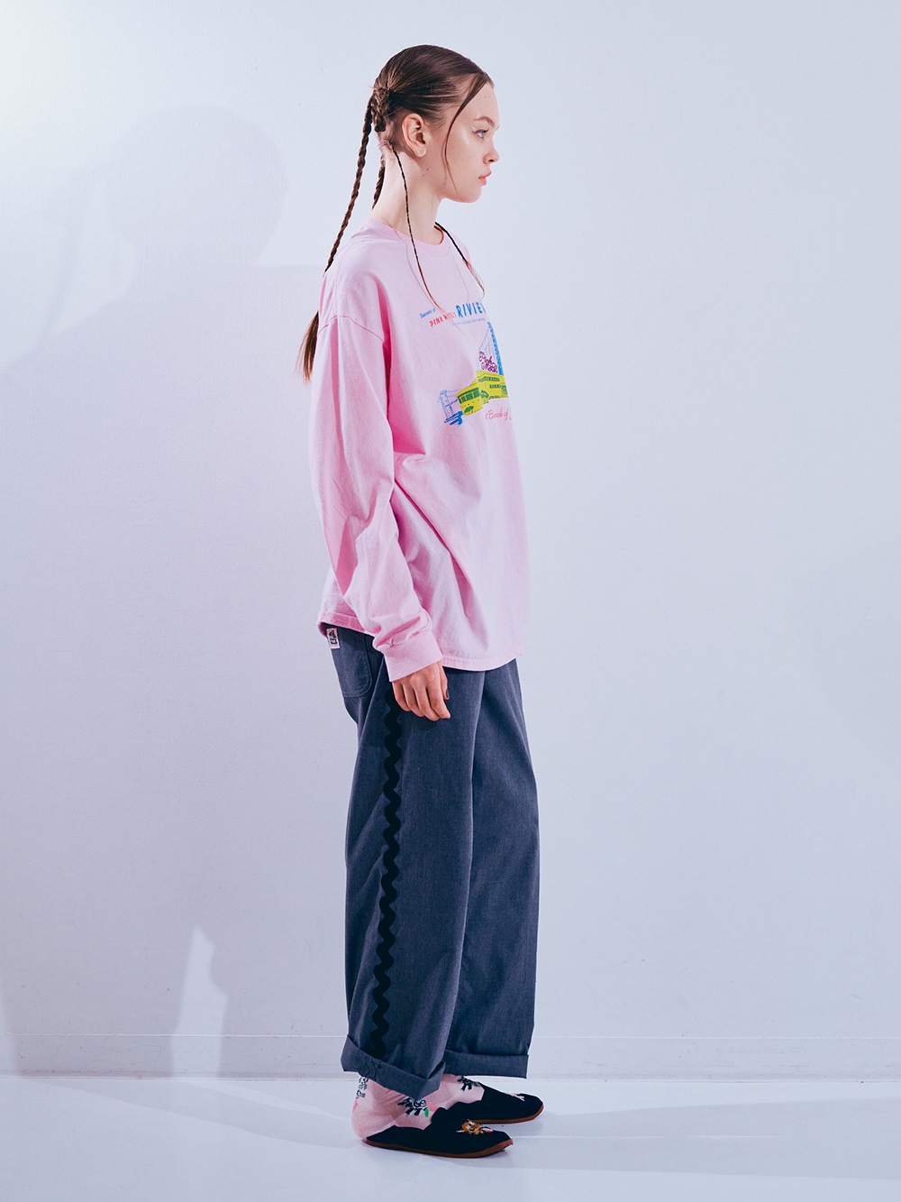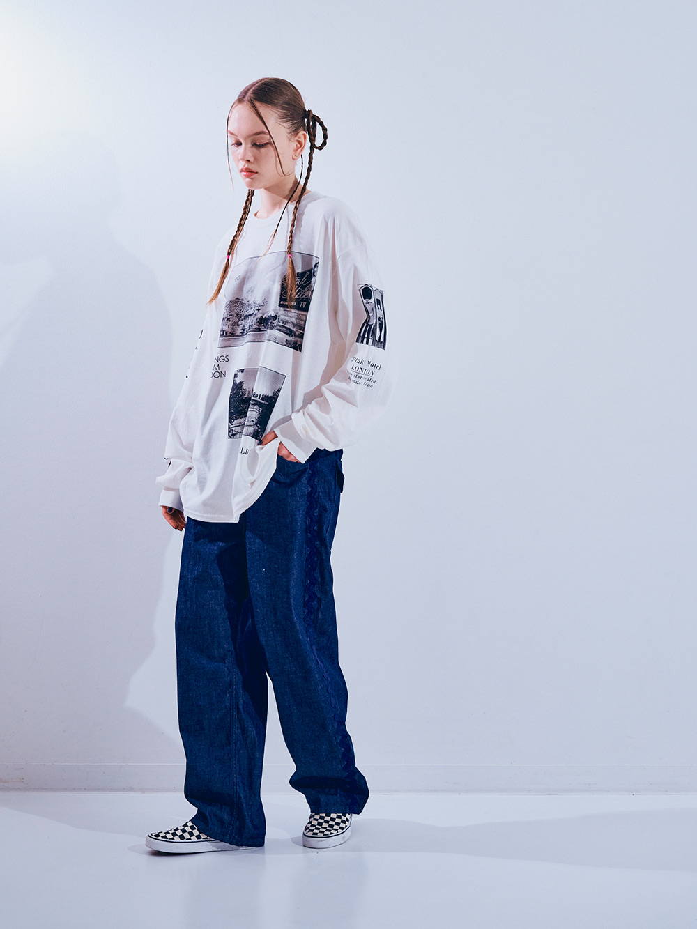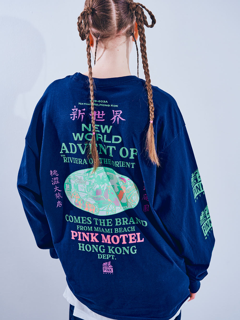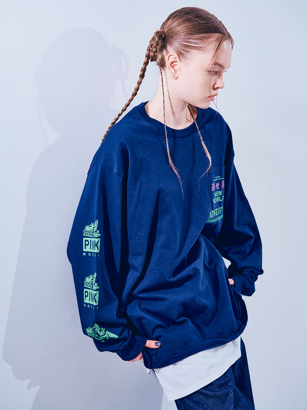 ロンドンの街で過ごした記憶や風景をグリーティングカードに閉じ込め、身頃全体に散りばめたスペシャルなロンTEE。 着るたびに、あの街角の光景や旅の空気感が鮮やかによみがえるような一枚です。 ゆったりとしたオーバーサイズシルエットは、ラフに羽織るだけでスタイルが完成。PINK MOTELならではの世界観とロンドンの記憶を重ねて楽しめる特別なアイテムです。