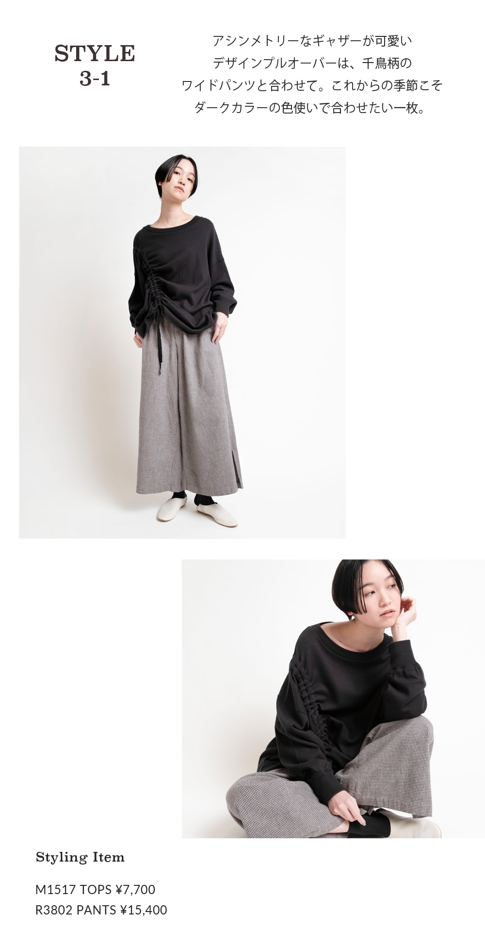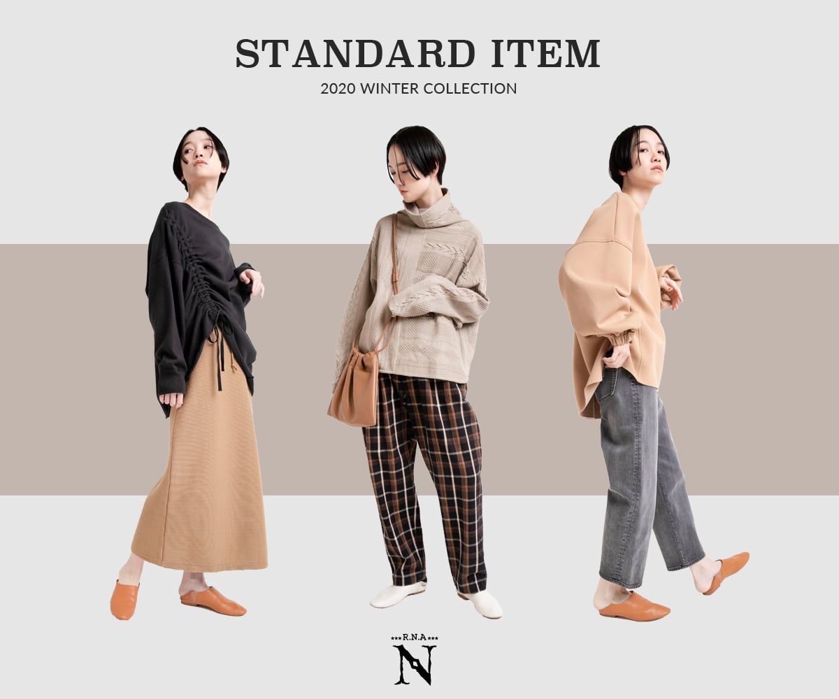 秋冬の定番スタイルとしてワードローブに取り入れたい 着回し力の高いアイテムのコーディネートをご紹介。 RNA-Nのこわだりのアイテムを是非ご覧下さい。