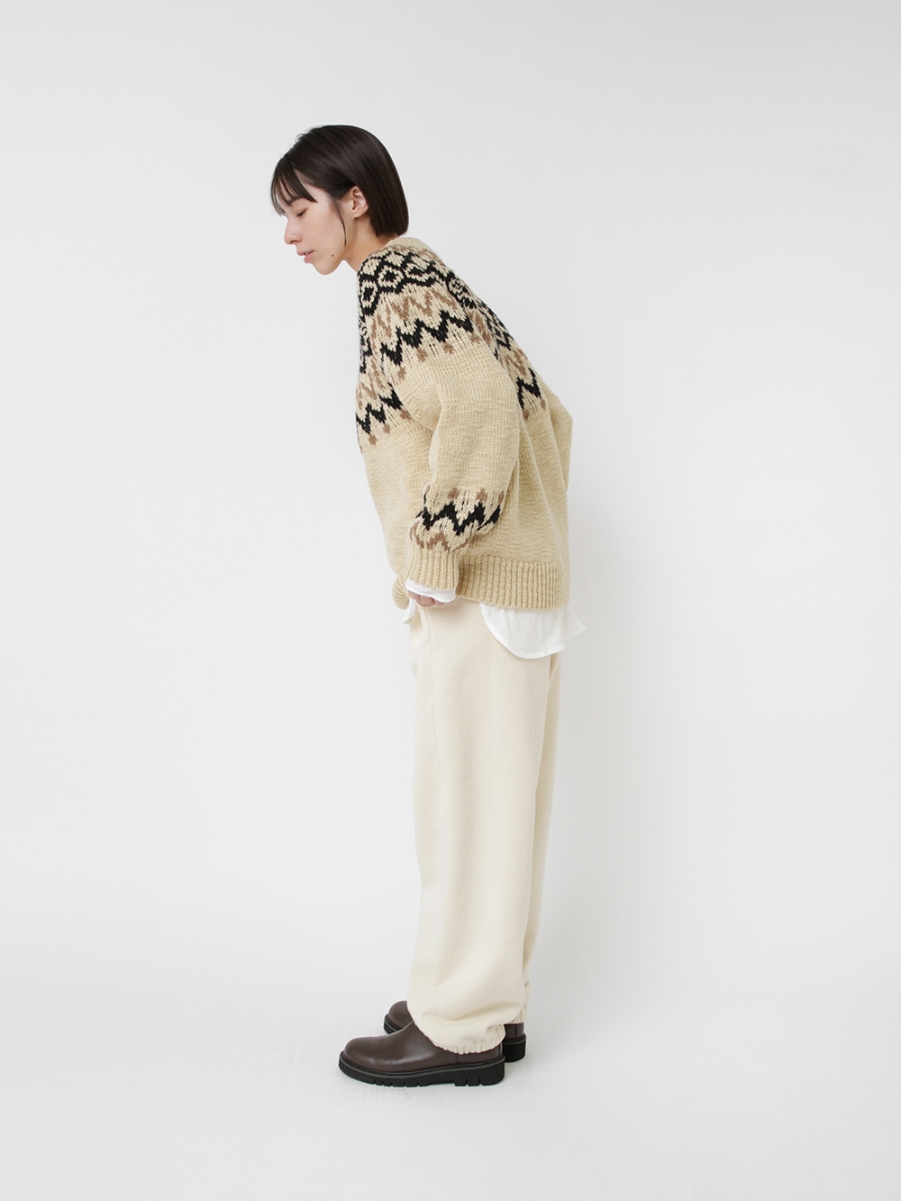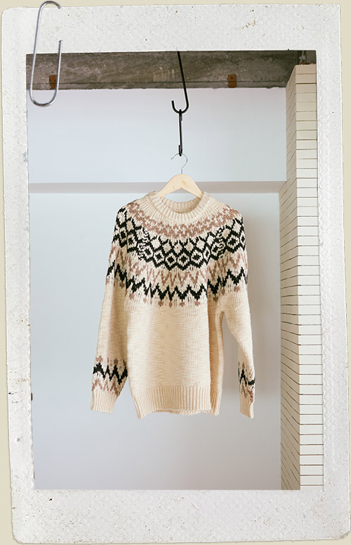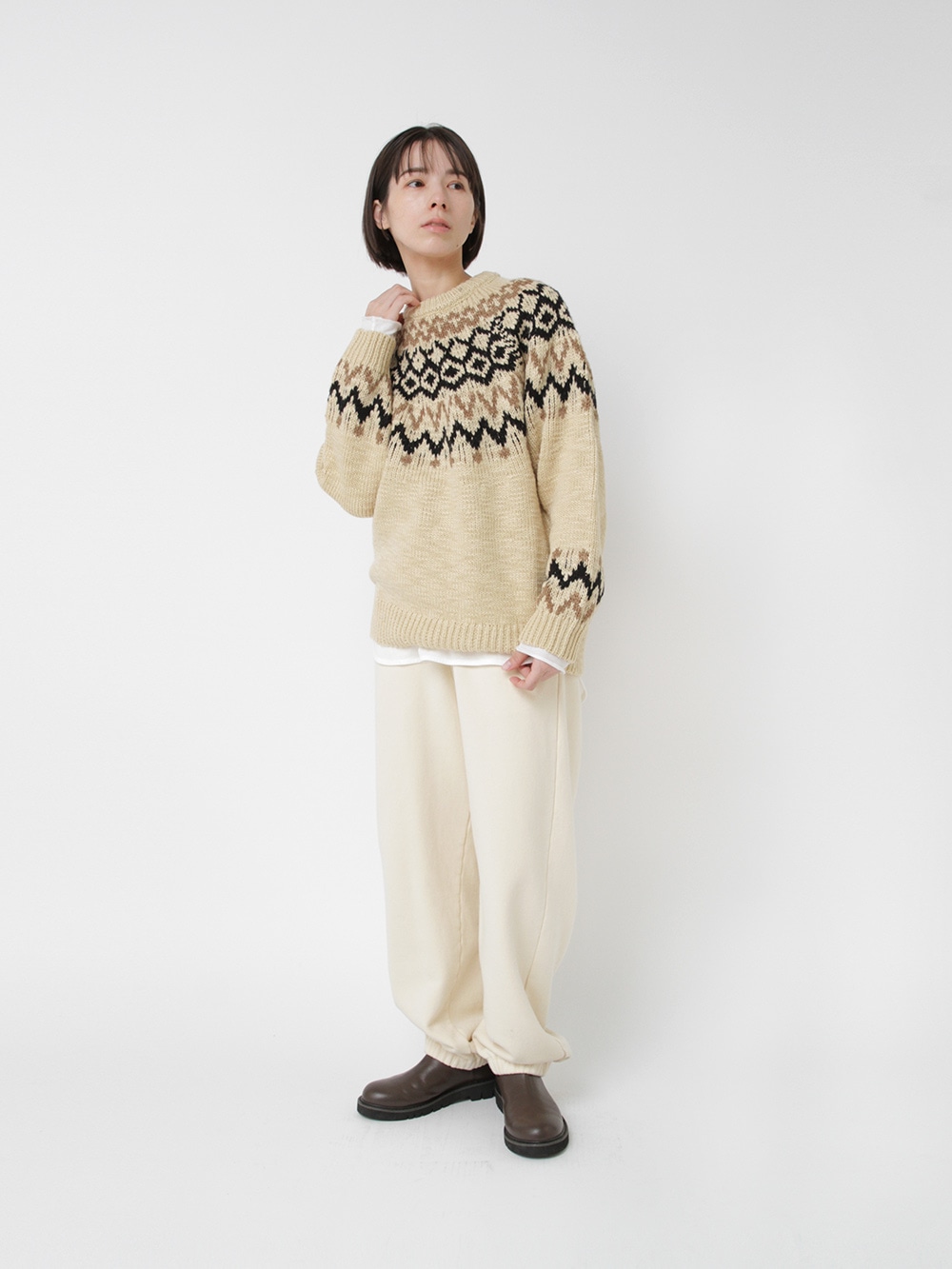 シーズンムード漂うノルディック柄が一枚で着映えする冬の主役ニット。 ベースは落ち着いたトーンで派手になりすぎず、大人の装いに馴染みます。 スラブヤーンを使用した生地がこなれたユーズド感を演出。 袖や裾からインナーを覗かせると今年らしいスタイリングに。