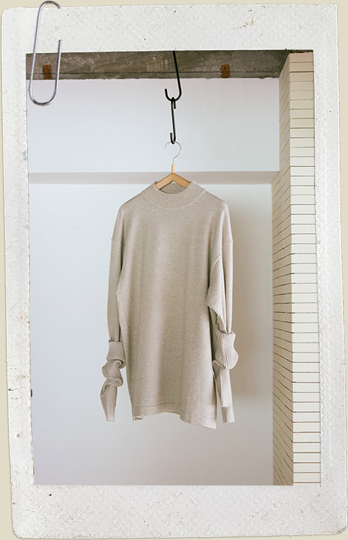 シルキーニットの滑らかでとろみのある肌触りが、着る人に寄り添う一枚。 アームウォーマーがセットで、着こなしの幅が広がる2WAY仕様。 シーンに合わせて表情を変えられ、長く楽しめる万能ニット。