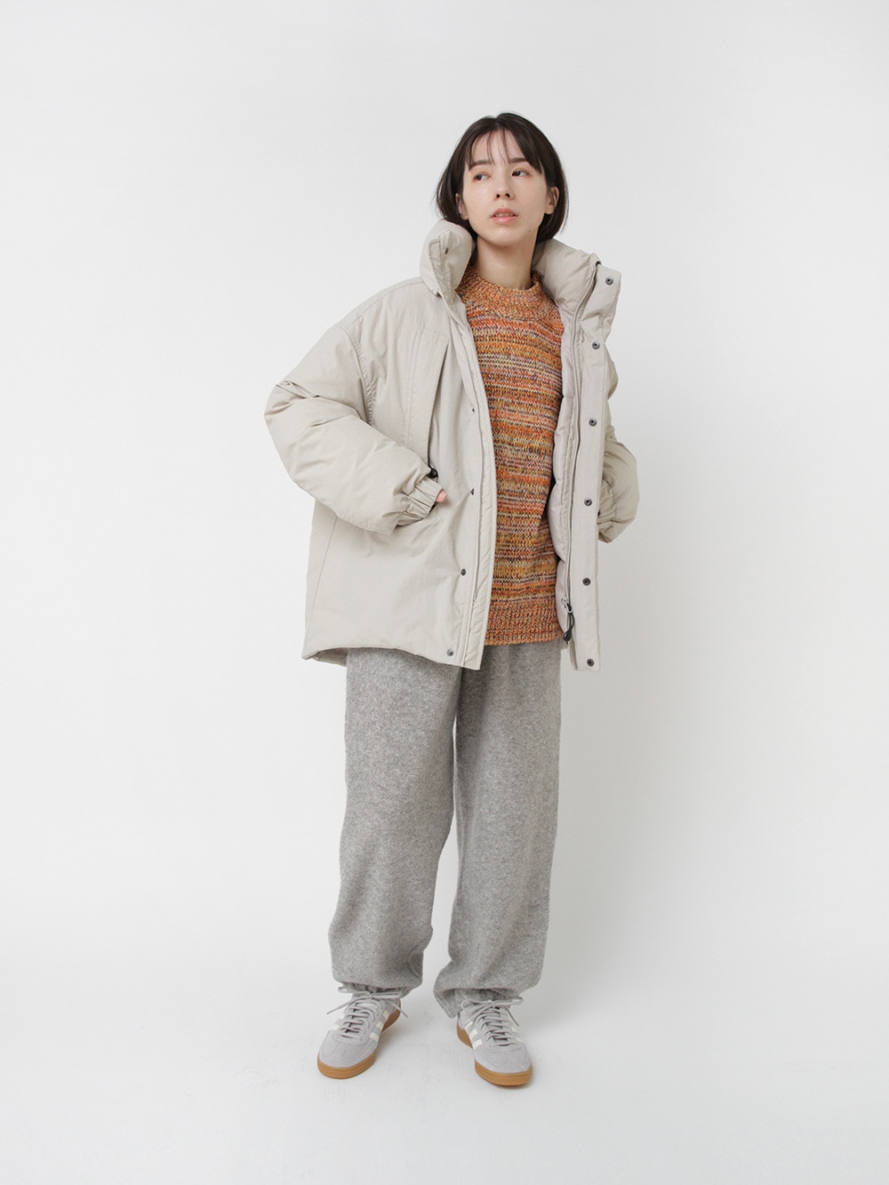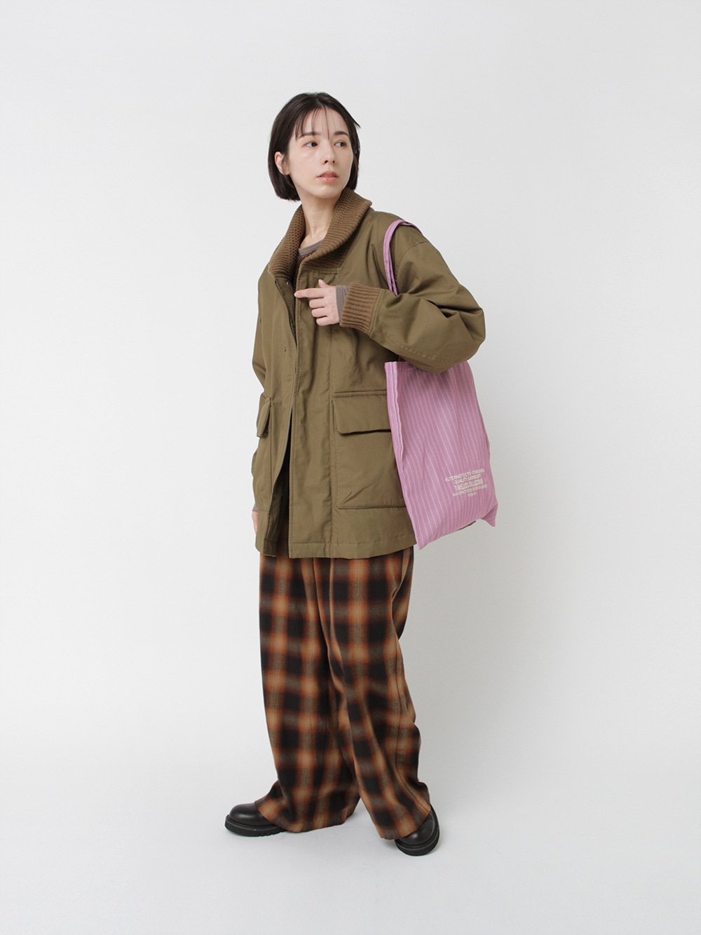 高密度コットン100%を使用した中綿入りで保温性が高く、冬のデイリーに安心感をもたらす一枚。 リブをあしらった襟とカジュアルなワークテイストがこなれた印象を演出。 温かみのあるオンブレーチェックパンツを合わせてトレンド感のあるスタイルに。