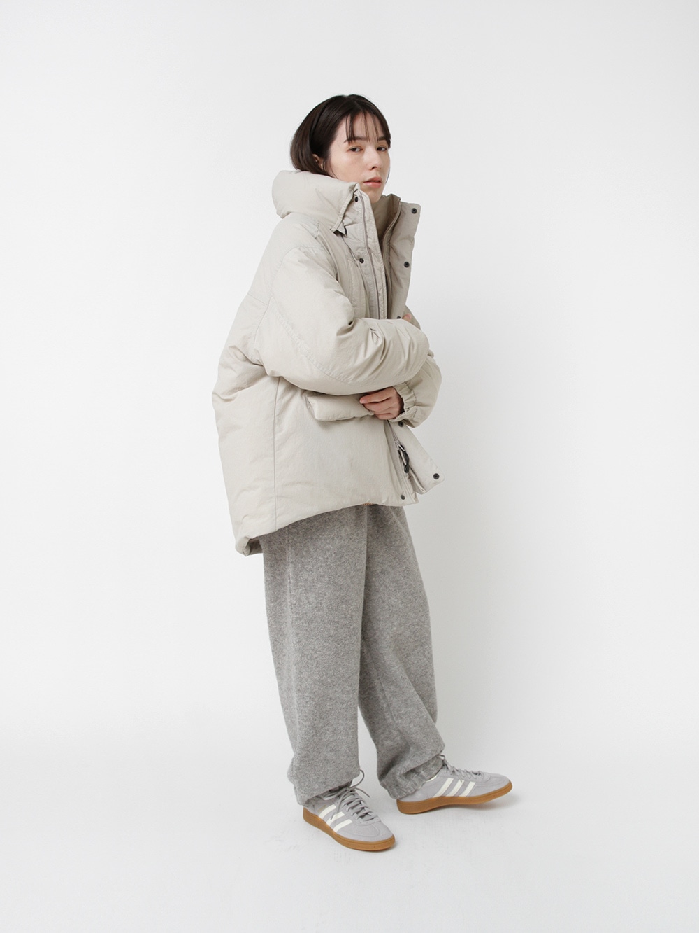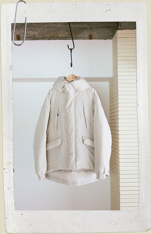 ブランドらしいミリタリーテイストのダウン。 高さのあるスタンドカラーとボリューミーなフードでシルエットを変化でき、様々な表情を見せる。 軽くて保温性が高く、暖かい中綿で機能面も優れ、アウトドアから日常使いまで幅広く着回せる、寒い冬に頼れる一着。