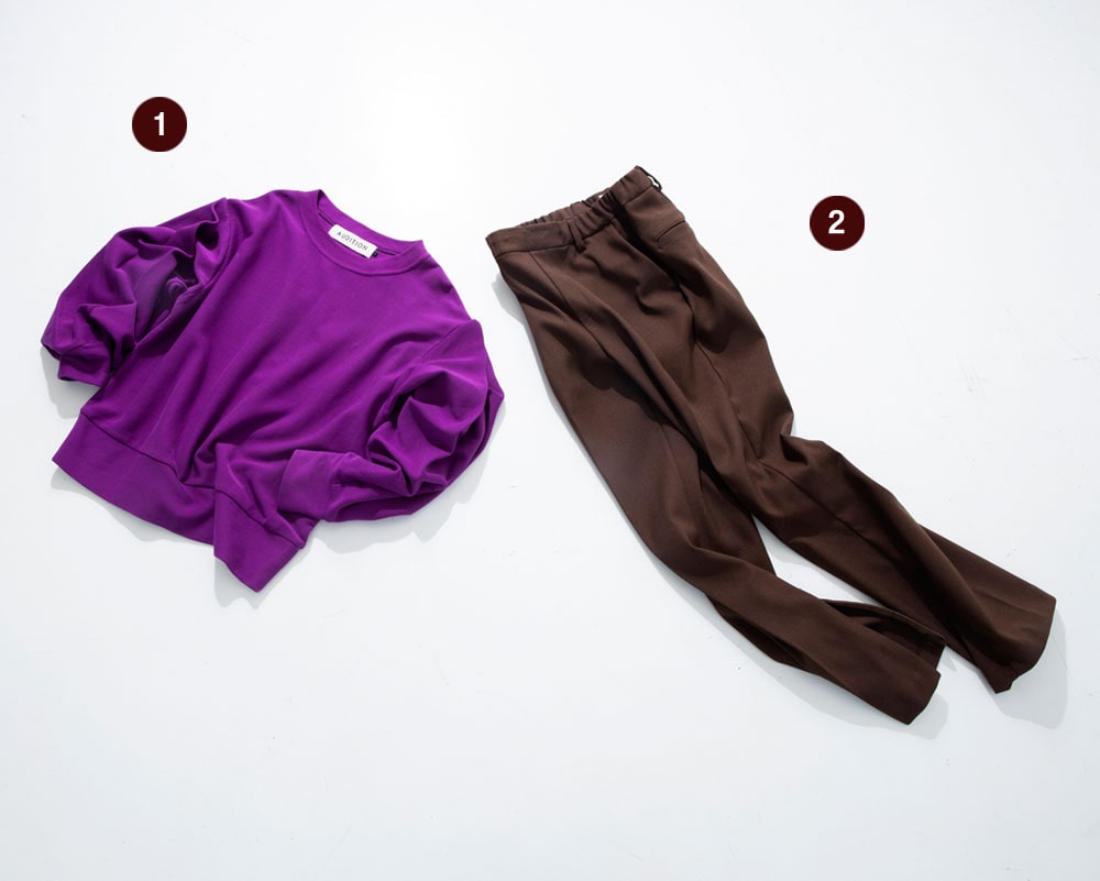 パンツを合わせたメリハリのある綺麗めスタイル。