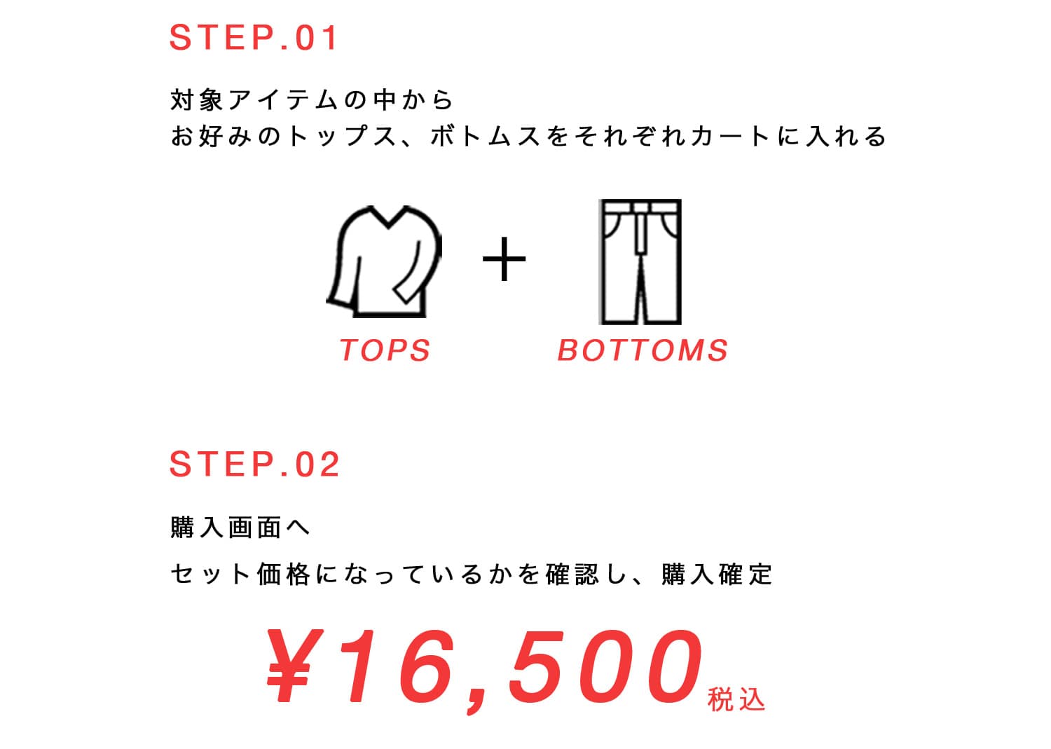 TOPS ¥7,700 + BOTTOMS ¥18,700 |