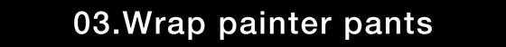 | ━━━━━━━━━━━━━━━━━━━ ラップペインターパンツ R3917 / ¥13,200 ペインターパンツをベースにデザインされたラップパンツです。 シルエットはややテーパードしたワイドストレート。 パンツを穿く位置はウエストからやや高めで穿いて頂くと、 ウエスト周りがスッキリとなり、脚が長く見え、 かっこいいシルエットになります。 ━━━━━━━━━━━━━━━━━━━ |