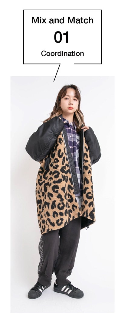 インパクトのあるレオパード柄のパンツと刺繍ロンT |