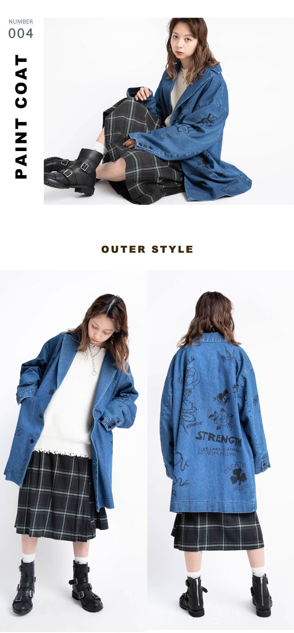 | J1990 Jacket ¥24,200 / M1694 Parka ¥7,920 G1021 Skirt ¥13,200 / E4804 Socks ¥1,650 E4806 Cap ¥5,940 |