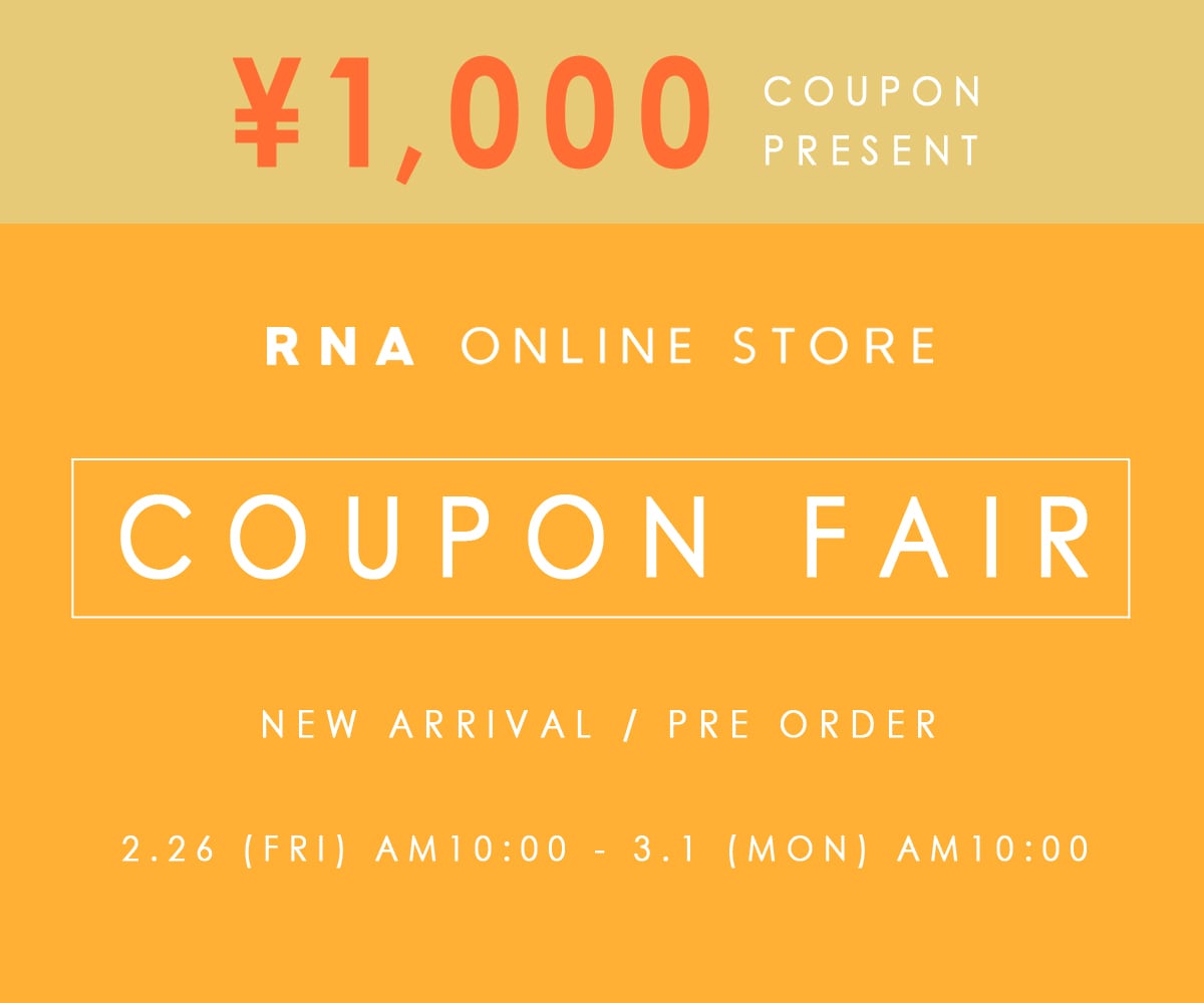 RNA ONLINE STOREにて 「1,000円OFFクーポン」を