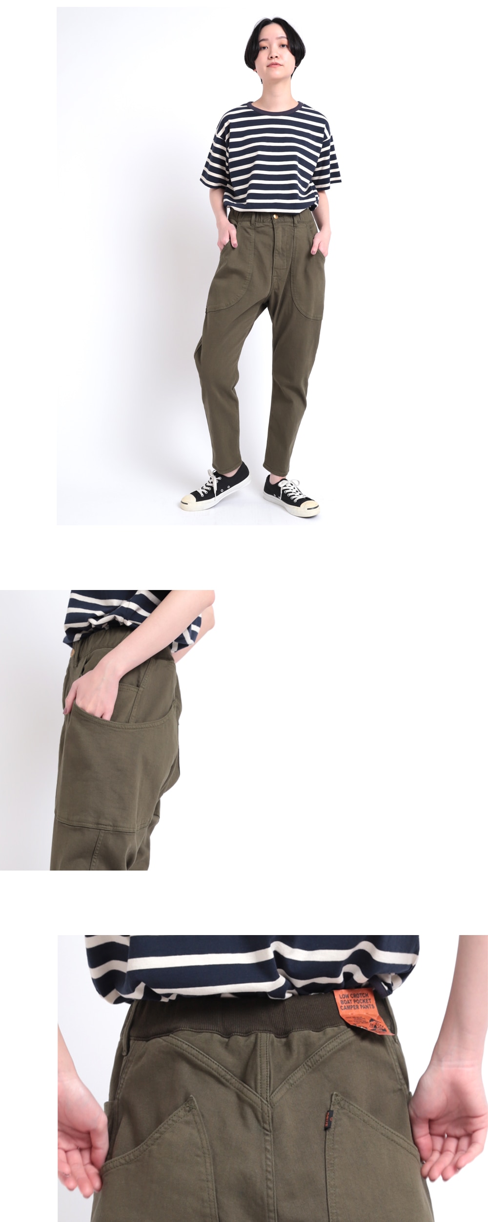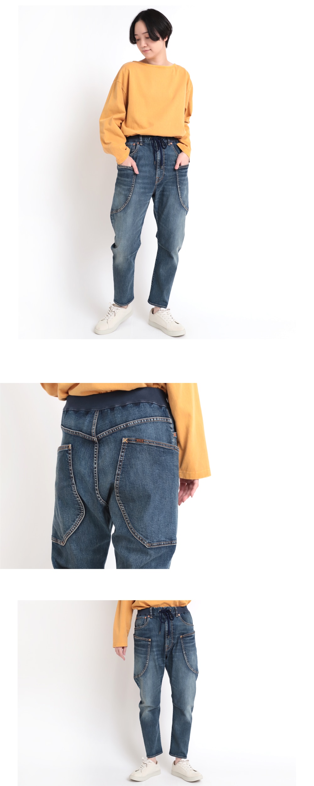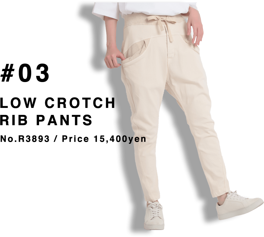 ション性が高いパンツ。ウエストリブに