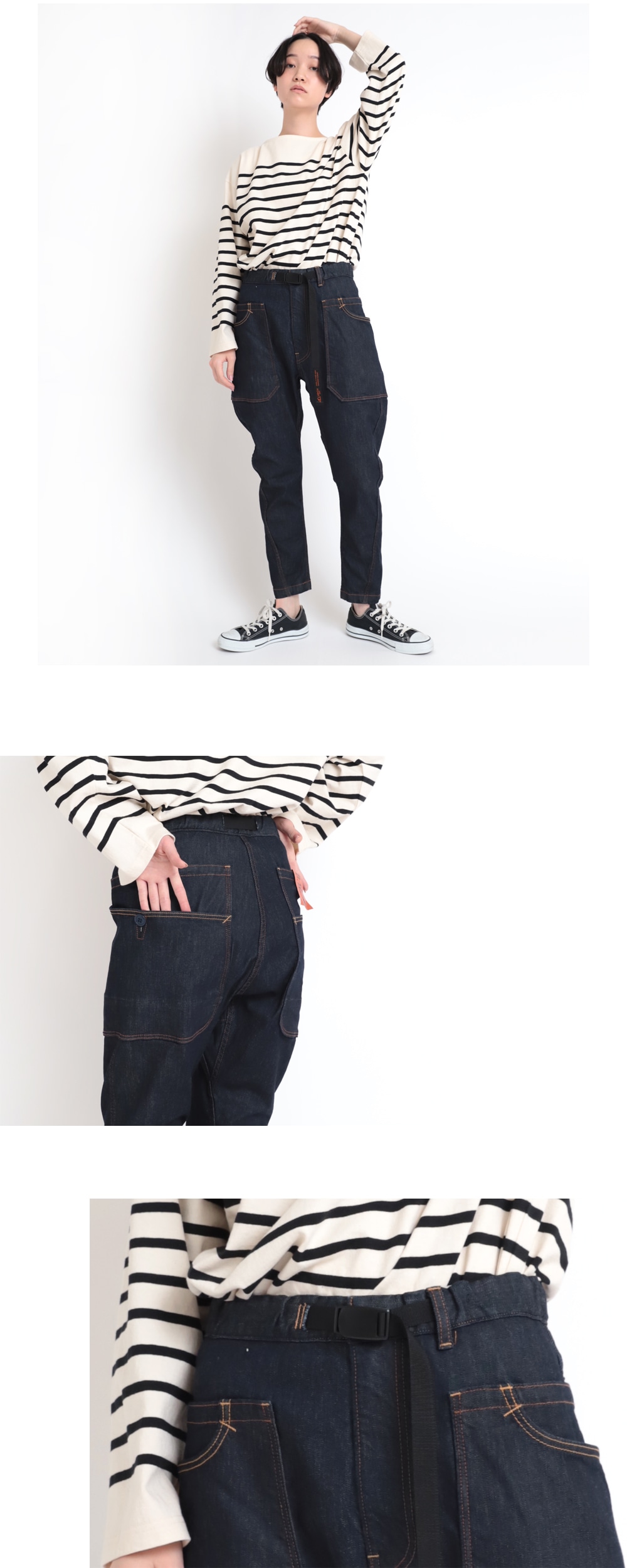 腰位置は少し高めにはいていただくのが、綺麗なシルエッ