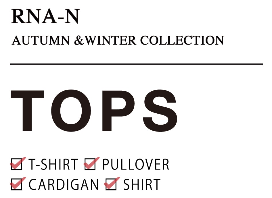 | 肌触りが良くノンストレスな着心地が魅力のRNA-Nのトップス。 シンプルだけど遊び心のある、ヒトクセ効いたアイテムが多数揃っています。 |
