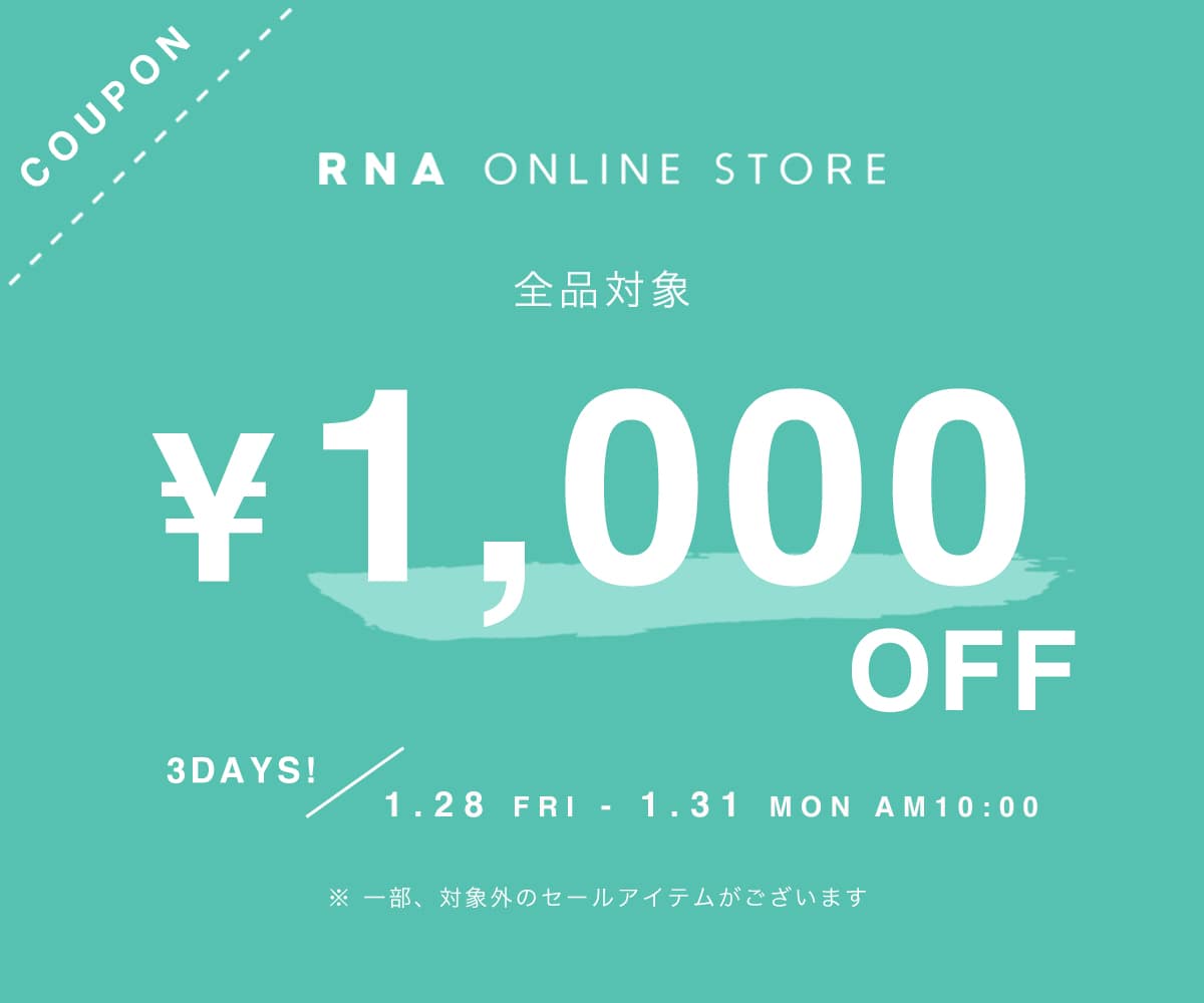 RNA ONLINE STOREにて 「1,000円OFFクーポン」をプレゼント