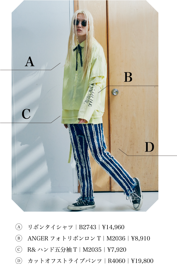 新鮮なレイヤードやスタイリング、 ポップなカラー使いで 自由に楽しくコーディネートができるよう 多様な価値観やテイストをRNAのフィルターを通して パワフルでポジティブな春の NEWストリートスタイルを楽しんでください。