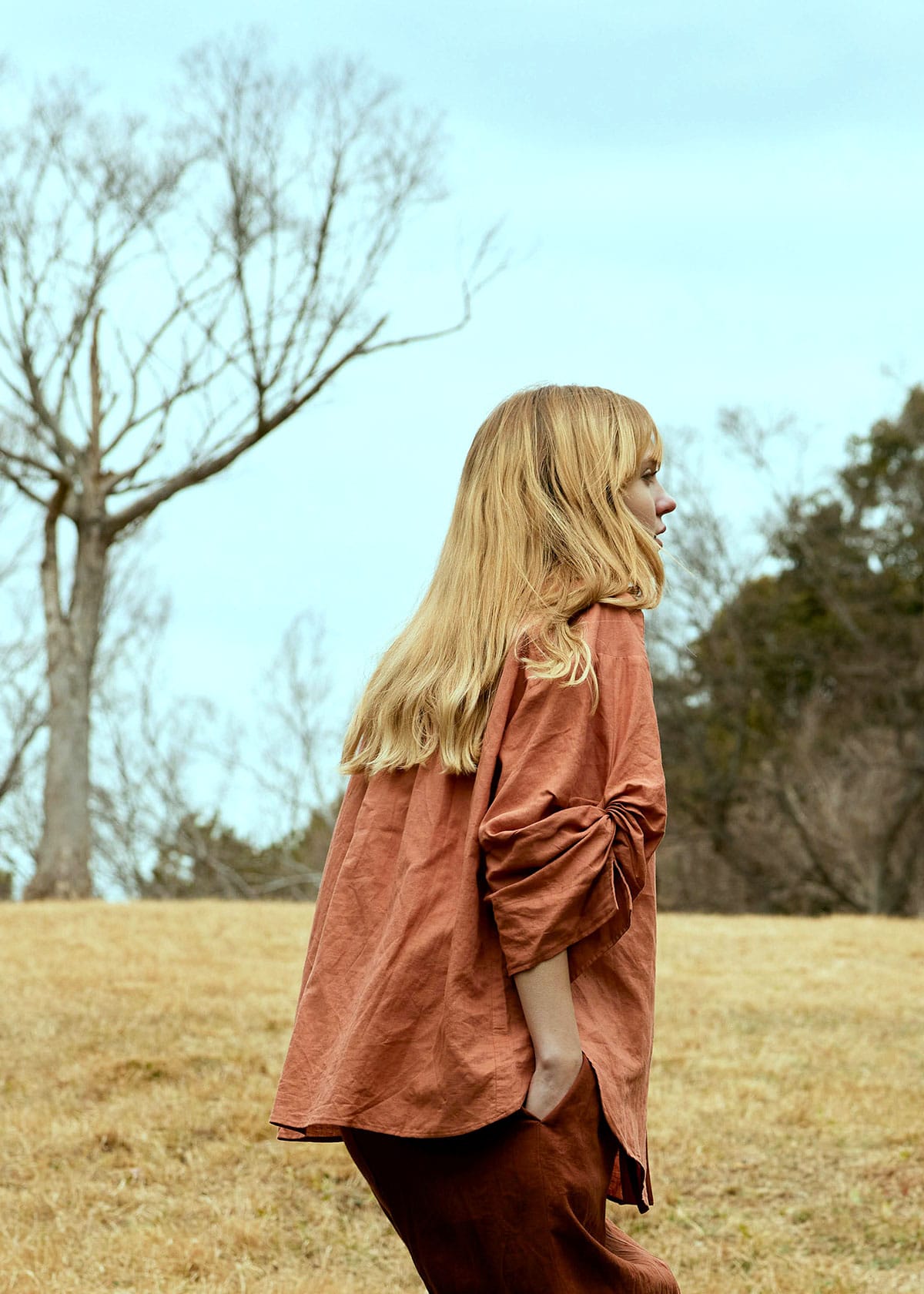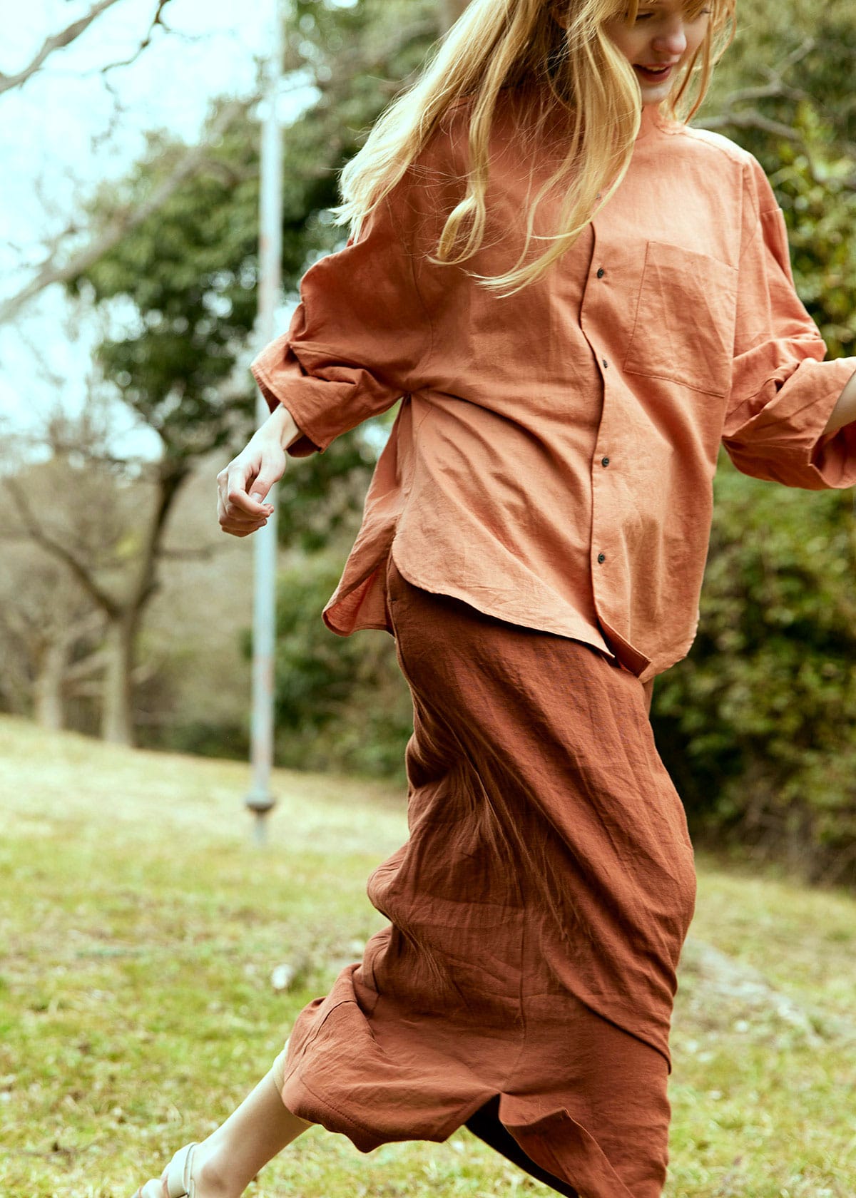 麻のブラウスやワンピースなど、素材特有のナチュラルな表情を活かしたアイテムも魅力です。