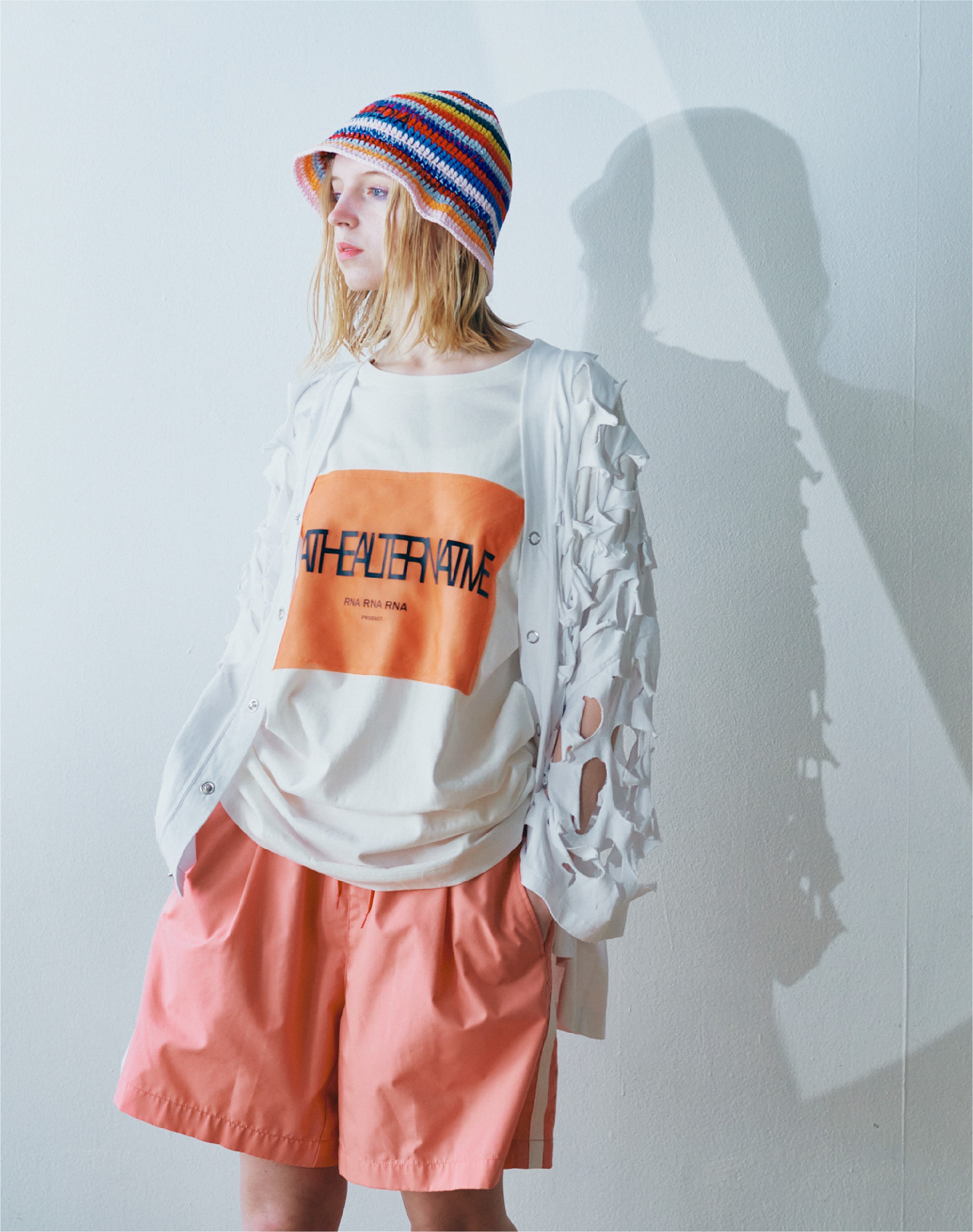これだけでも様になるが、さらにブラックのロゴシアーTをレイヤードするのがRNAスタイル。