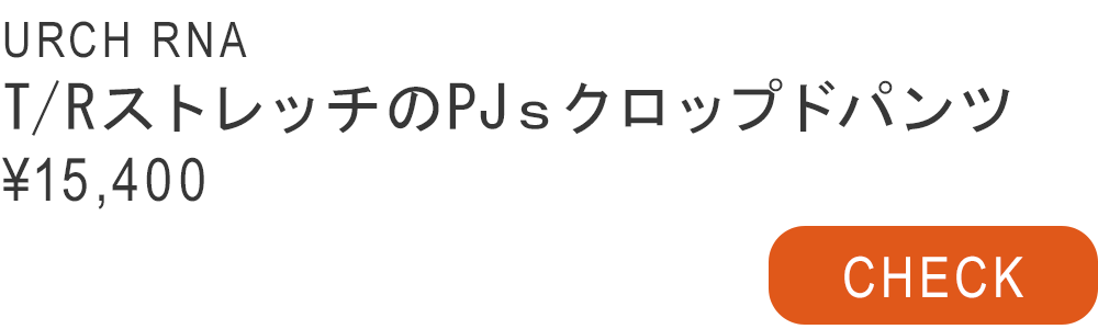 「あれ?これってURCH RNAのパンツ?」って思ったそこのあなた。もちろんです!パジャマのようにくつろげるリラックス感が特徴のPJsクロップドパンツは、普段着からオフィスまで様々なシーンで使えるデザインだけあって重宝間違いなし。