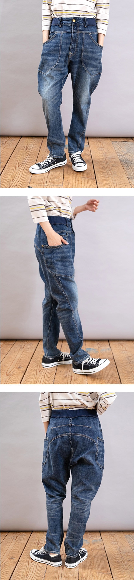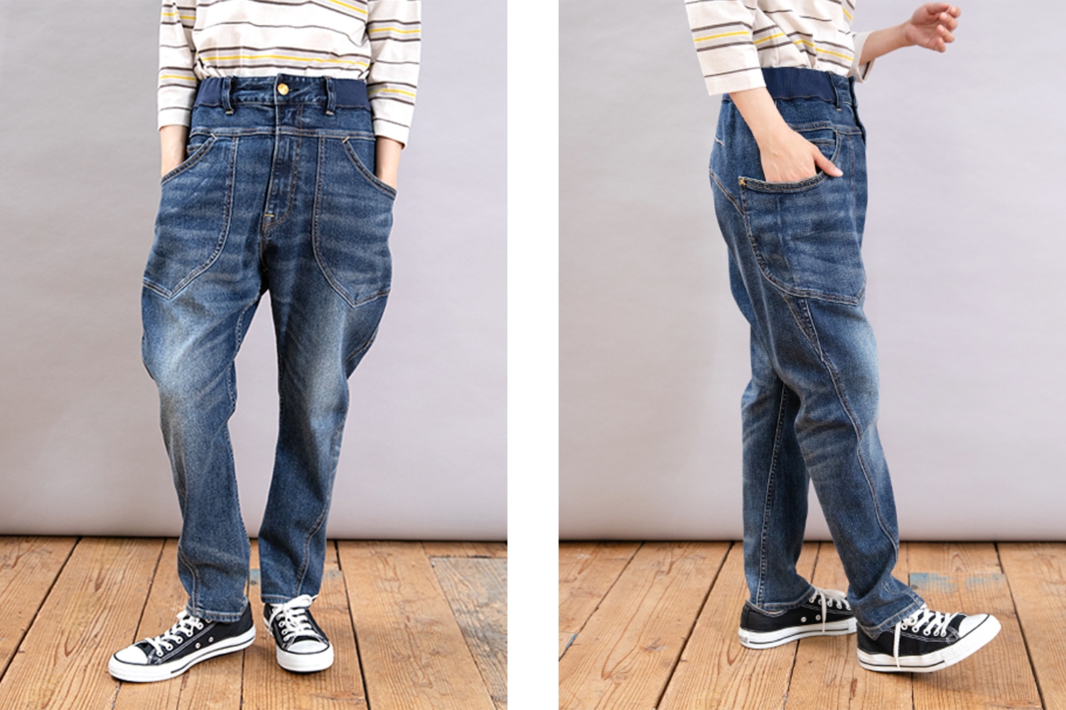 伸縮性のあるストレッチデニムを使用し、締めつけ感なく動きやすさも抜群。