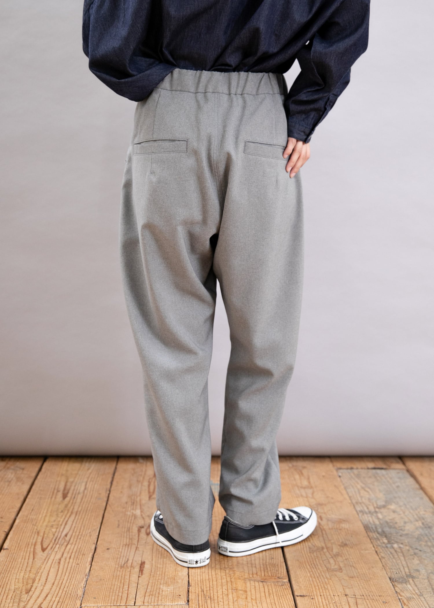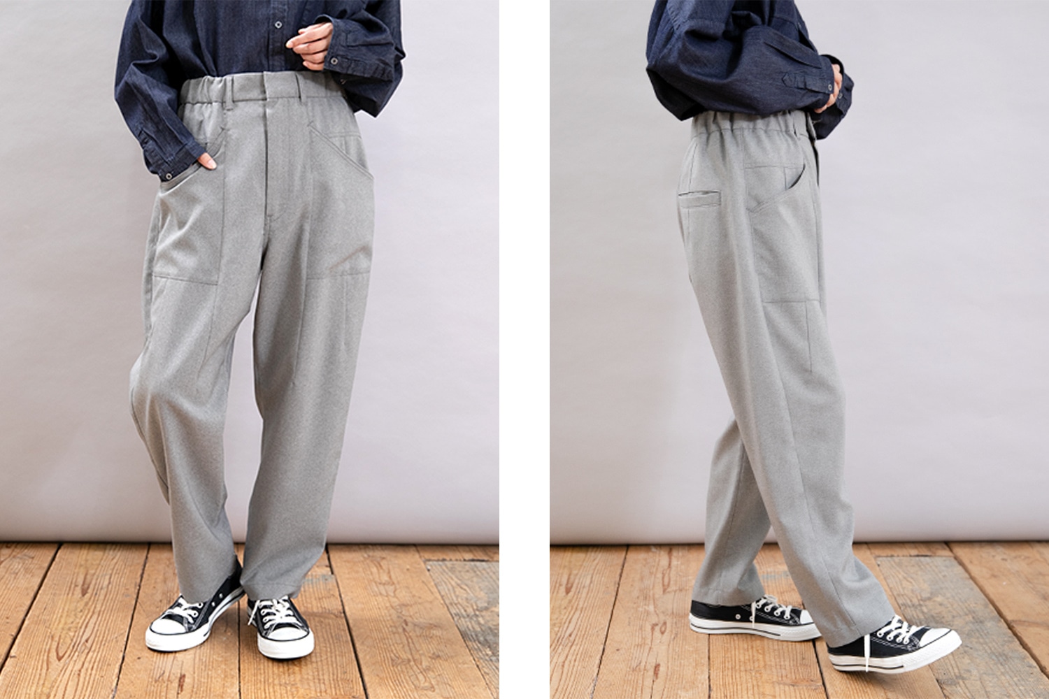 腰まわりからヒップにかけてほどよくゆとりを持たせ、体型を自然にカバーしつつ、すっきりとした印象で穿ける一本です。