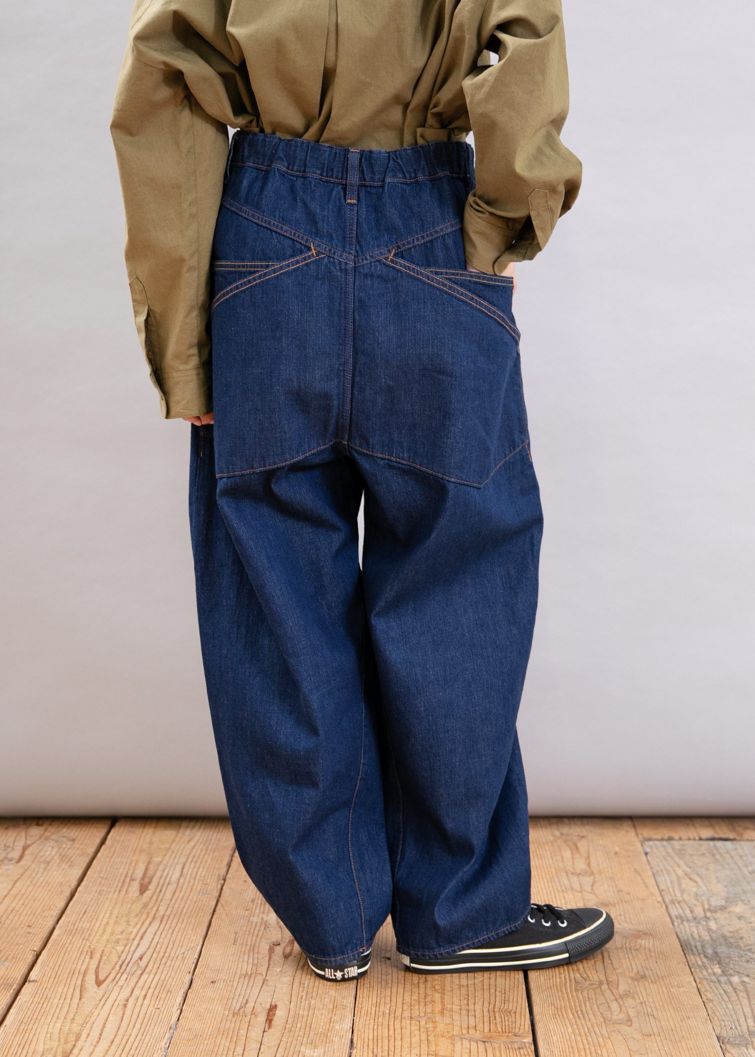 ヒップや太もも周りにたっぷりとゆとりのある丸いフォルムで、体型をカバーしつつリラックスして穿ける形。