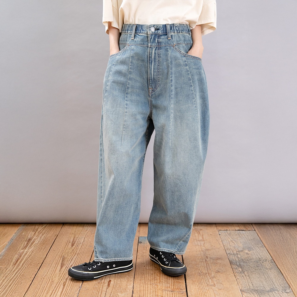 ジーンズの原点とも言える定番モデル“501”を女性がラフに穿いたような、こなれ感のあるシルエットを表現しています。