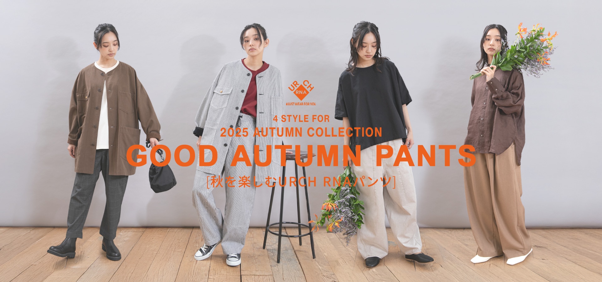 秋色に染まる街、心地よい風と歩き出そう。 URCH RNAの秋は、穿くだけで気分が高まるパンツから始まります。 ワーク感のあるデザインも、抜け感のあるシルエットも、この秋のムードにぴったり。 動きやすく、着こなし自在なGOOD AUTUMN PANTSで、あなたらしい秋スタイルを楽しんで。 |