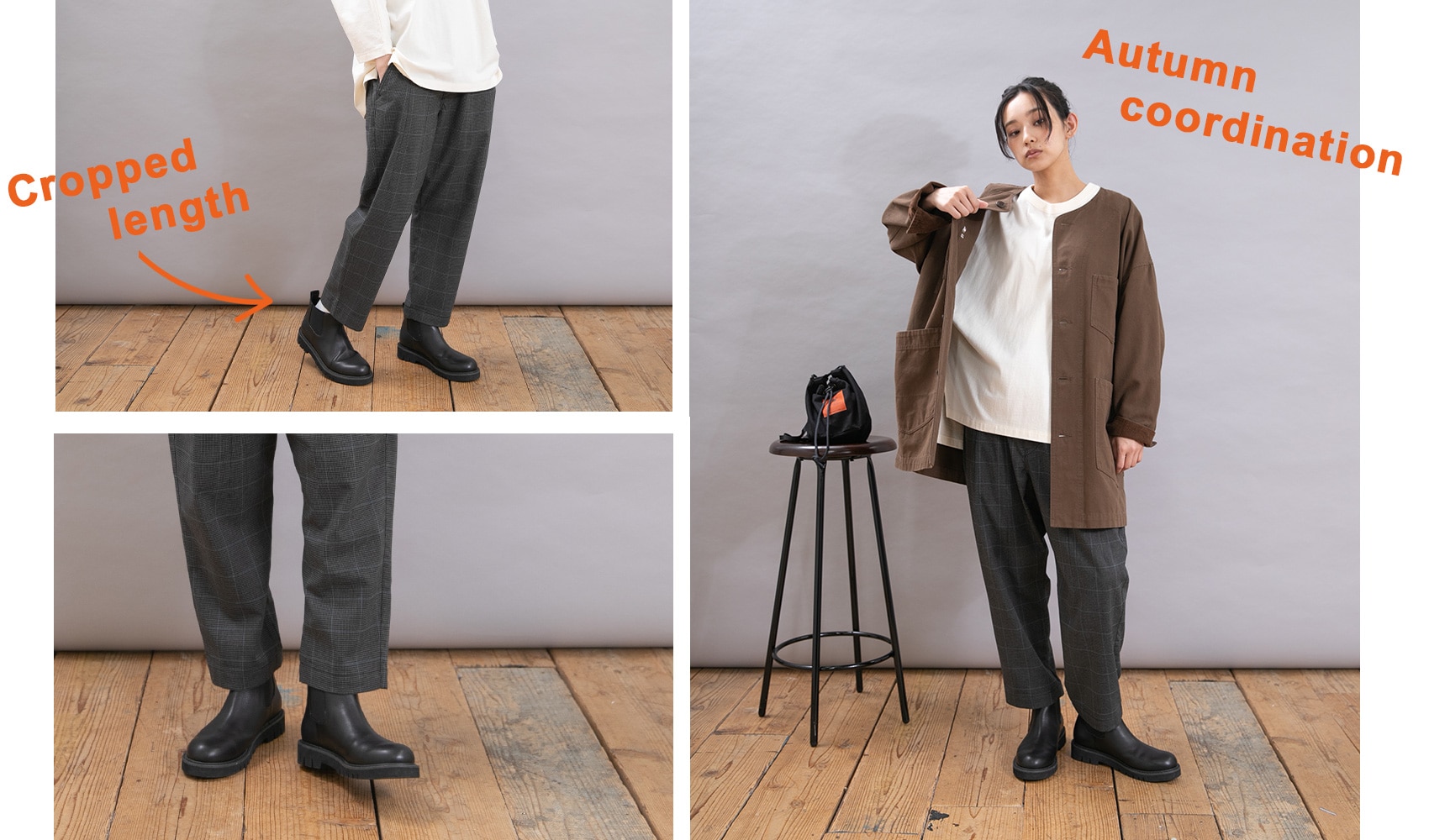 着回しやすいクロップド丈のイージーパンツ URCH RNAで定番化されつつあるクロップドパンツから秋仕様の新作が登場。 秋らしい深みのあるチェック柄と、イージーな履き心地でスッキリとしたシルエットが魅力。 オフィスからカジュアルシーンまで着回しできるアイテム。 |