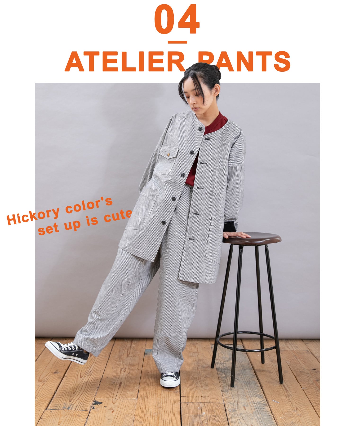「ワーク感×抜け感」で魅せる、ヒッコリーのセットアップ 同素材のヒッコリージャケットを合わせたロングシーズン使えるセットアップスタイル。 ゆったりとした抜け感を演出しつつ、ダブルニーのディテールがワーク感をプラス。 |