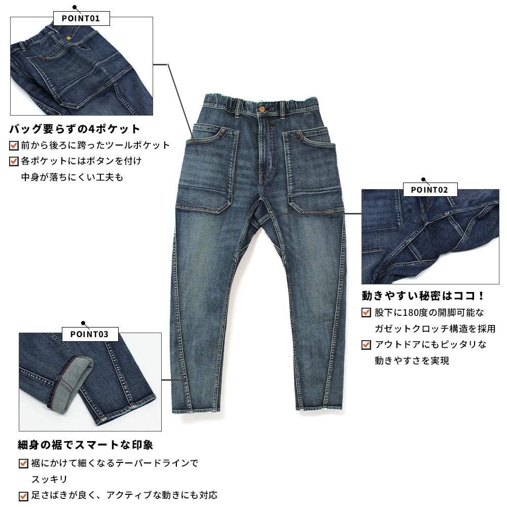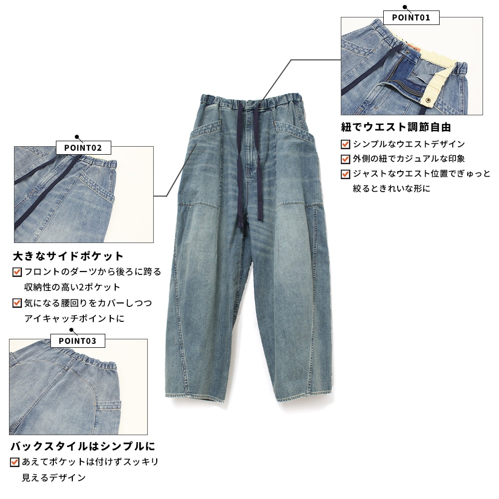ワークの実用性と遊び心を融合した、 URCH RNAならではのデニムパンツ。